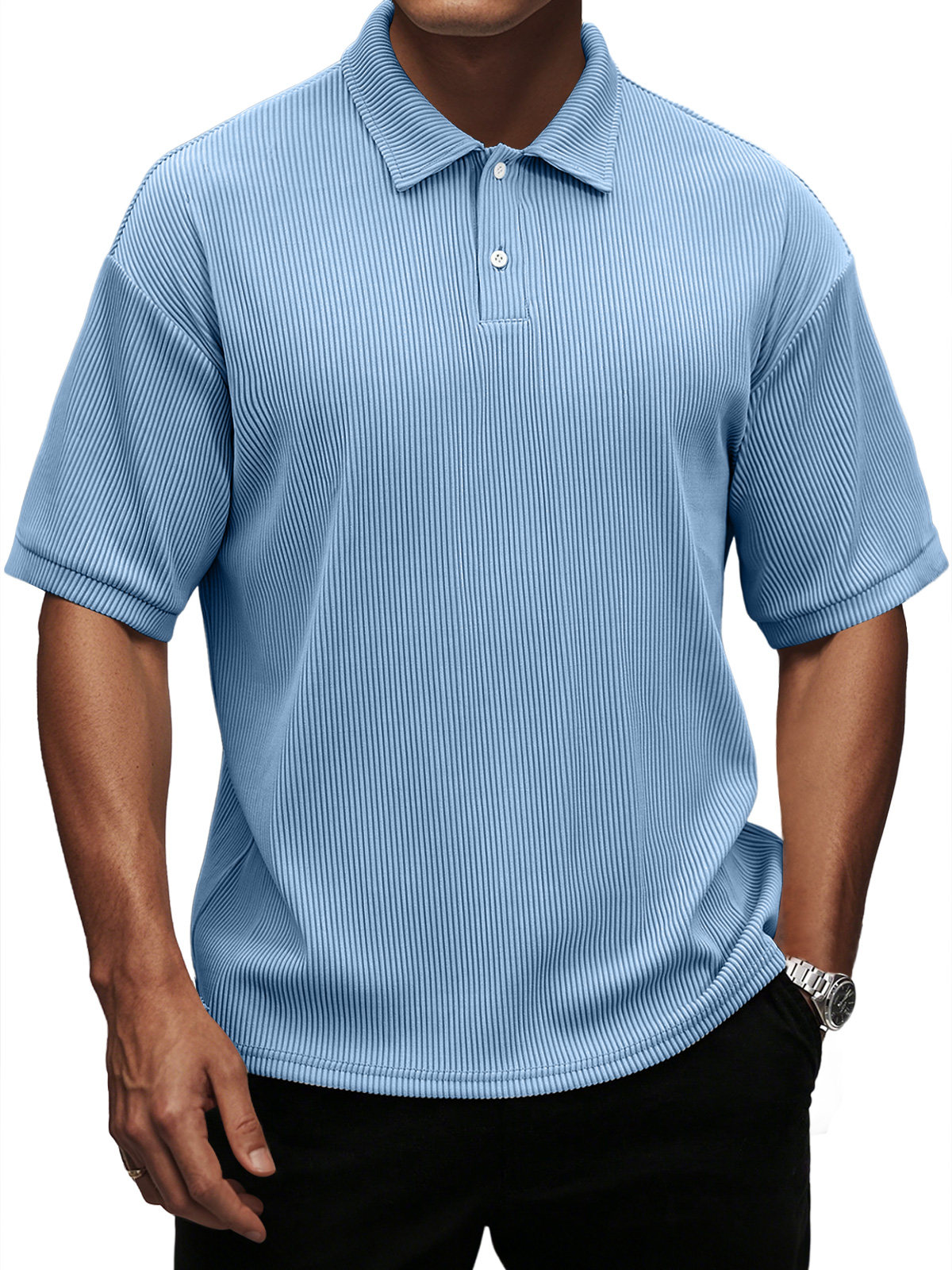Men's Fashion Texture Lapel Button Casual Solid Color Short Sleeve POLO Shirt$39.99 USD -