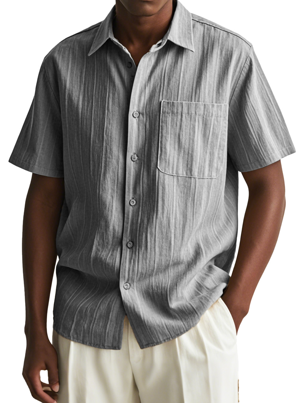 Men's Fashion Casual Pleated Fabric Short Sleeve Pocket Shirt$39.99 USD -