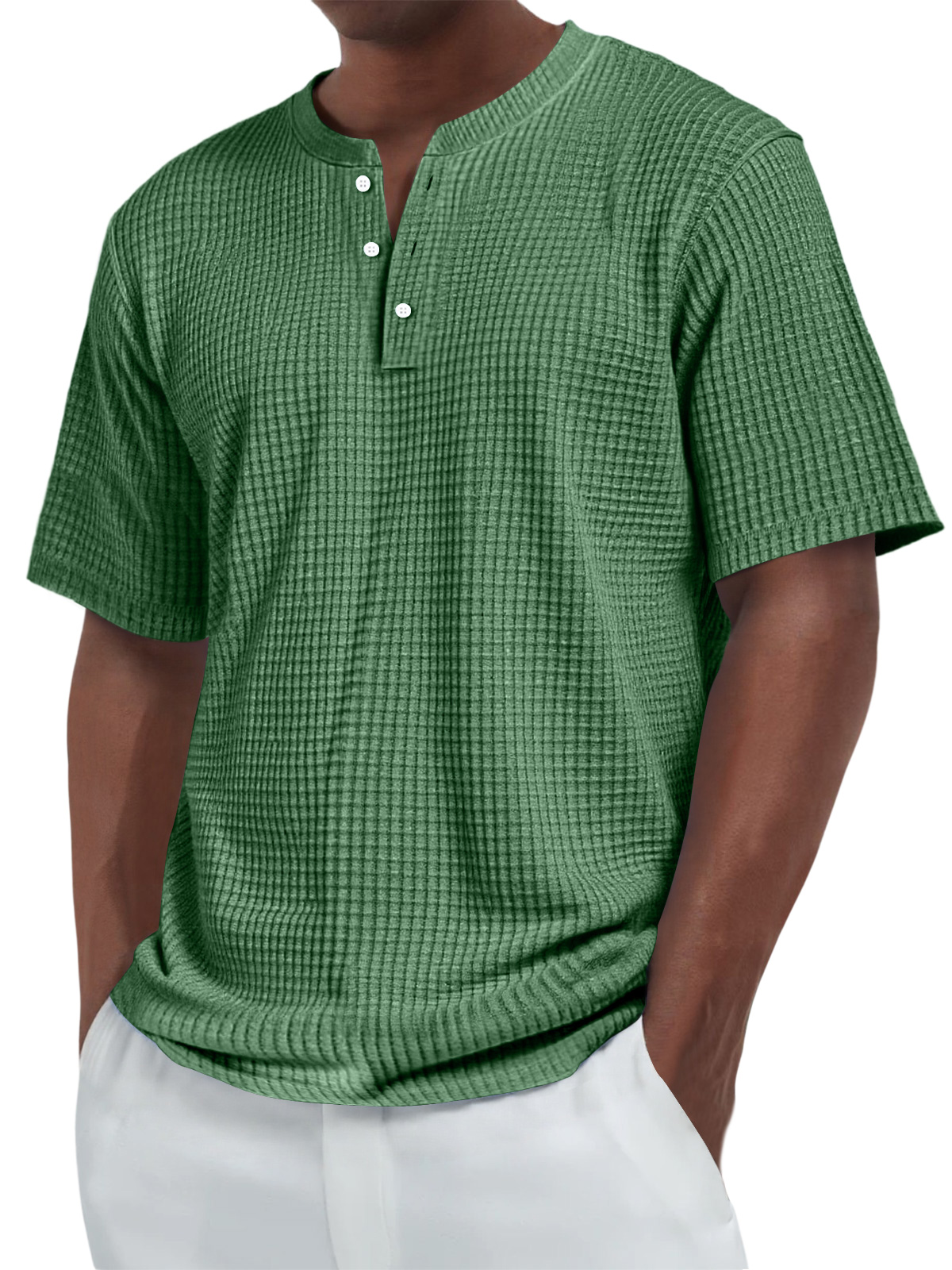 Men's Everyday Waffle Collar Button-Down Casual Short Sleeve Henley Shirt$39.99 USD -
