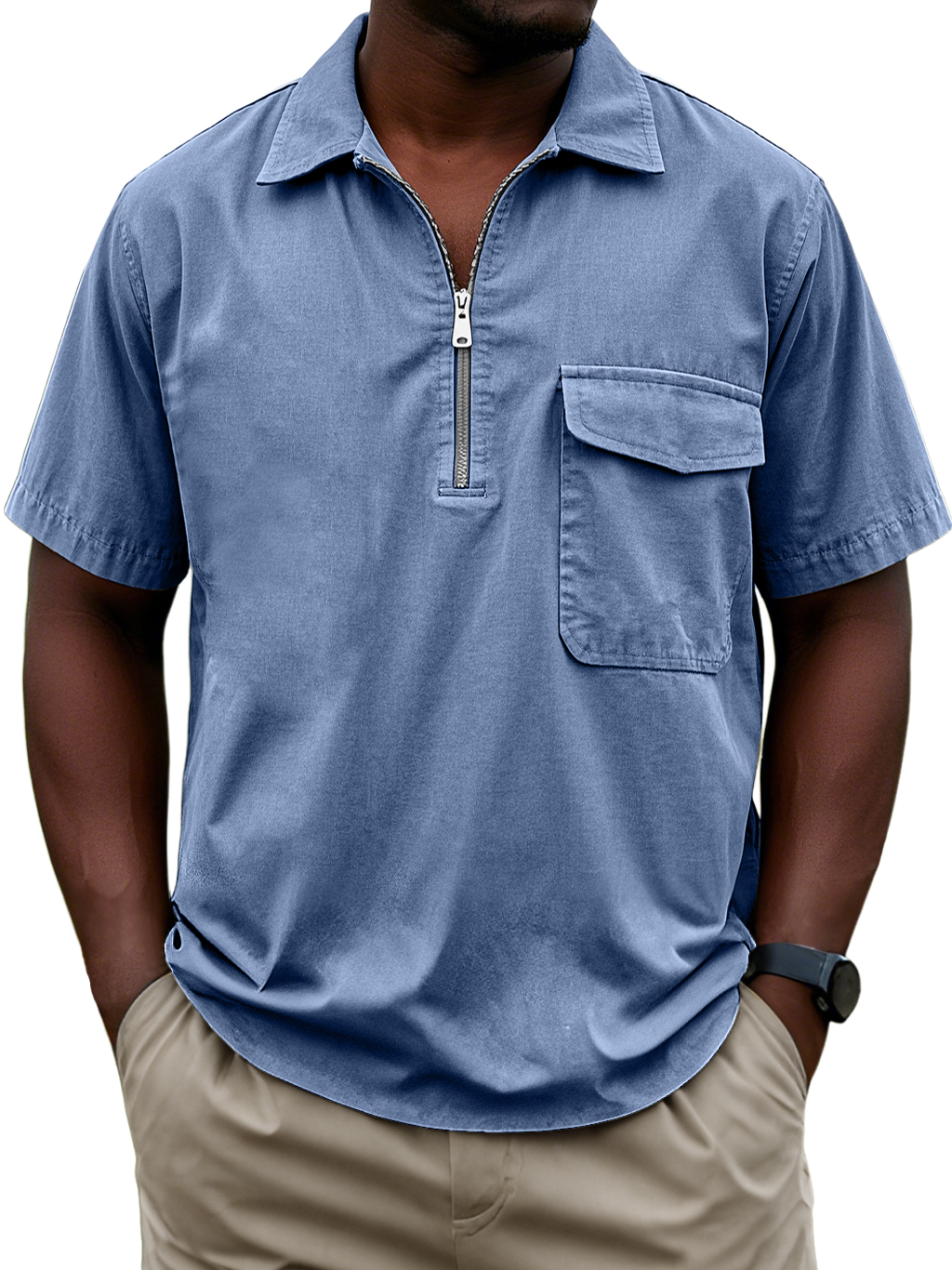 Men's Retro Workwear Zipper Lapel Casual Short Sleeve POLO Shirt$39.99 USD -