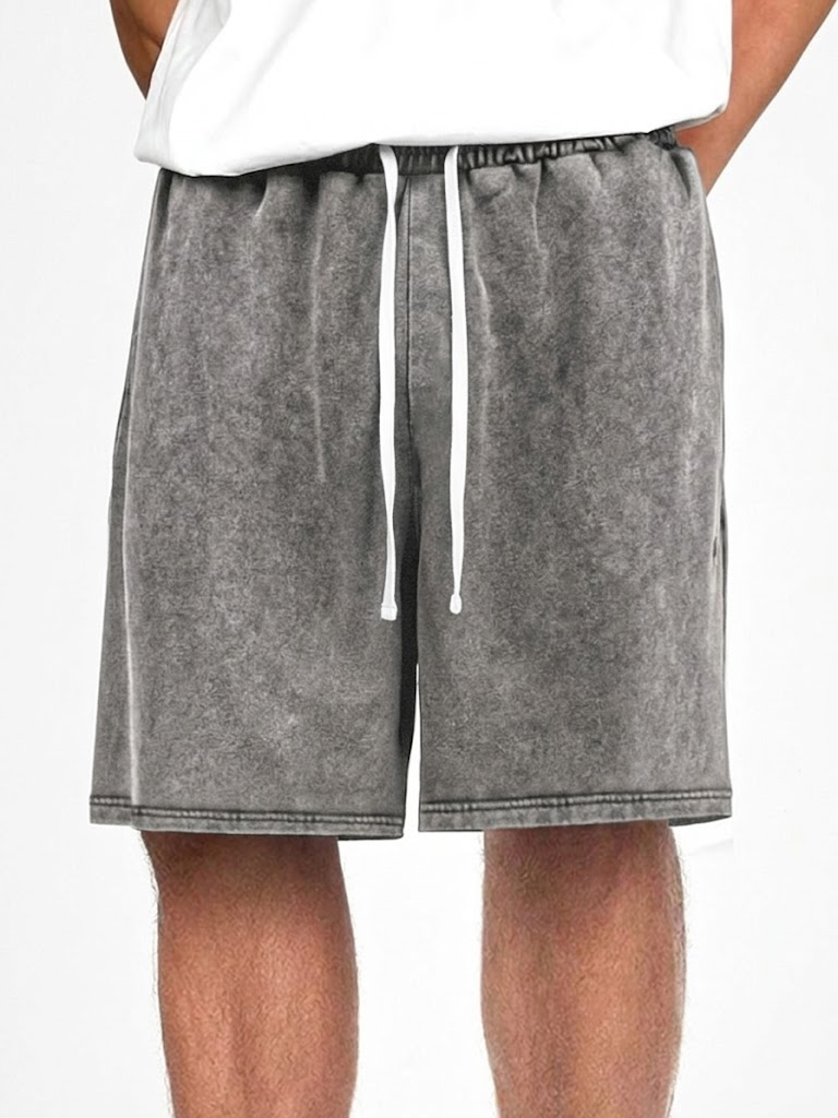 Heavyweight Men's Distressed Washed Loose Drawstring Retro Shorts$37.99 USD -