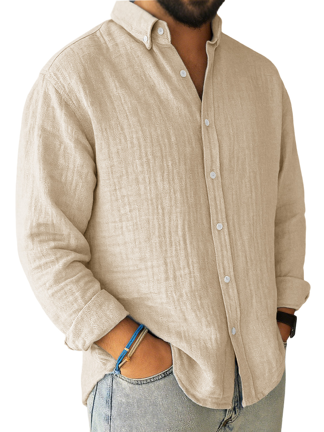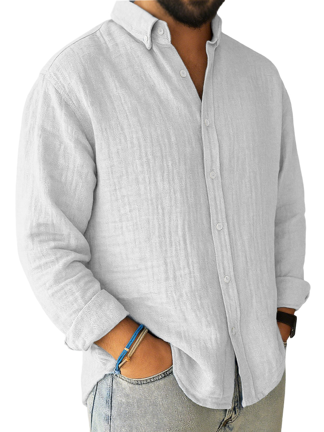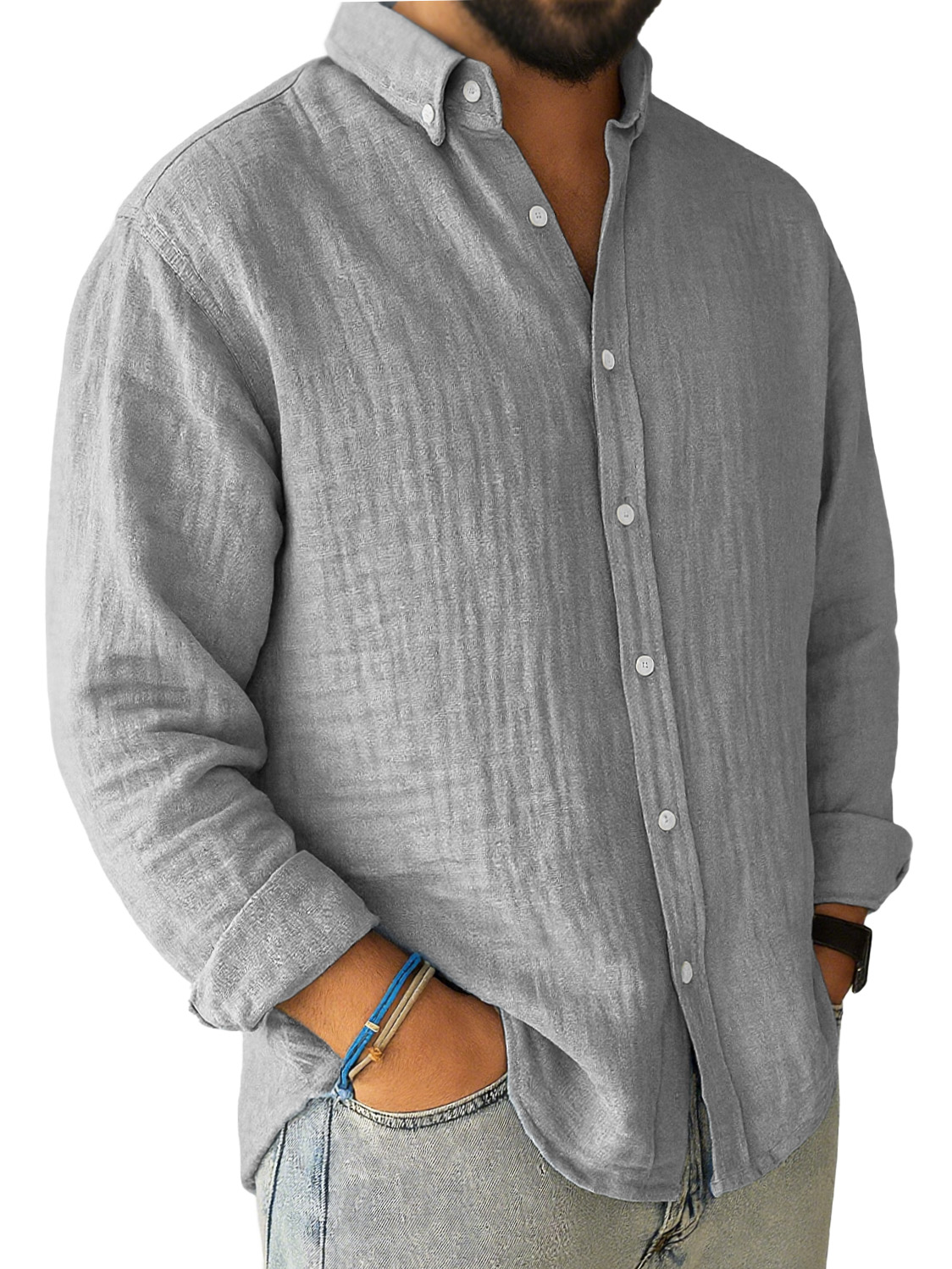 Men's Casual Pleated Loose-fitting Long-sleeved Lapel Shirt