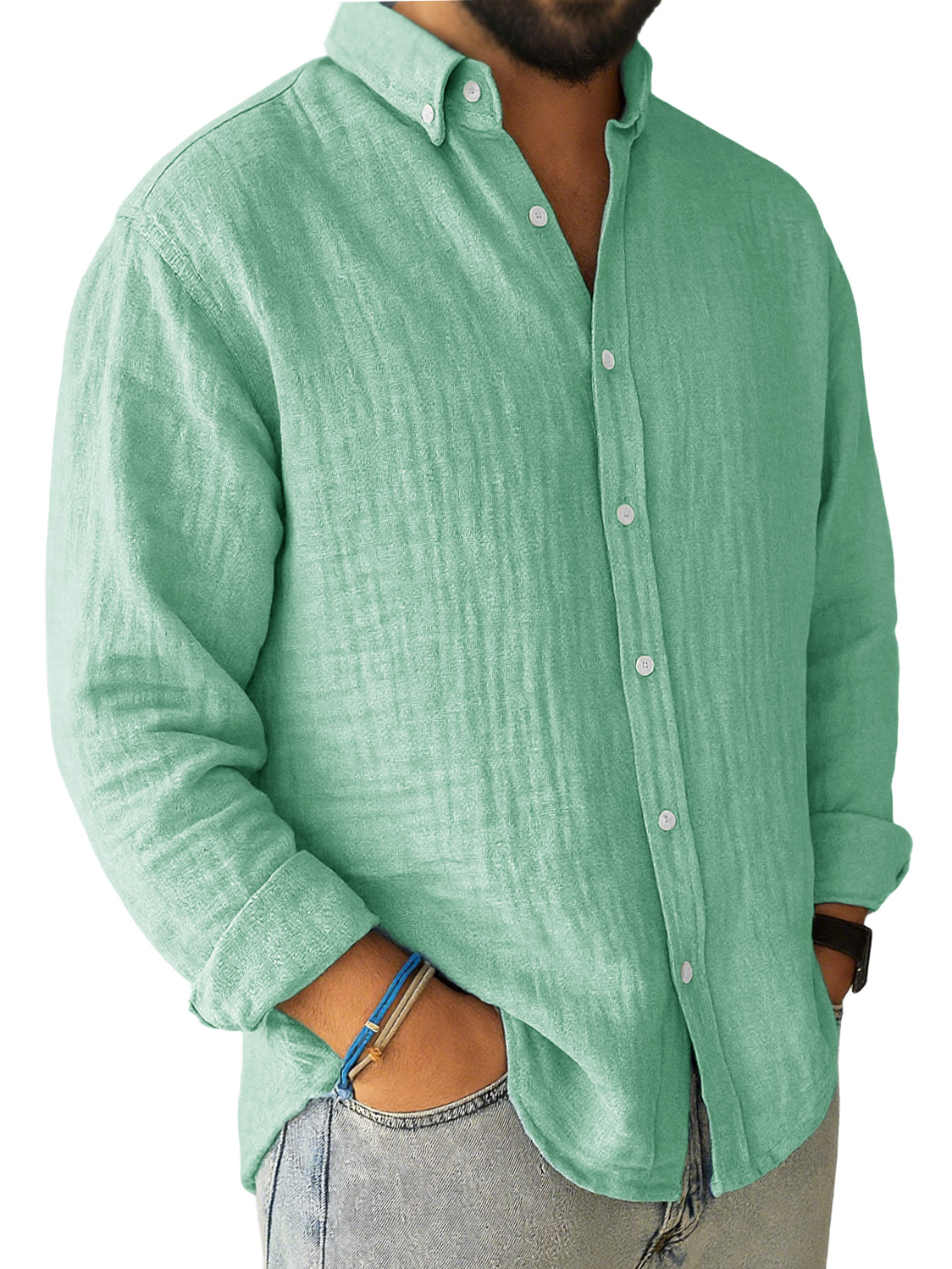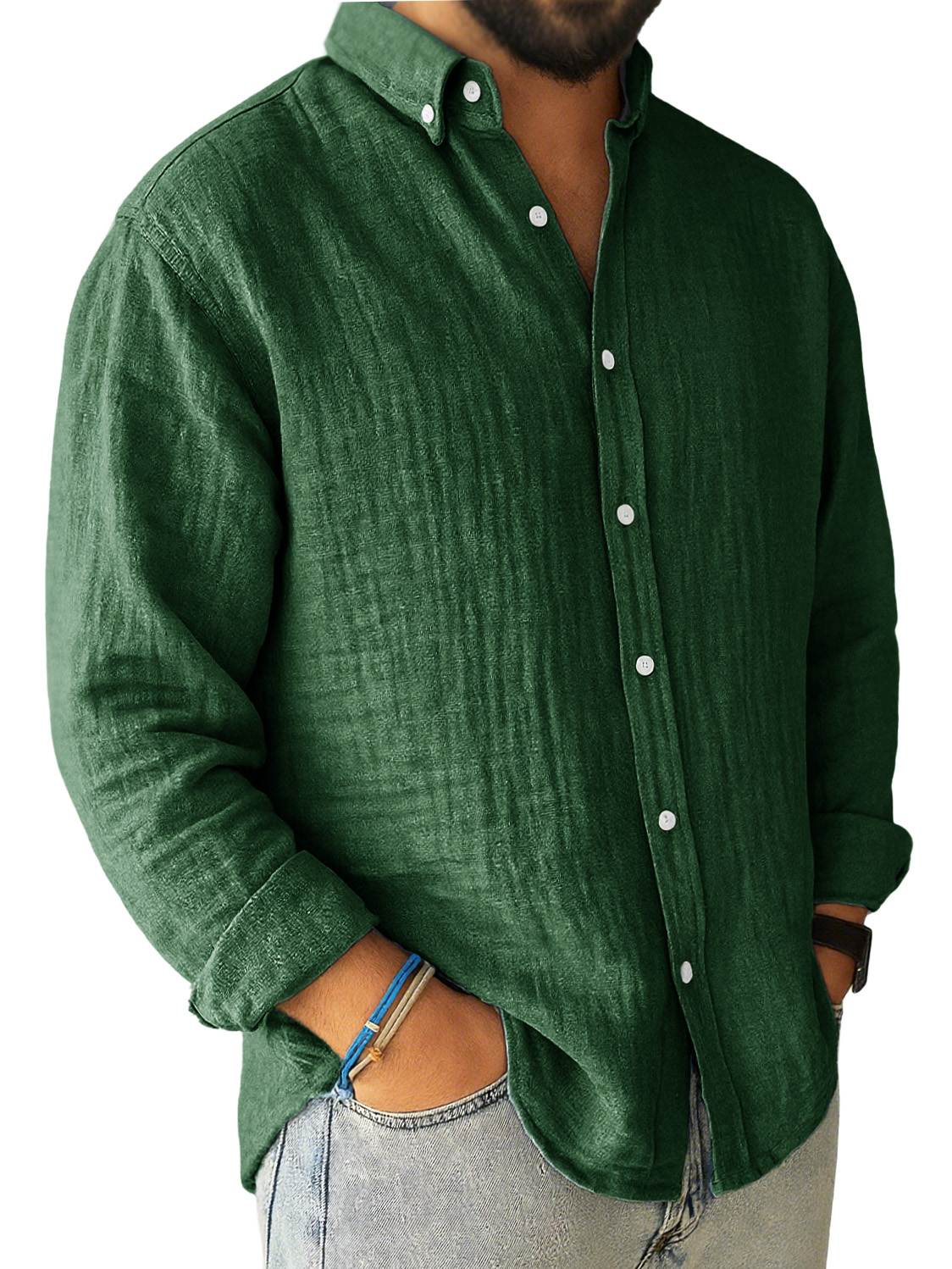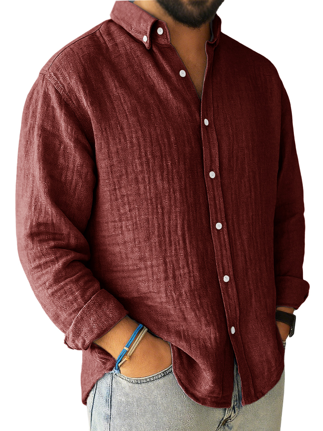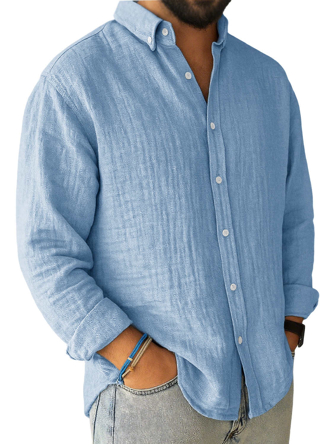 Men's Casual Pleated Loose-fitting Long-sleeved Lapel Shirt