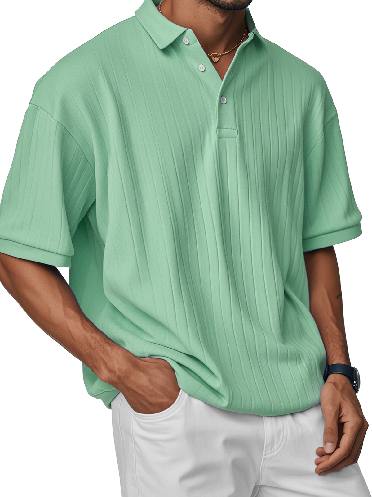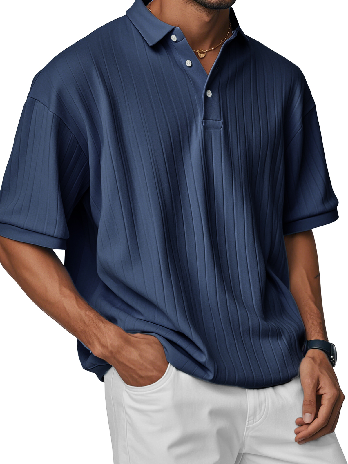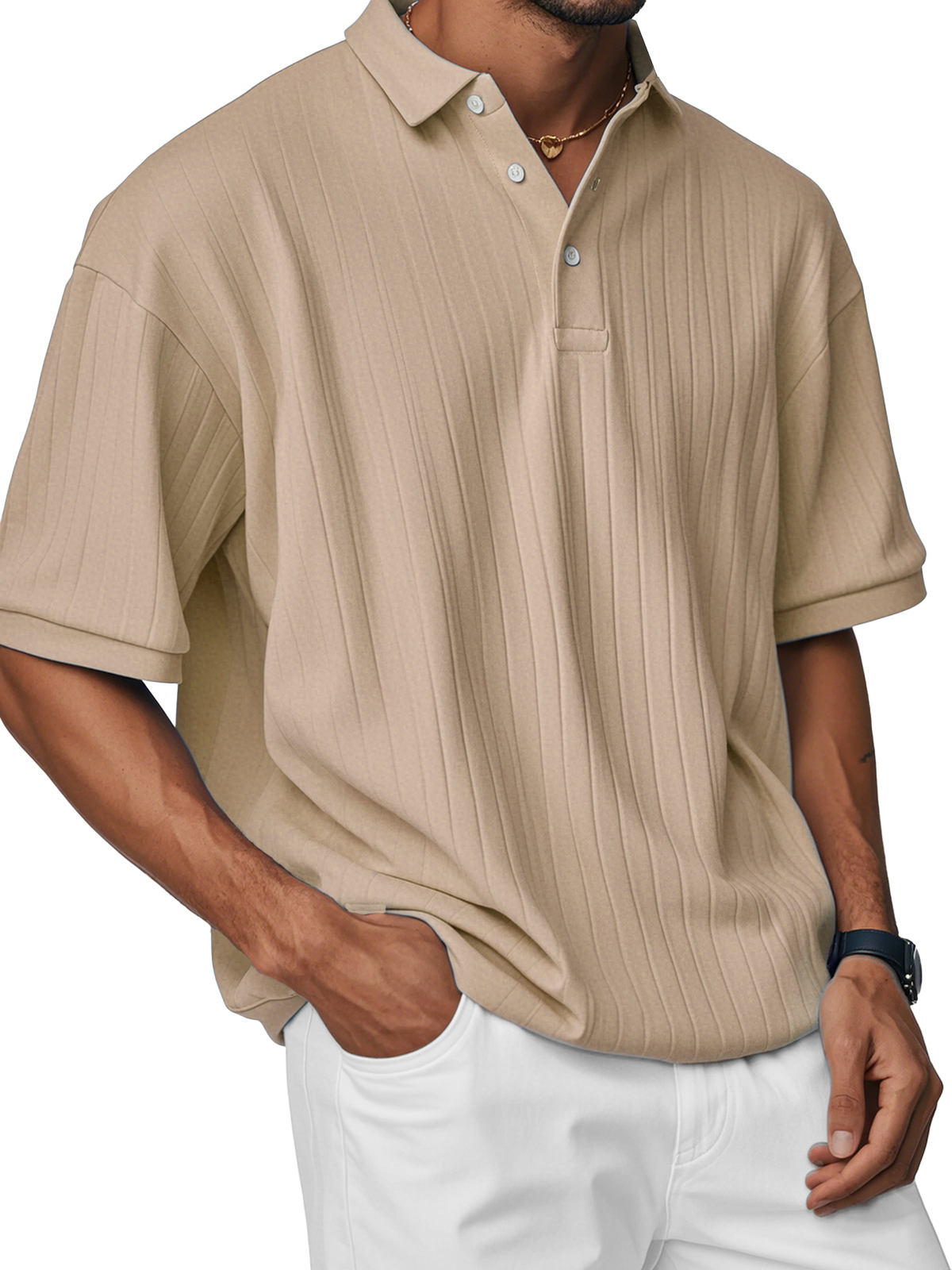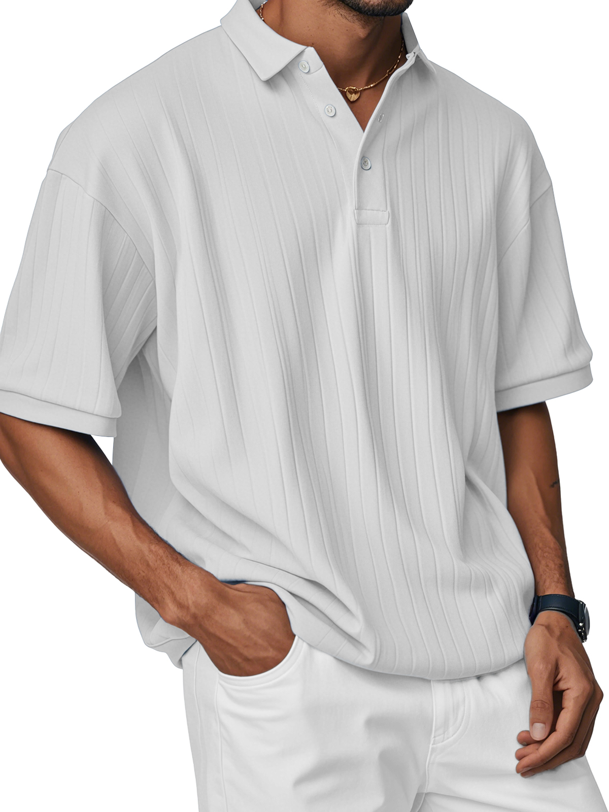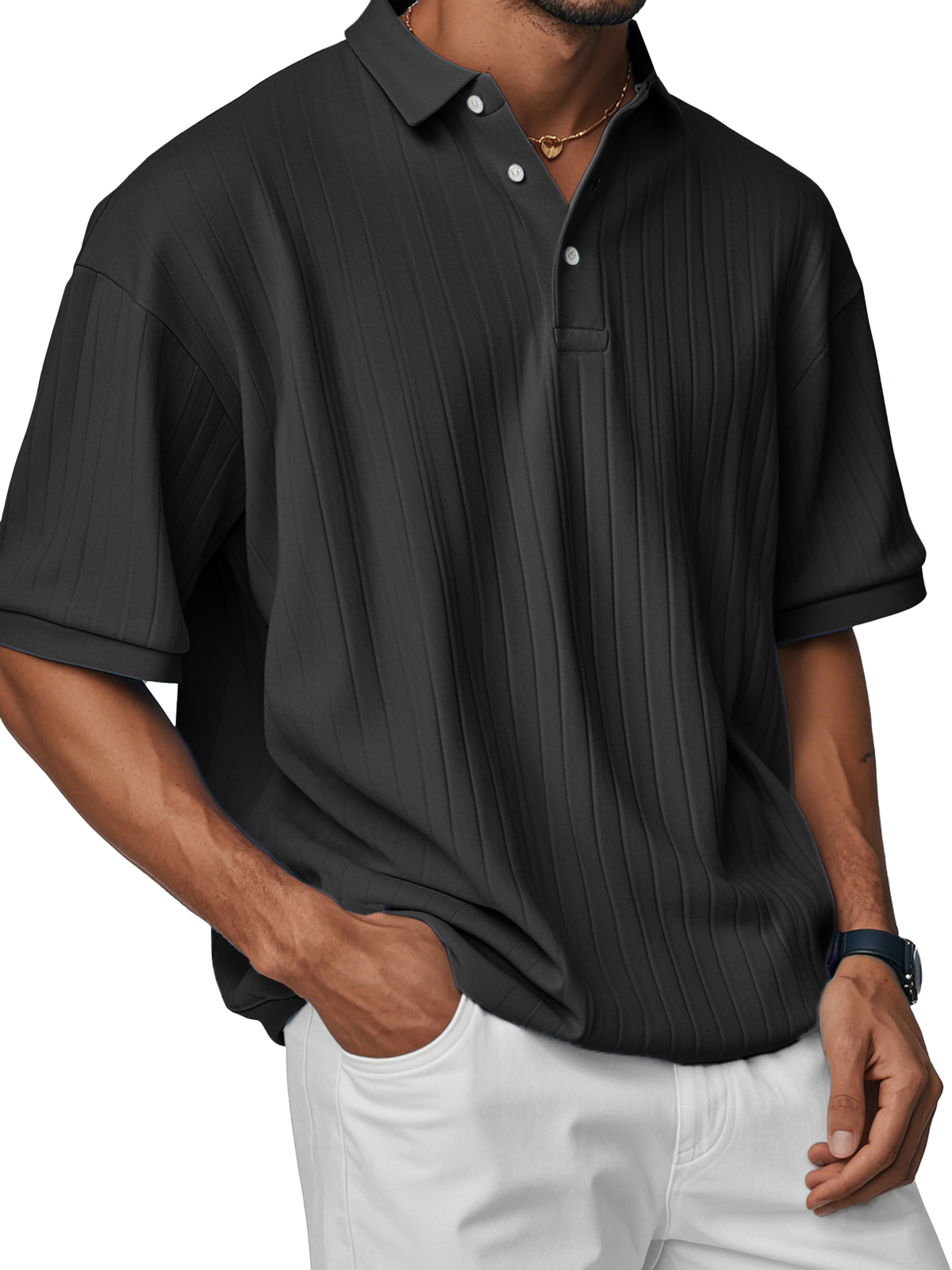 Men's Fashion Casual Comfortable Loose Ribbed Fabric Short-sleeved Polo Shirt