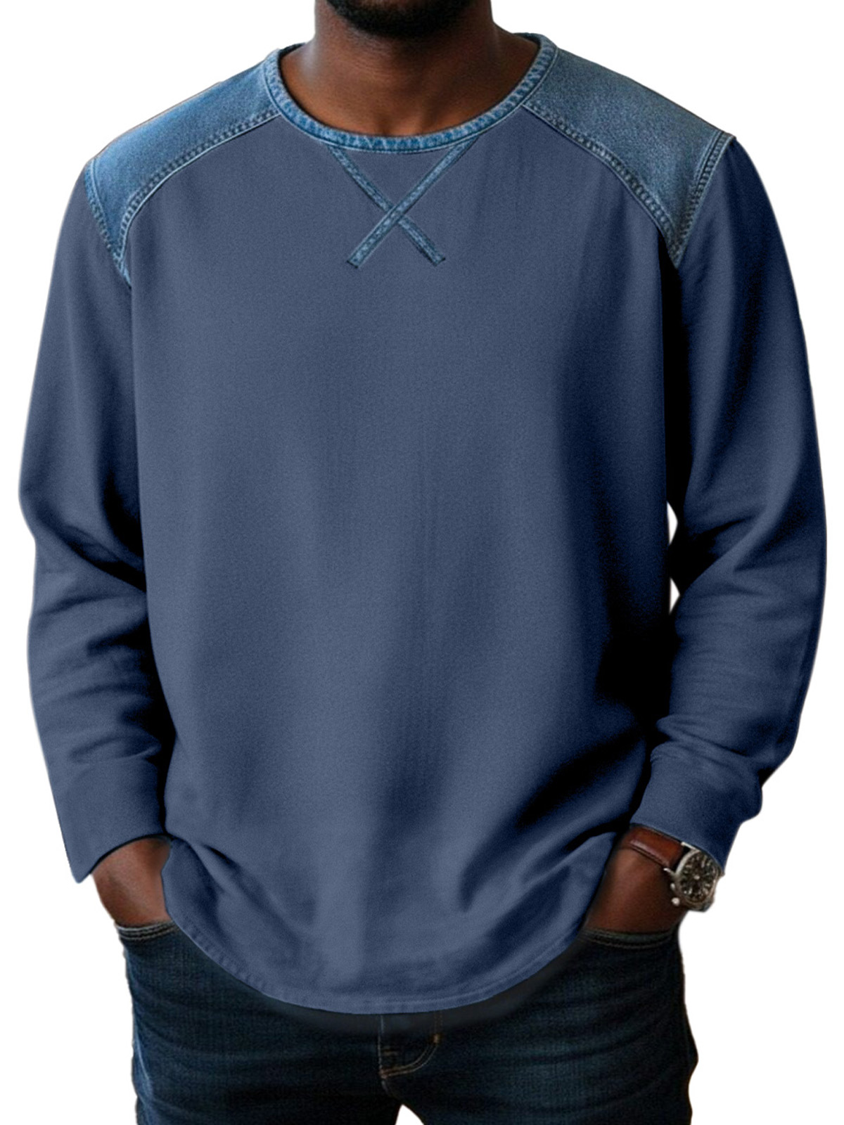 Basic Casual Inverted Triangle Design Spliced ​​round Neck Long-sleeved T-shirt