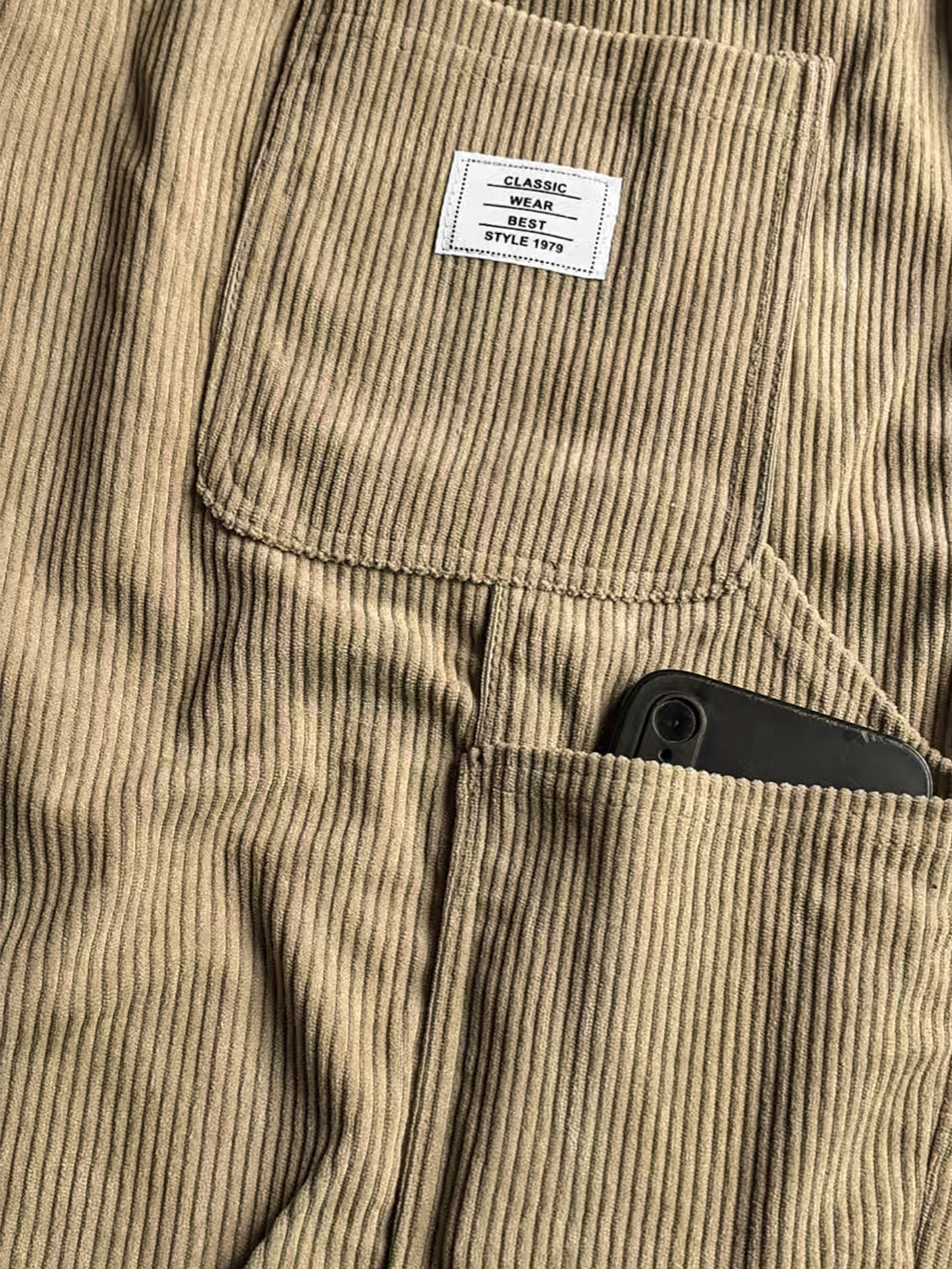 Corduroy Retro Multi-Pocket Embroidered Shorts