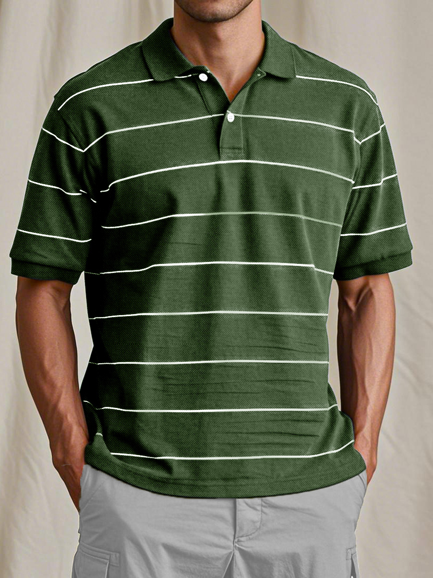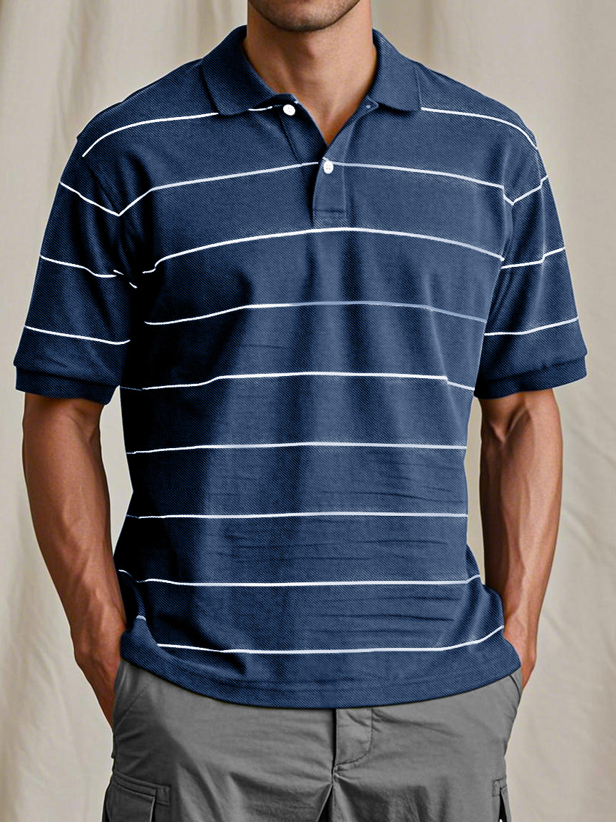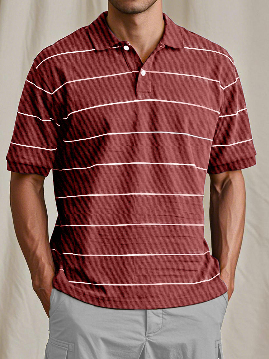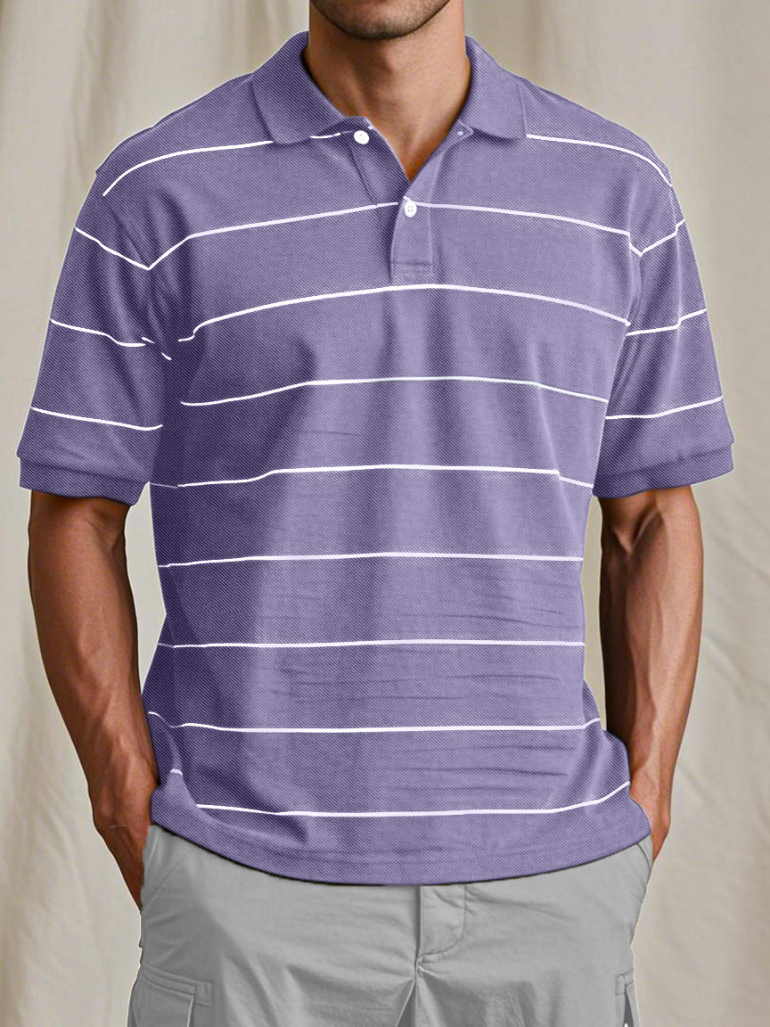 Men's Casual And Comfortable Retro Striped Short-sleeved Polo Shirt
