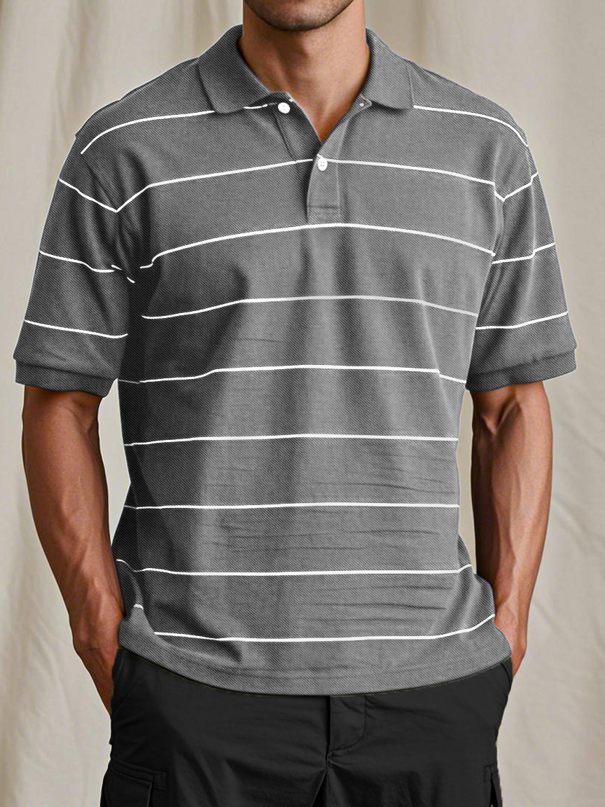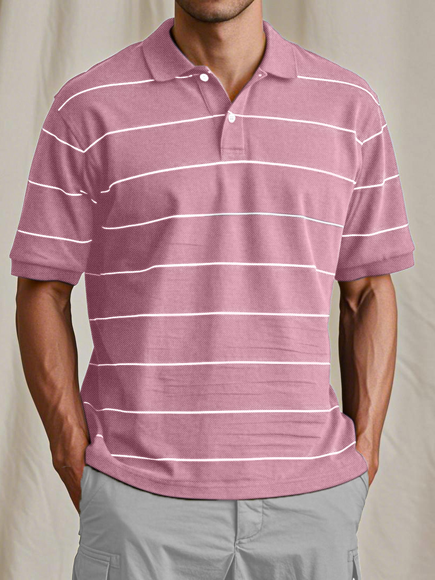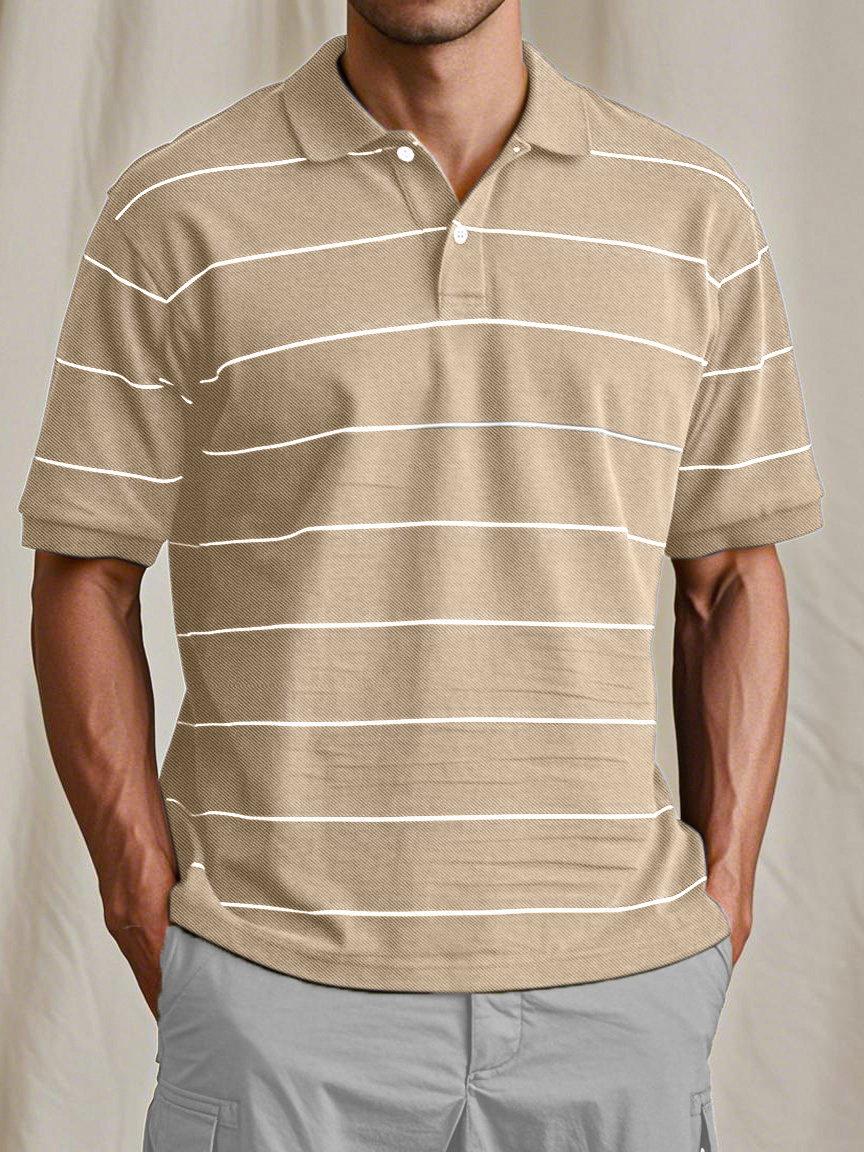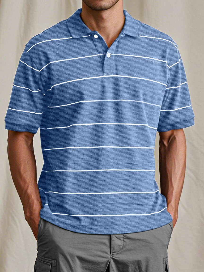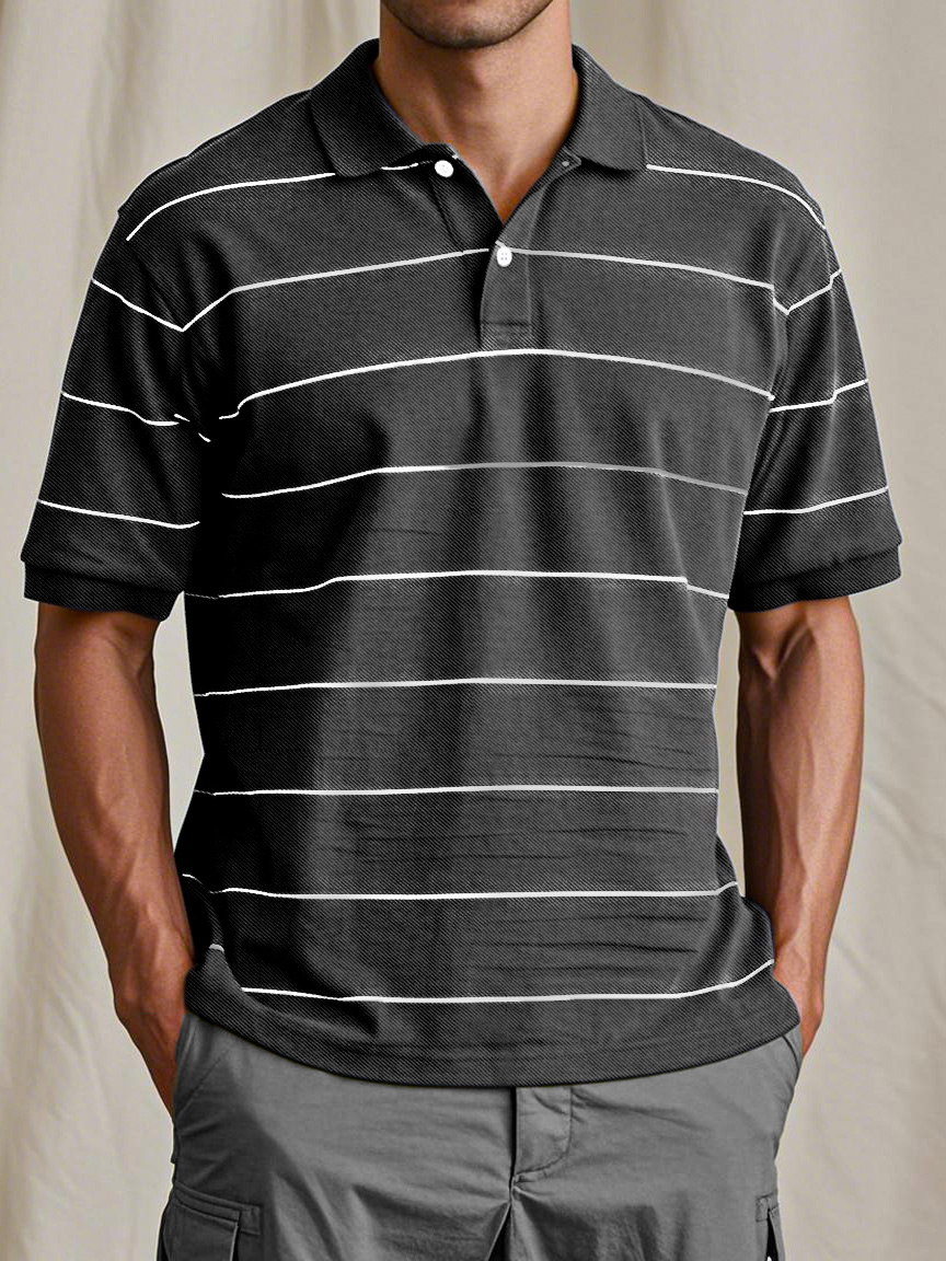 Men's Casual And Comfortable Retro Striped Short-sleeved Polo Shirt