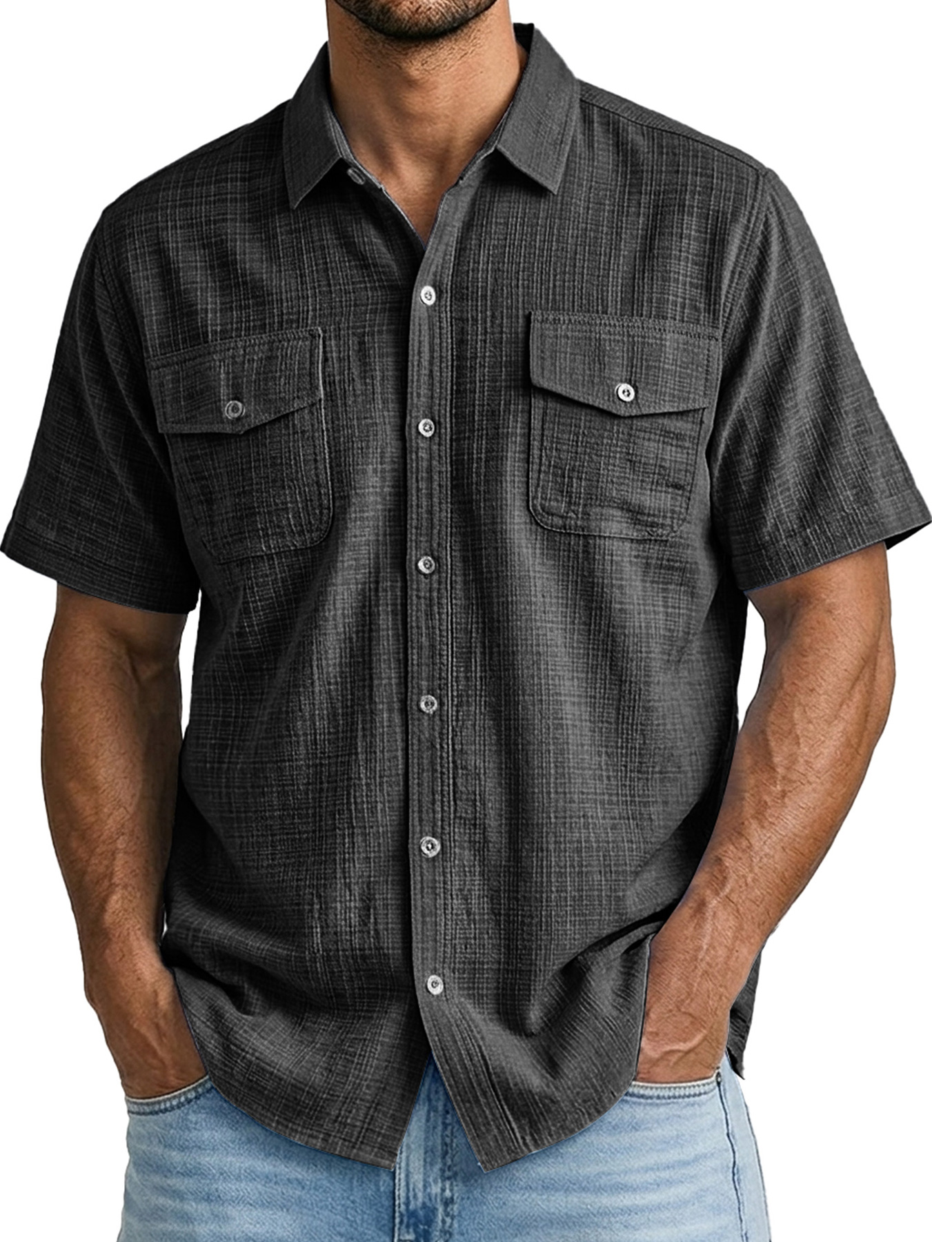 Men's Casual Bamboo-Style Linen Multi-Pocket Work Shirt