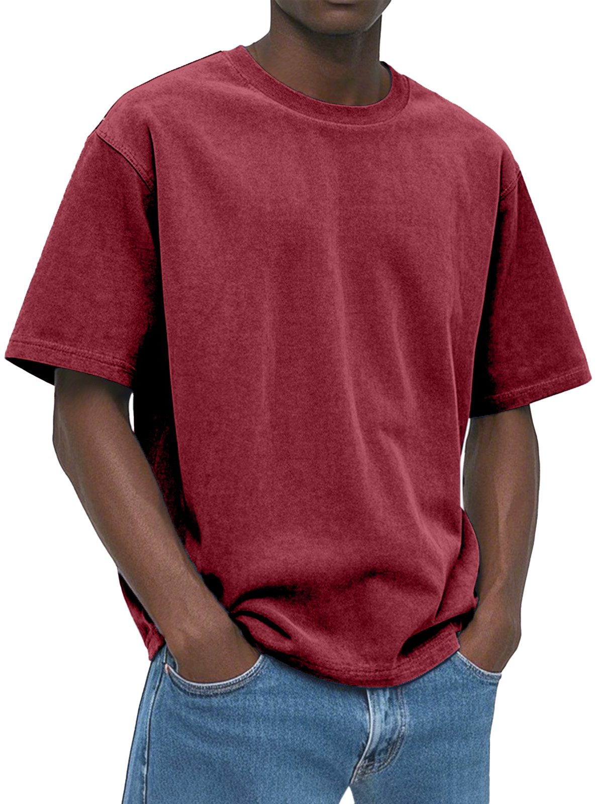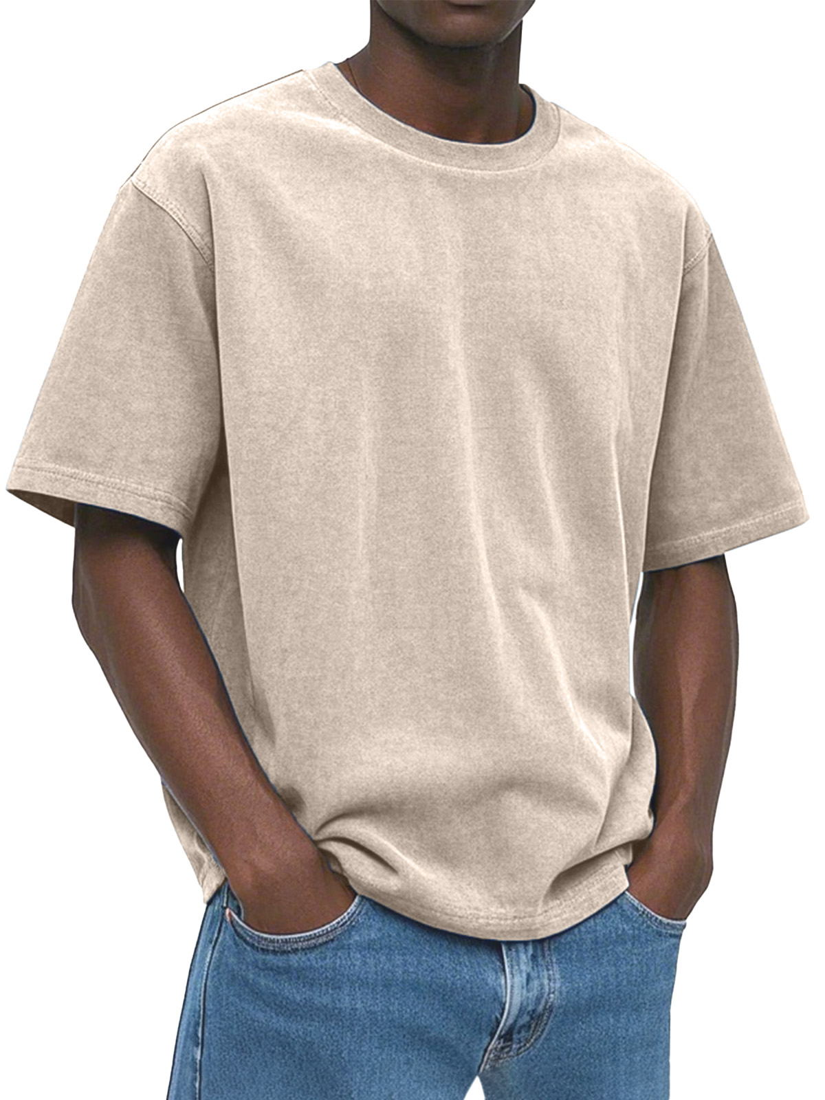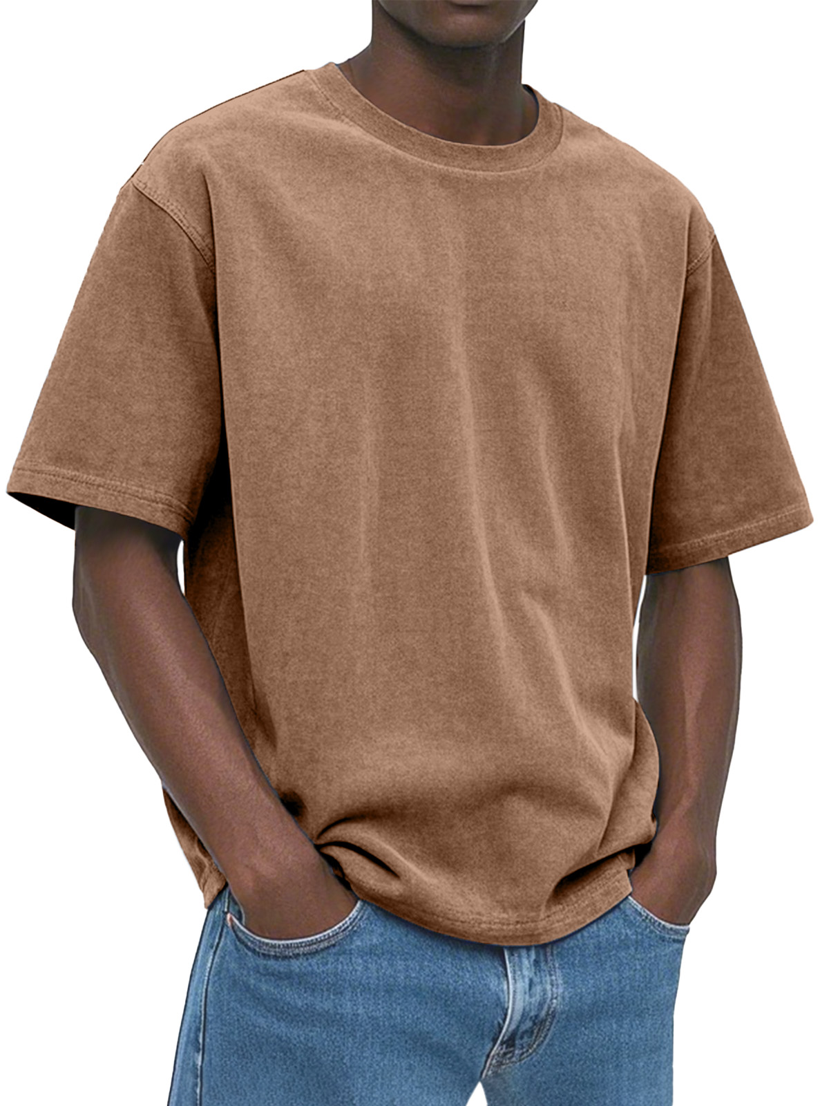 Men's Casual, Comfortable And Loose Solid Color Suede Short-sleeved T-shirt