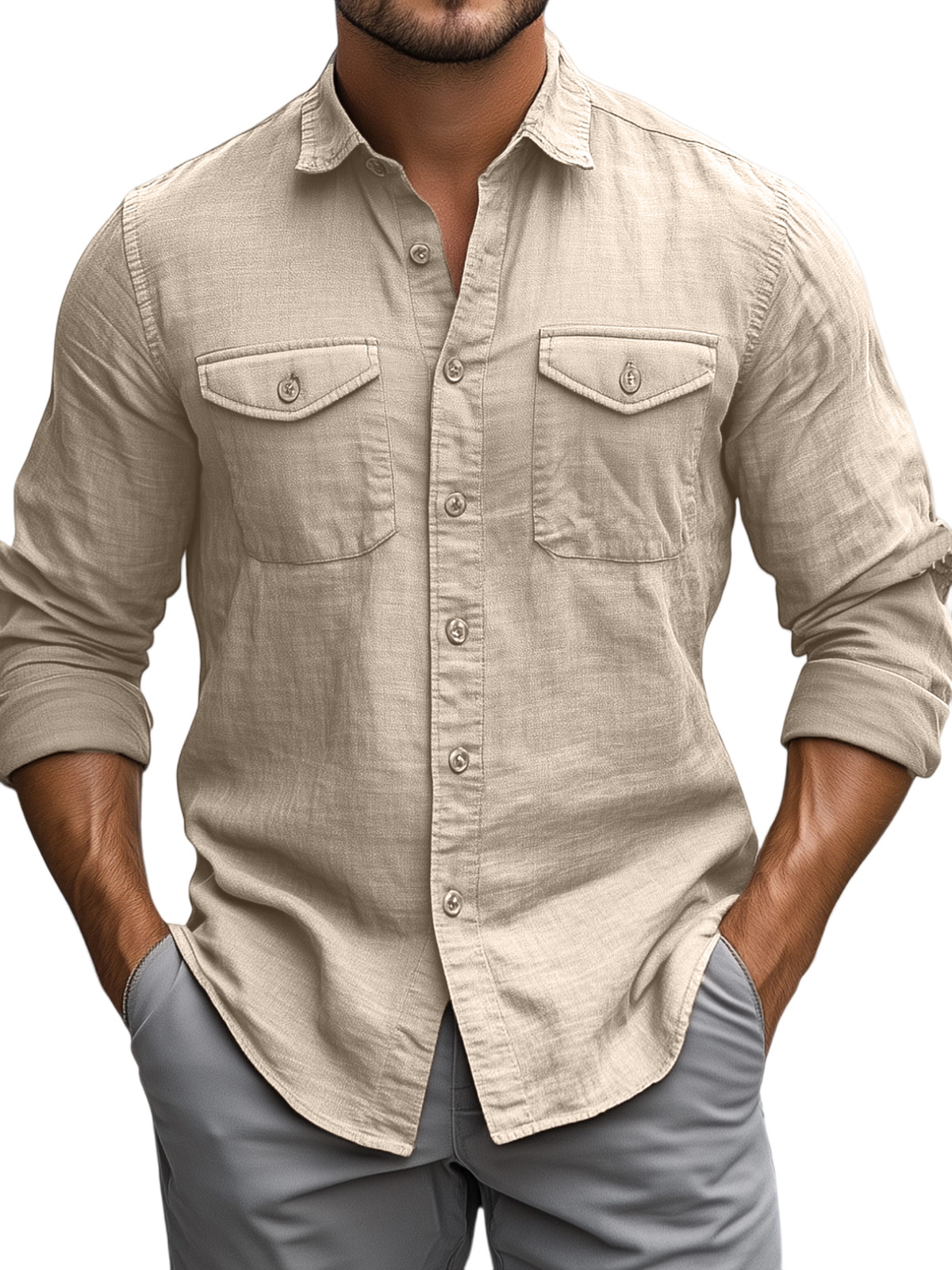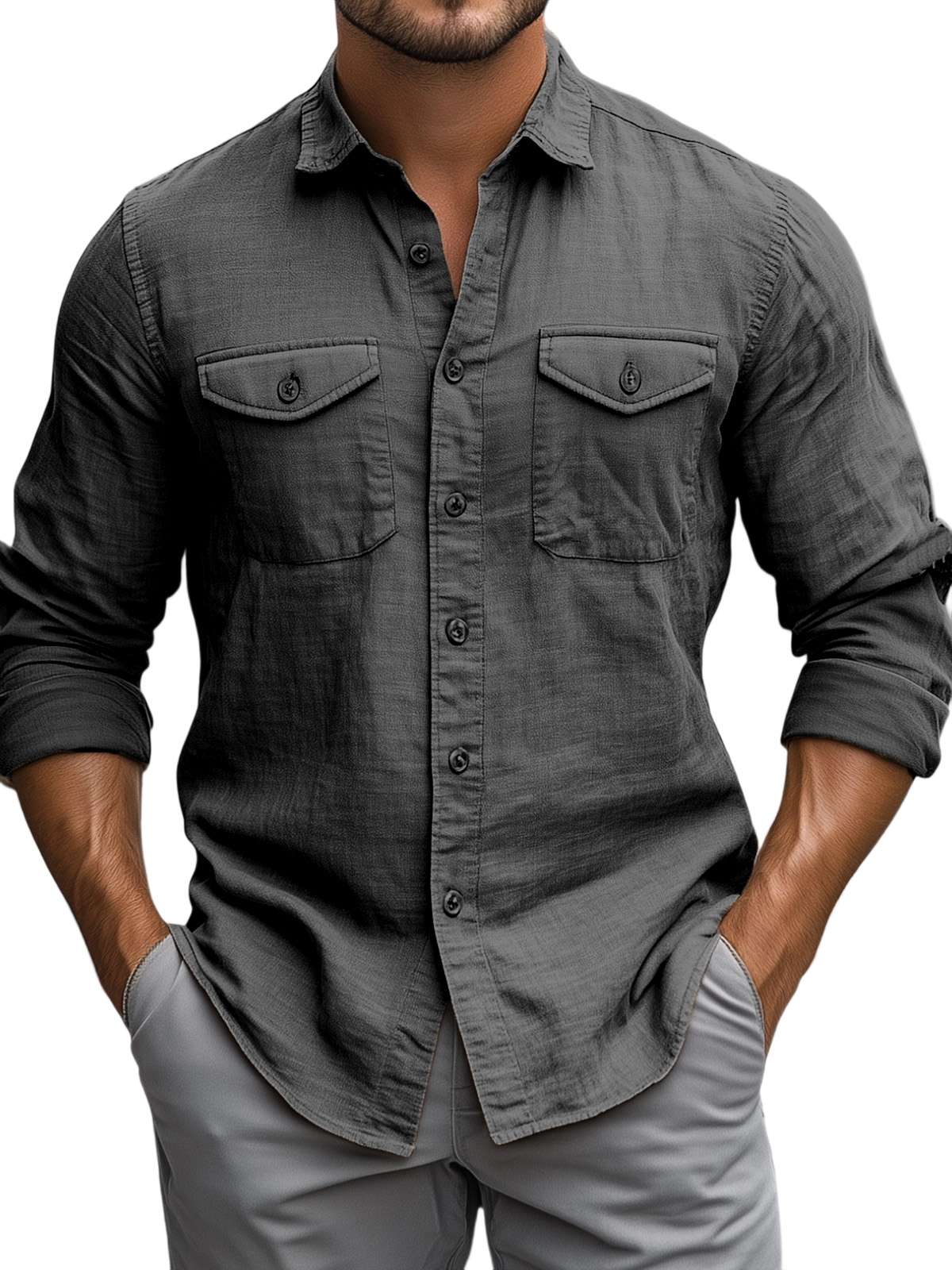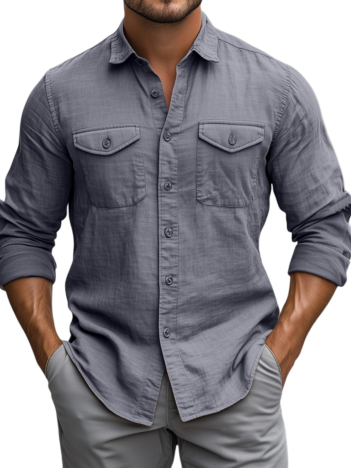 Men's Casual Daily Solid Color Breathable Cotton Long-sleeved Shirt