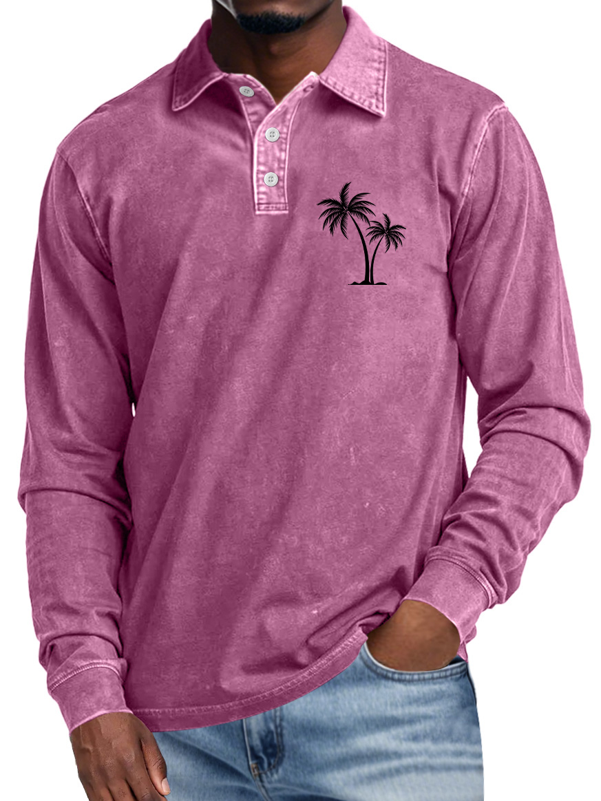 Men's Casual Lapel Buttoned Coconut Print Long Sleeve POLO Shirt
