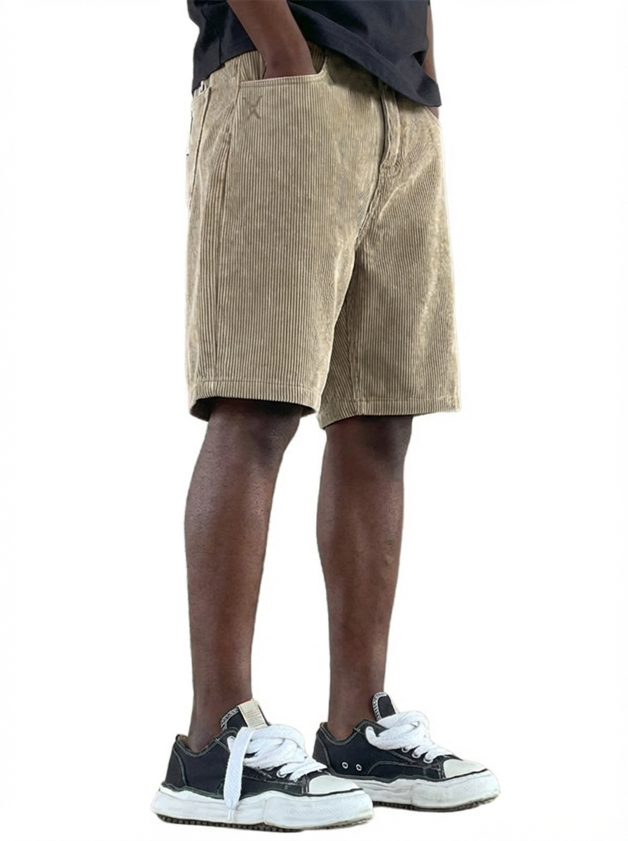 Men's Casual Retro Multi Pocket Embroidered Logo Workwear Corduroy Shorts