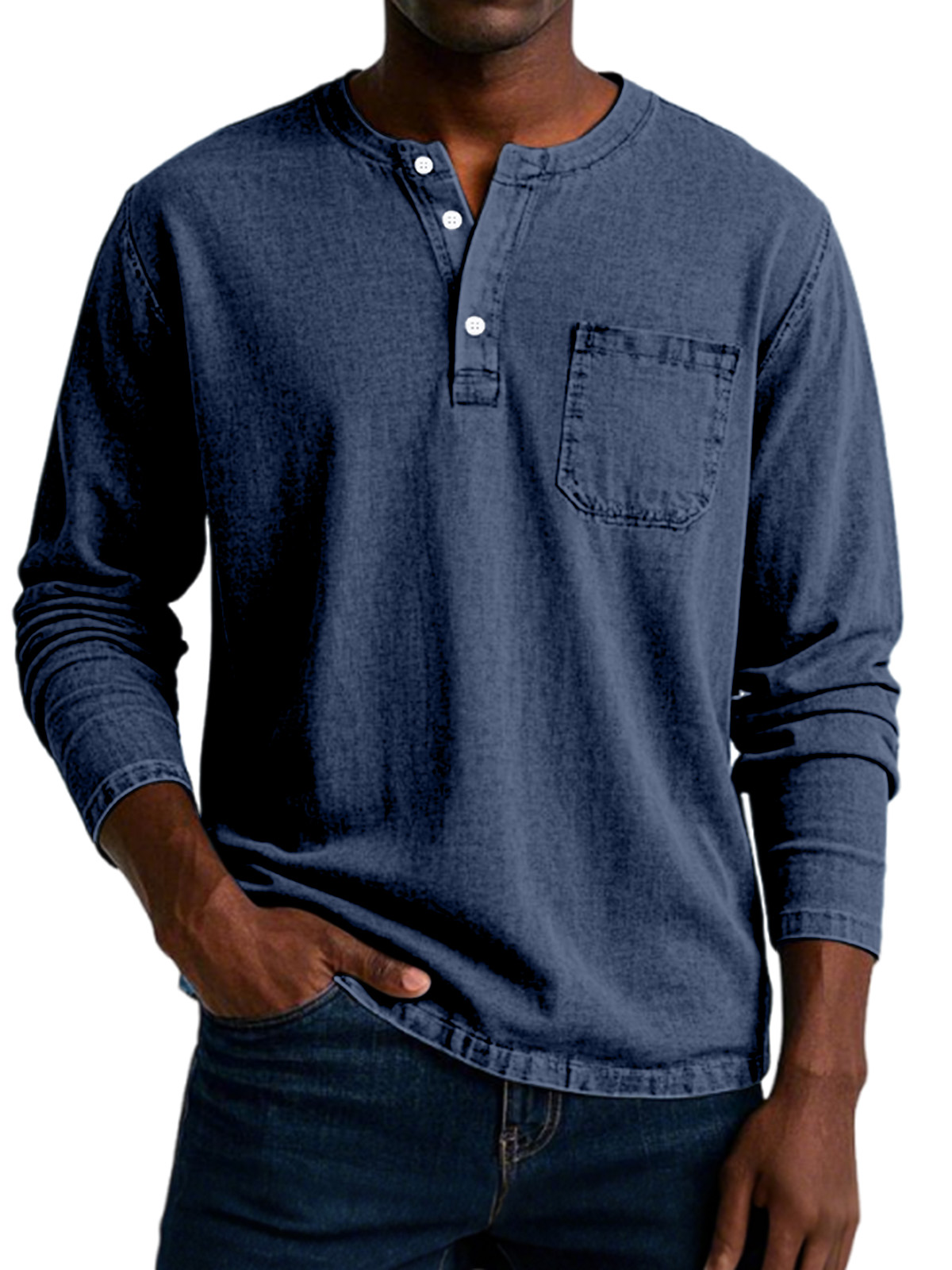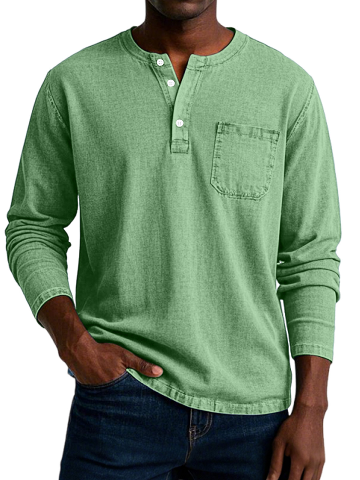 Men's Casual Retro Solid Color Comfortable Long Sleeve Henley Shirt