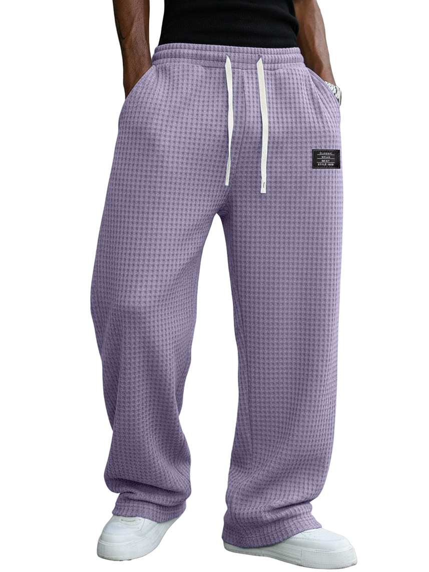 Men's Casual Retro Waffle Fabric Logo Trousers