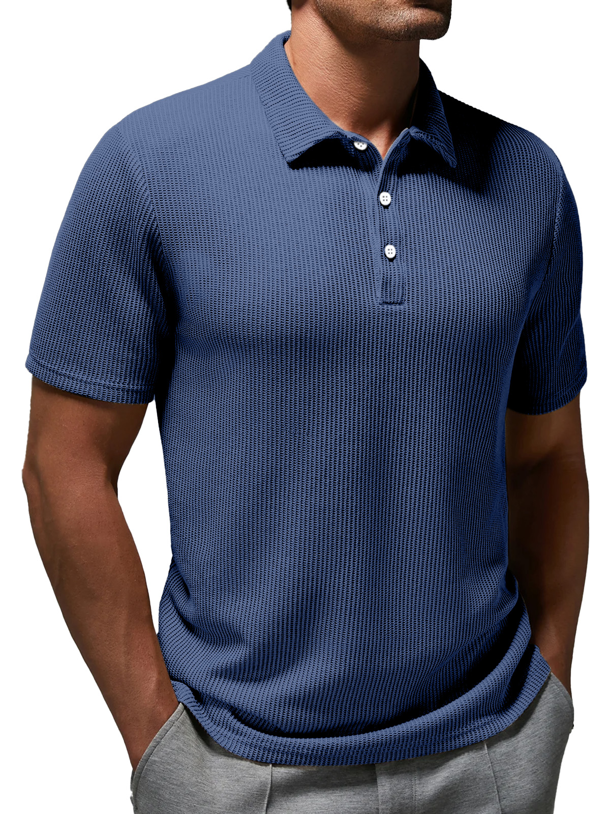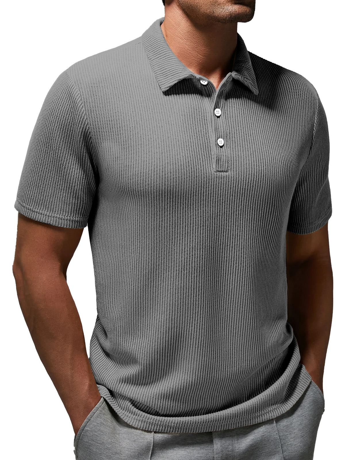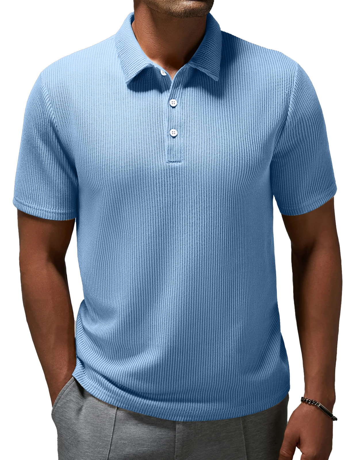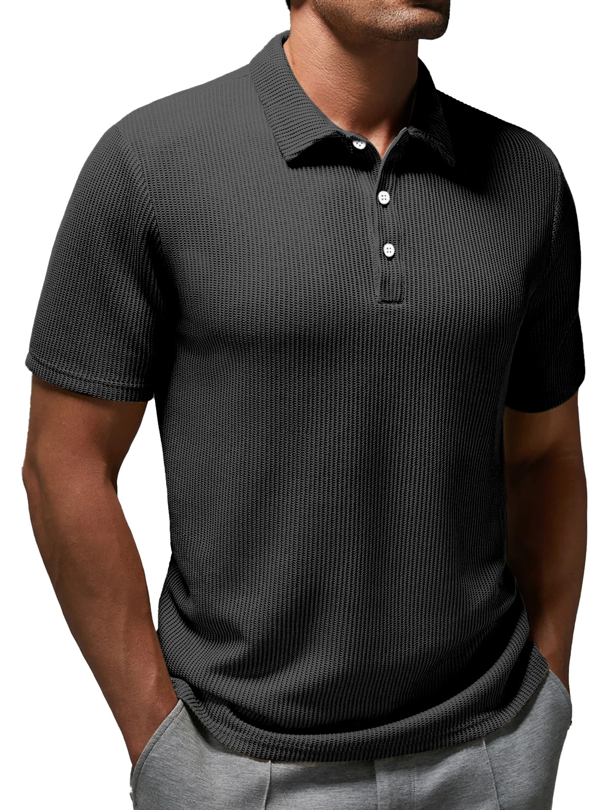 Men's Casual Solid Color Texture Short-sleeved Button-down Polo Shirt