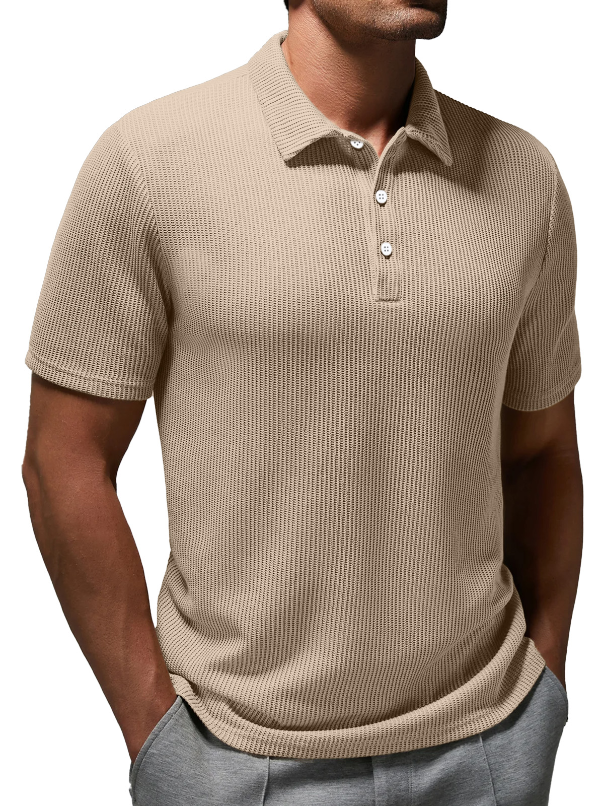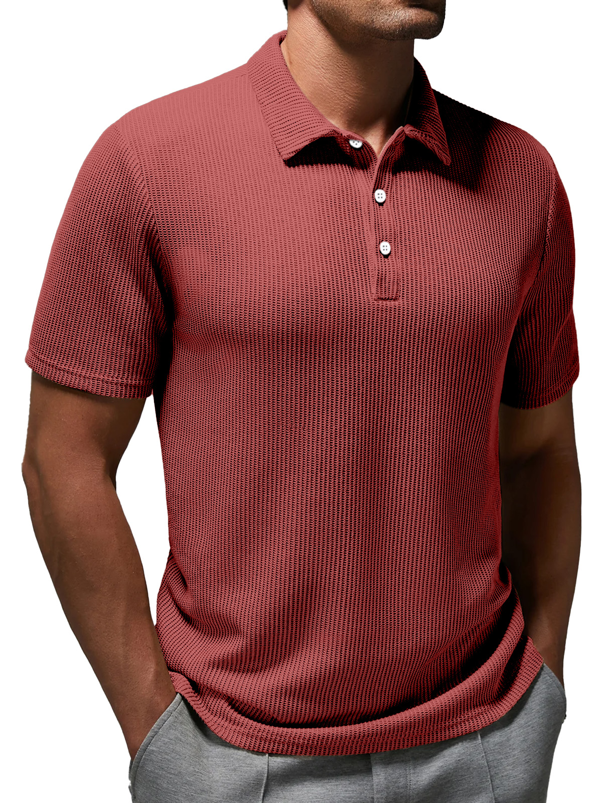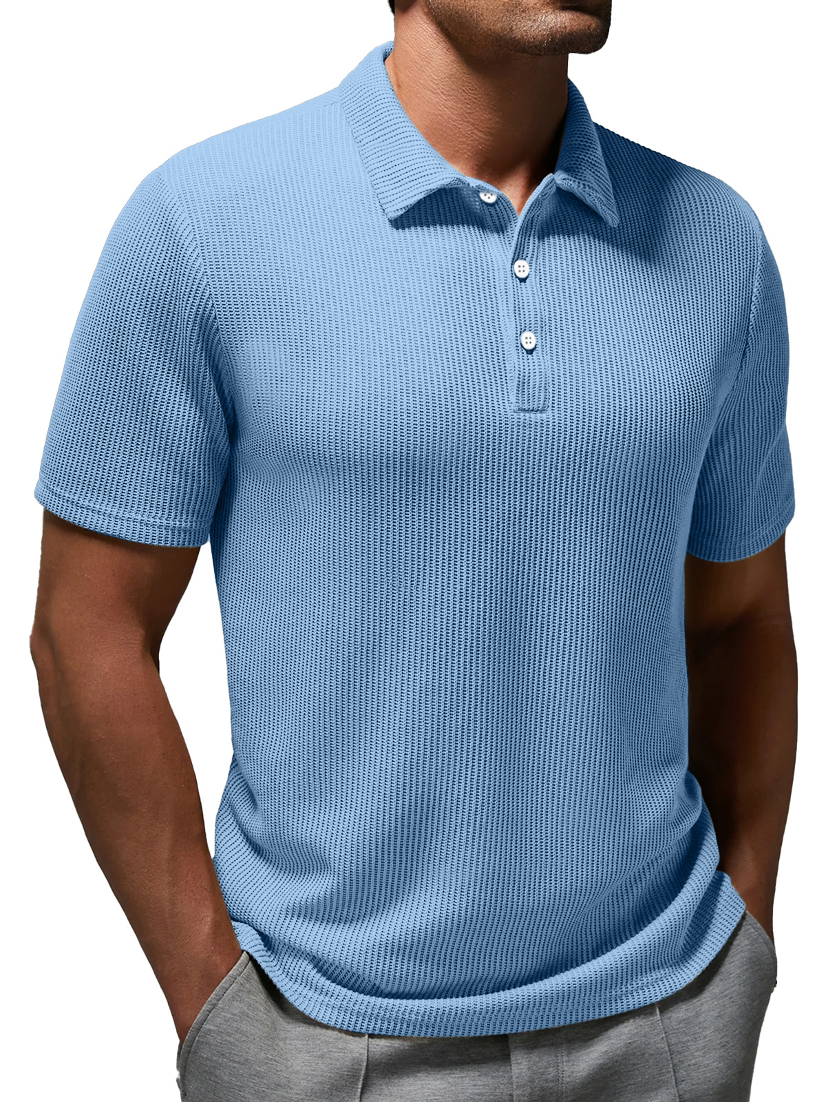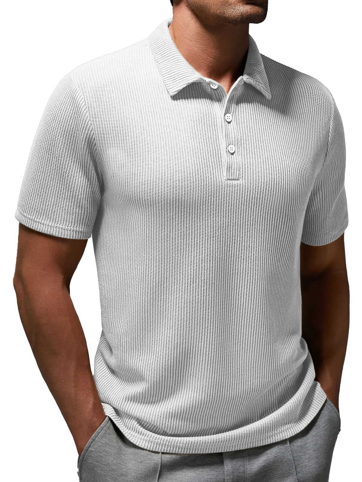Men's Casual Solid Color Texture Short-sleeved Button-down Polo Shirt