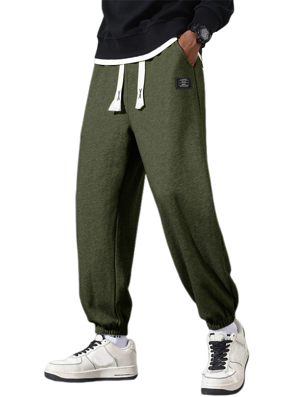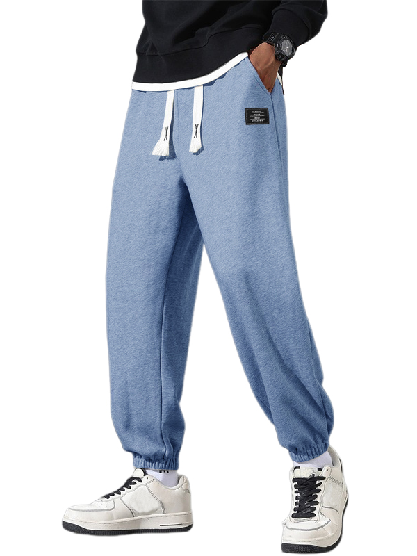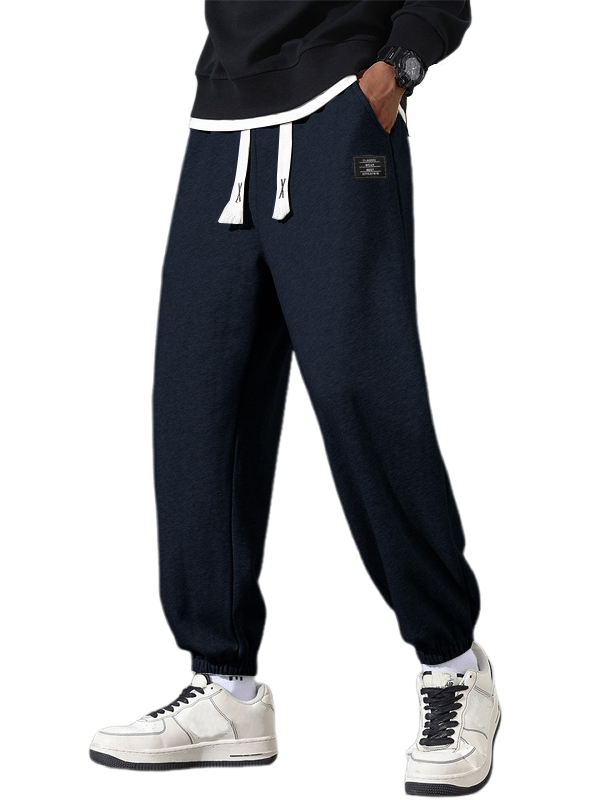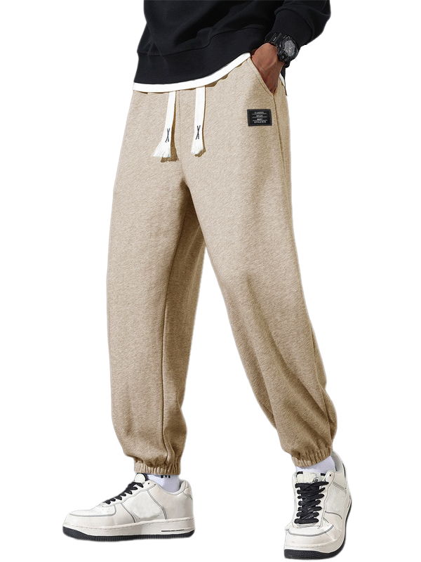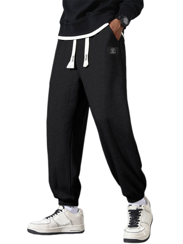 Men's Casual Sports Cotton Logo Embroidered Elastic Waist Cuff Pants