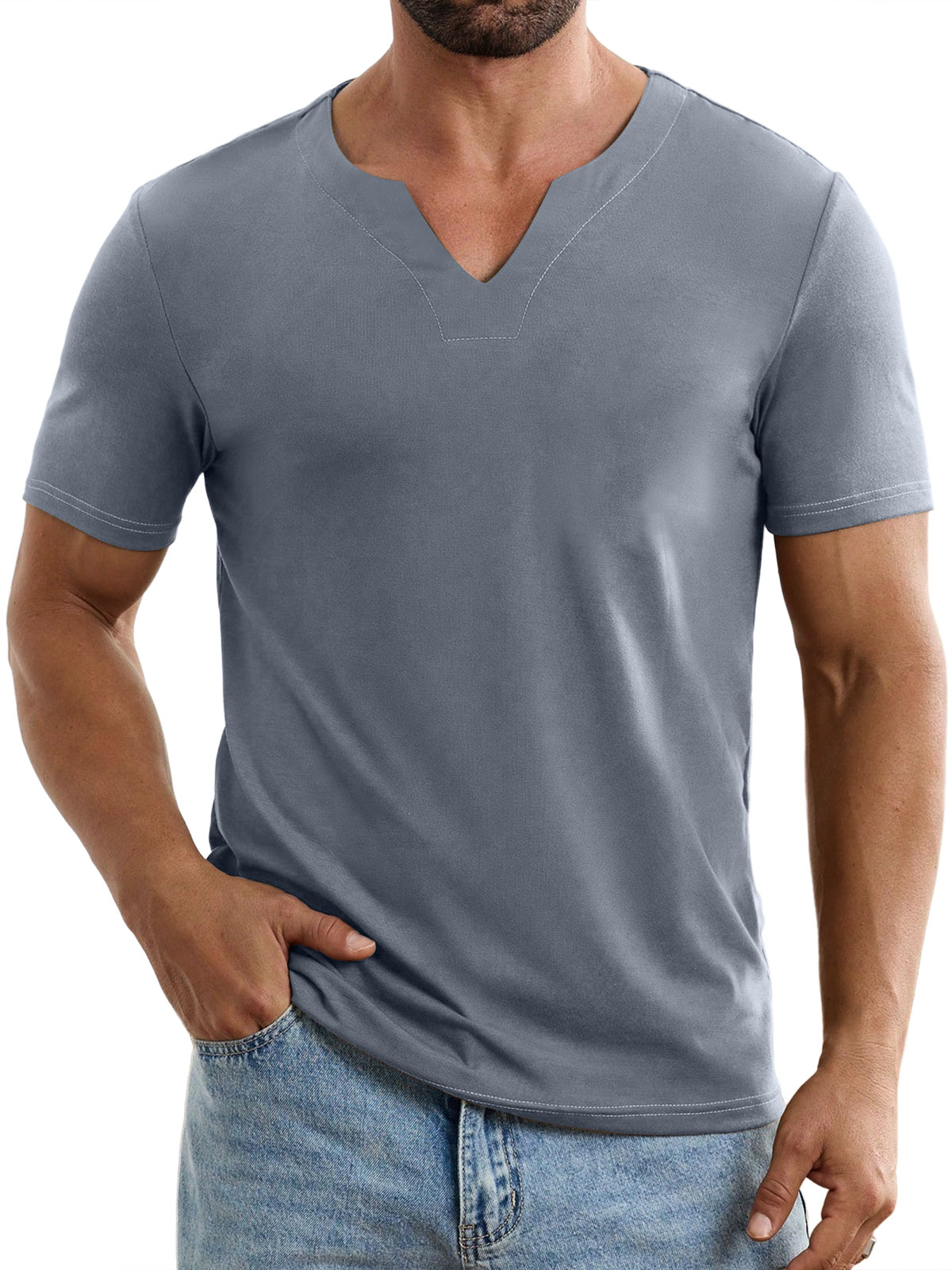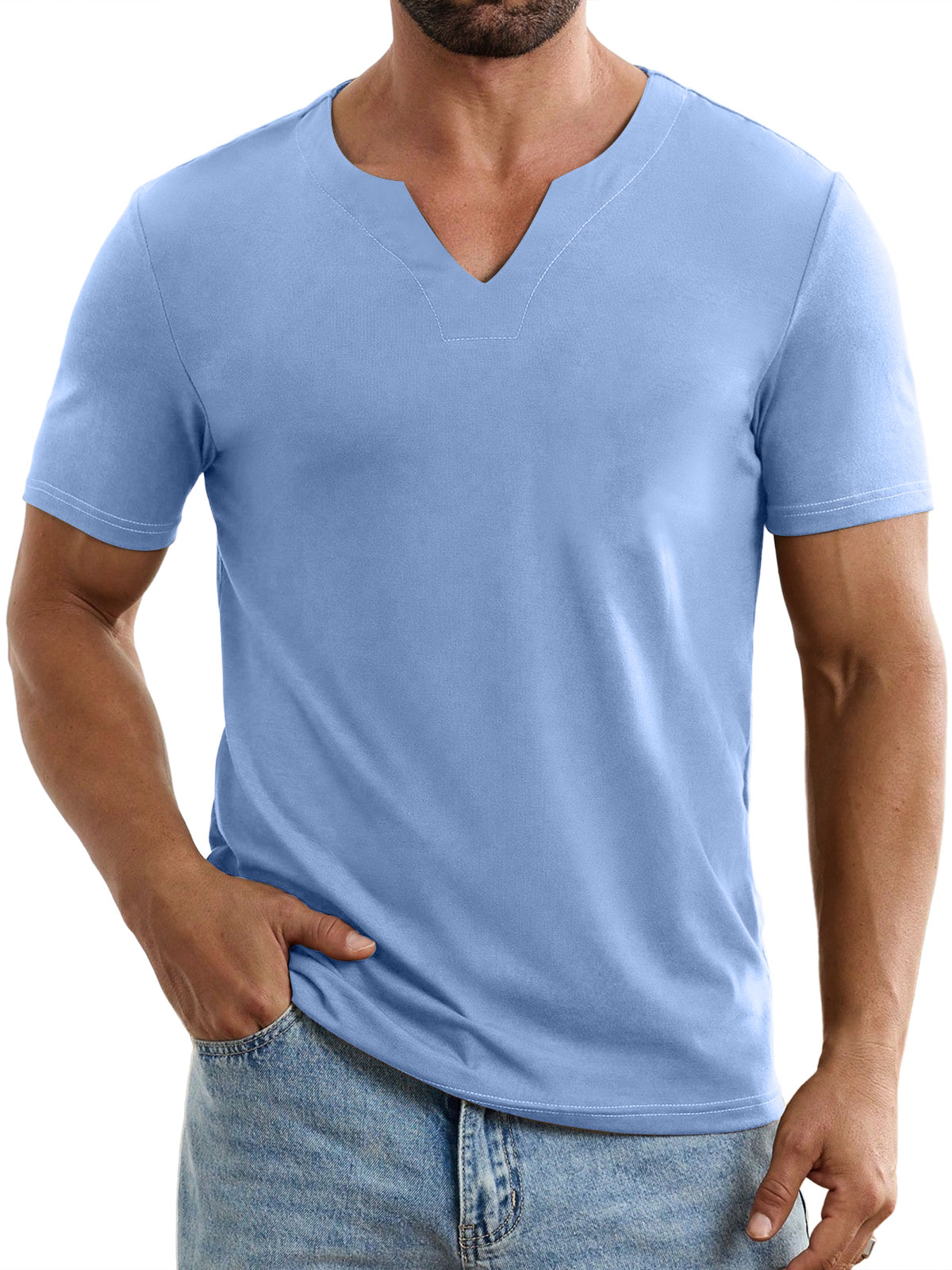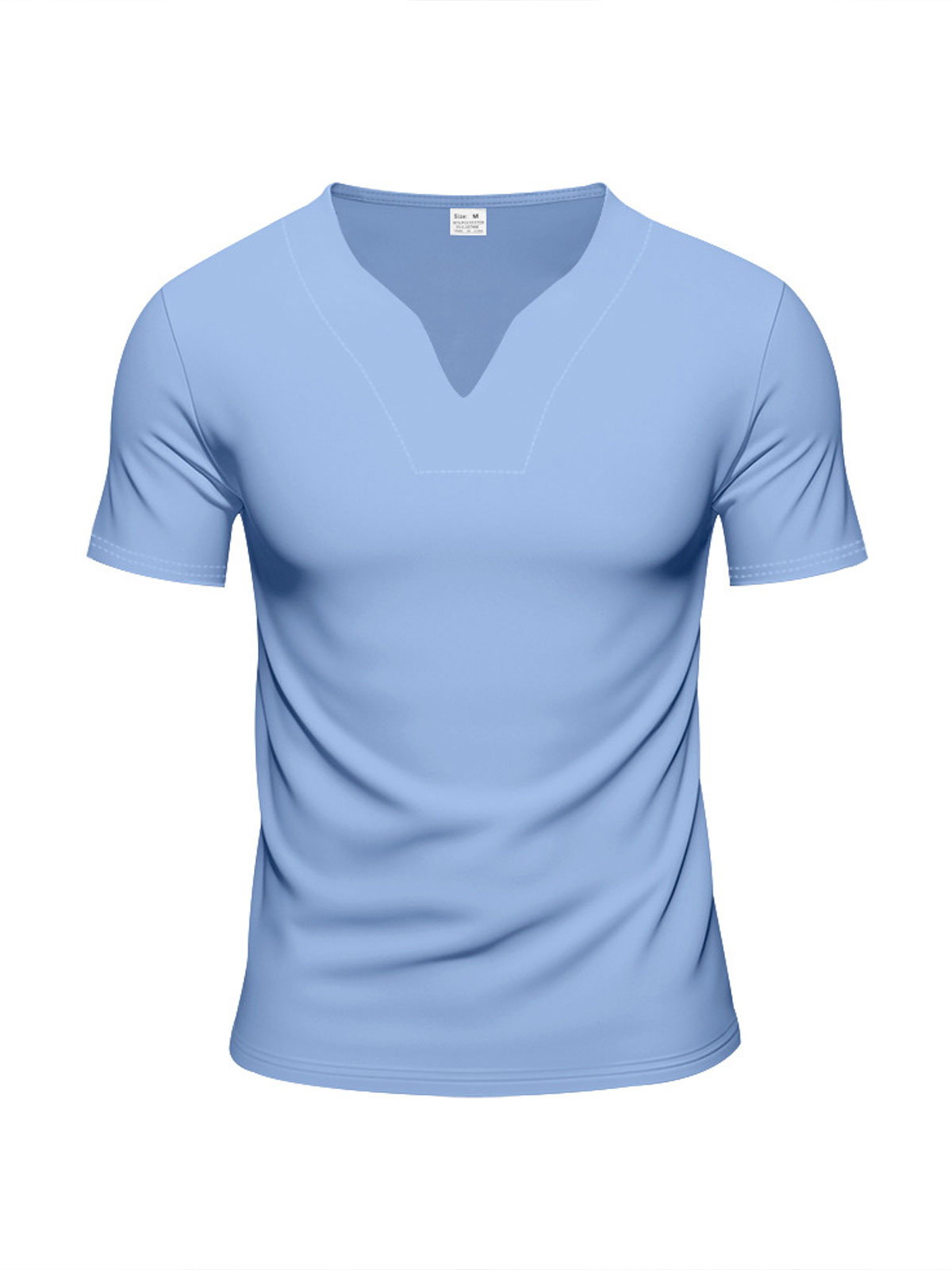 Men's Casual V-neck Solid Color Comfortable Short-sleeved T-shirt