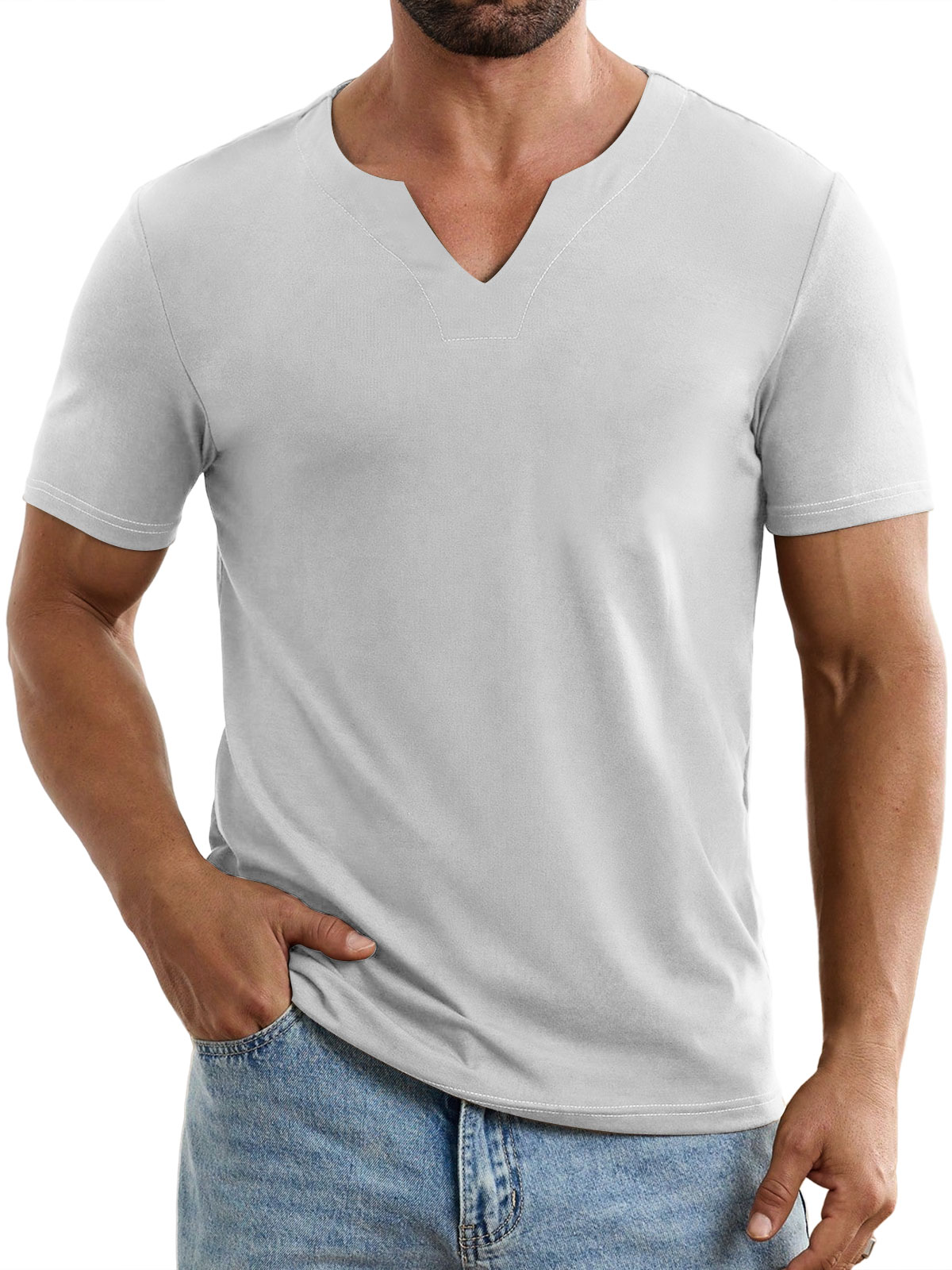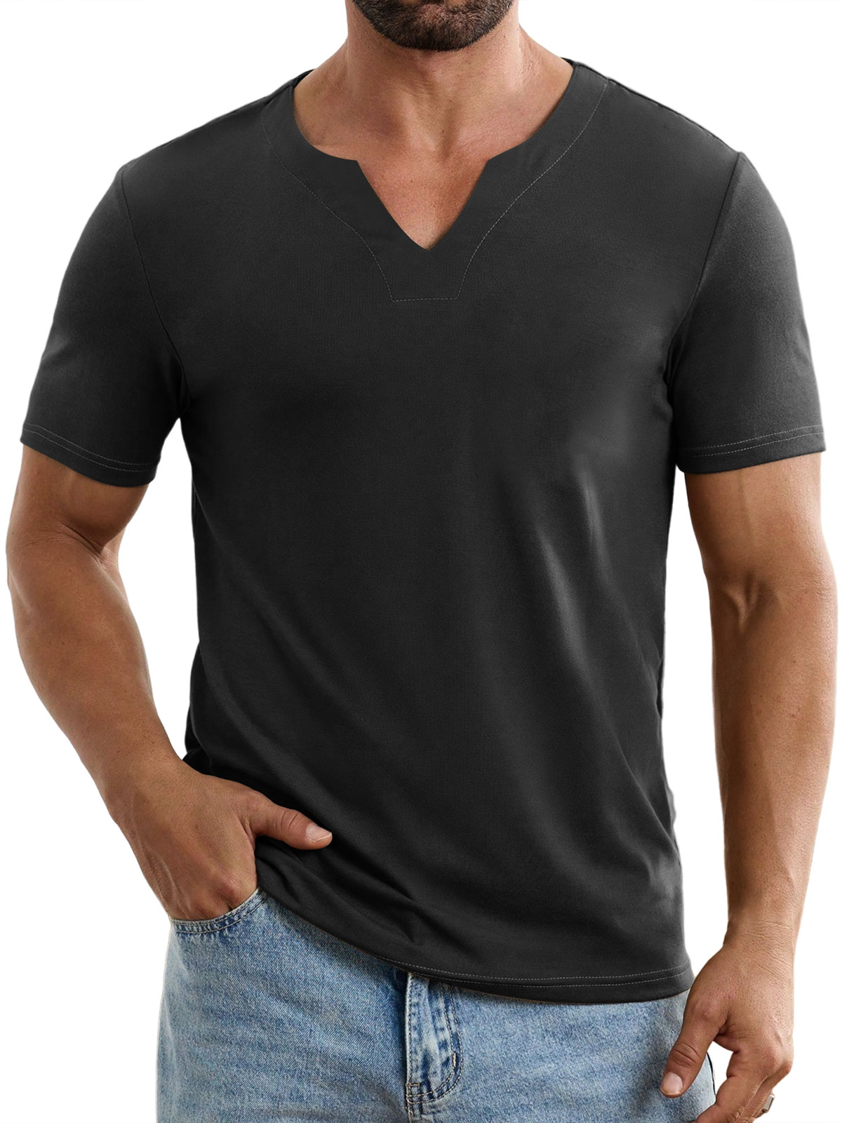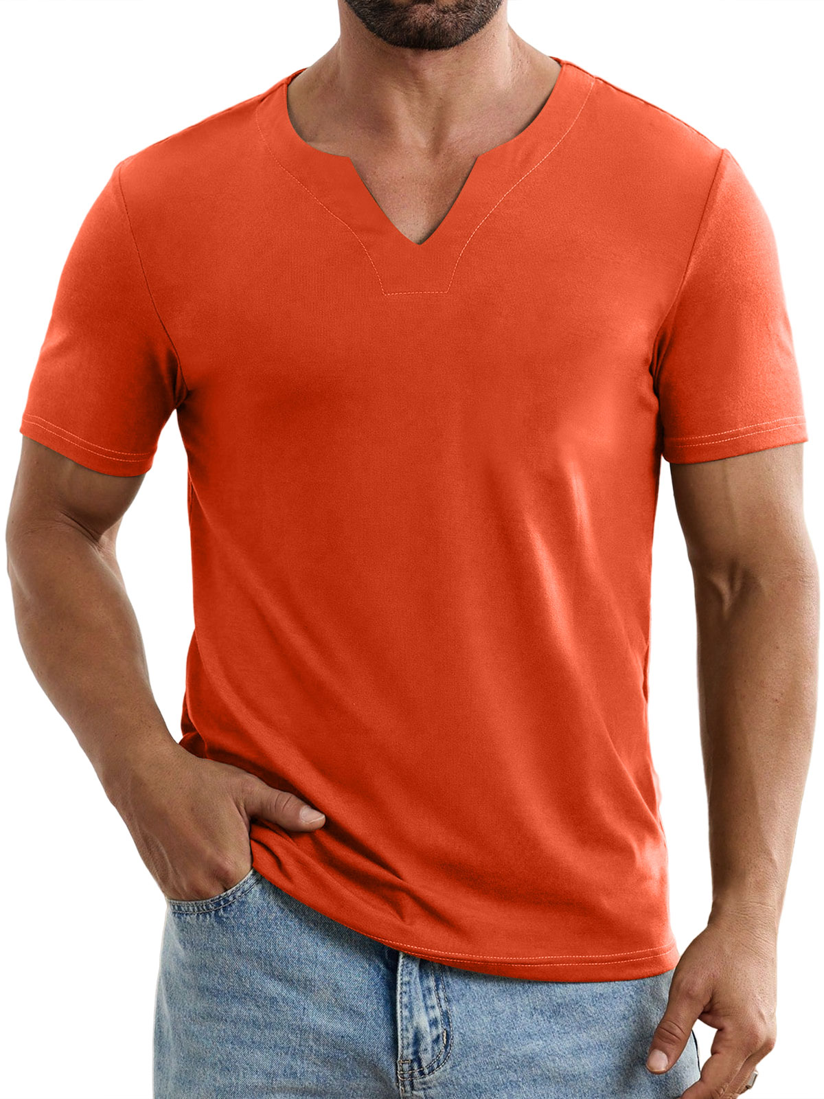 Men's Casual V-neck Solid Color Comfortable Short-sleeved T-shirt