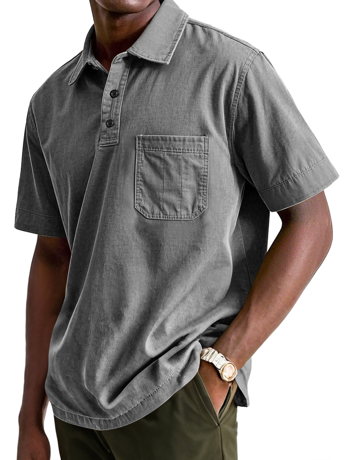 Men's Casual Workwear Pocket Lapel Short-sleeved Polo Shirt