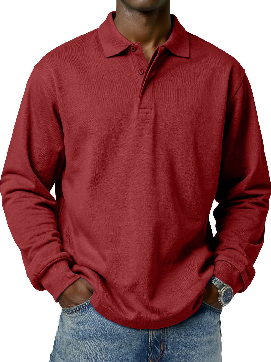 Men's Comfortable and Simple Double-Layer Collar Casual Long-Sleeve Polo Shirt