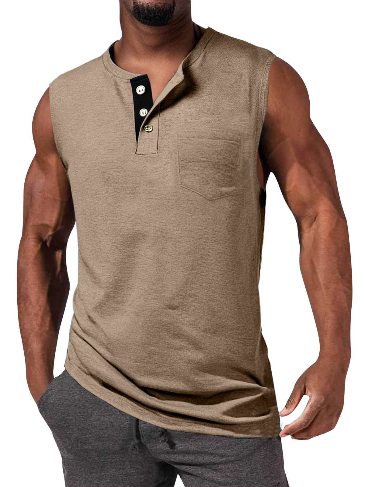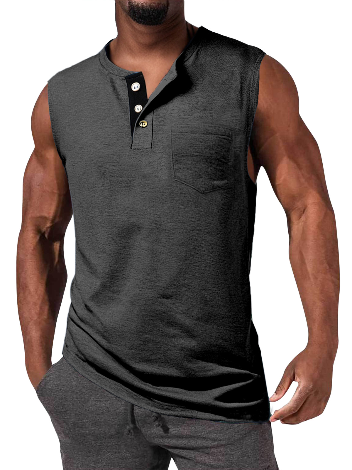 Men's Comfortable Solid Color Loose Buttoned Sleeveless Henley Shirt