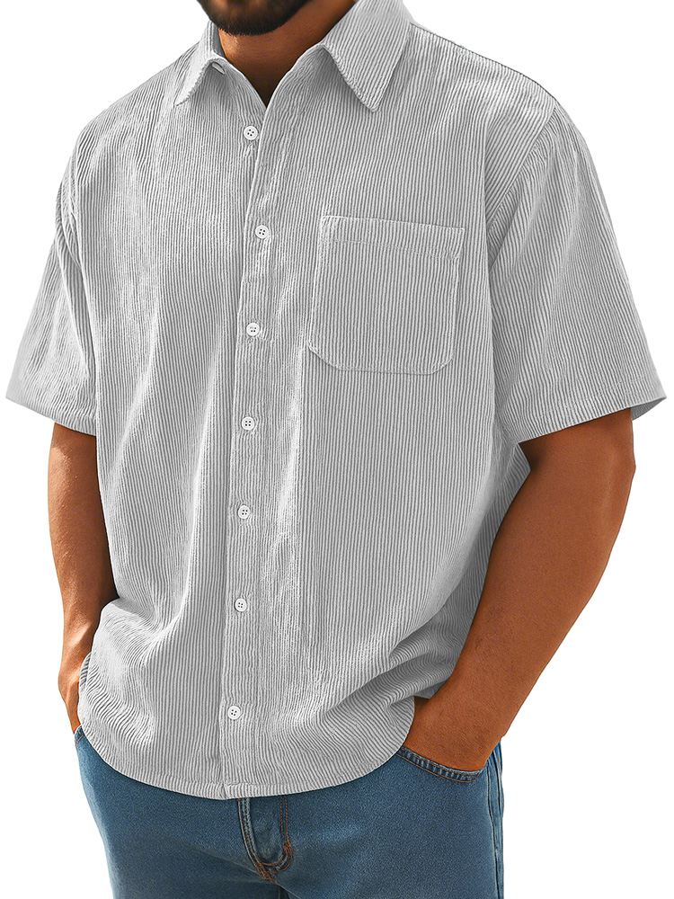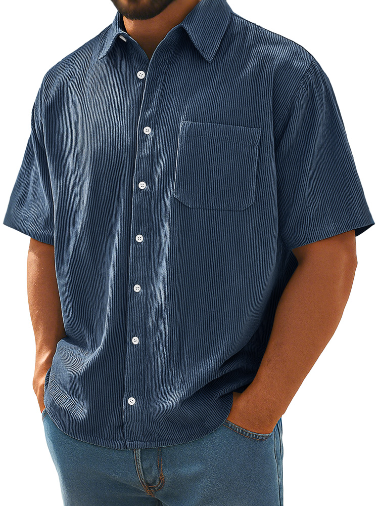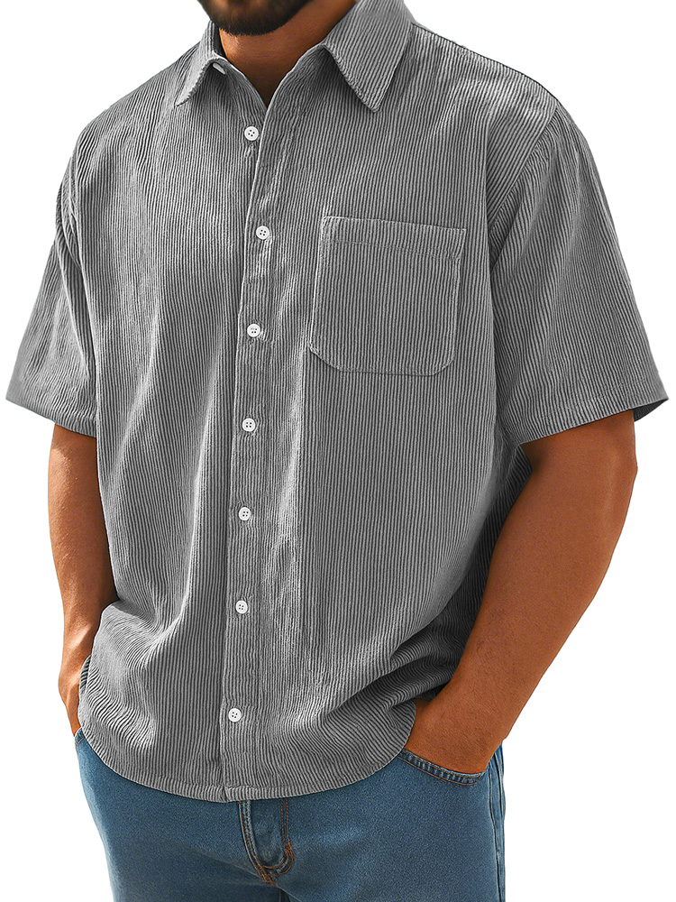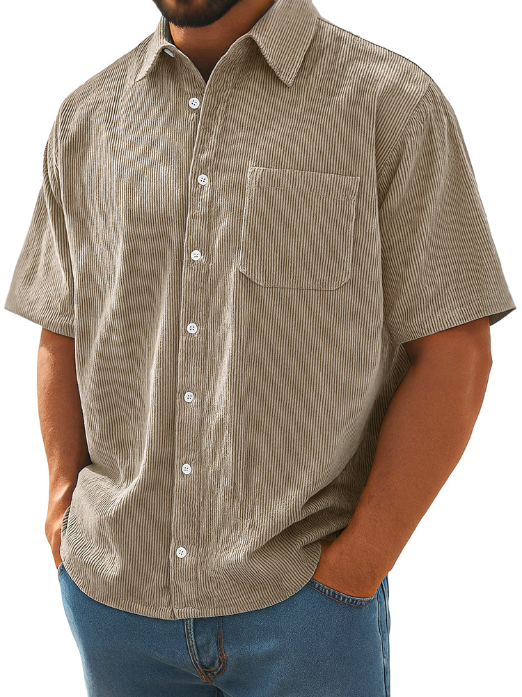 Men's Daily Corduroy Pocket Loose Casual Short Sleeve Shirt