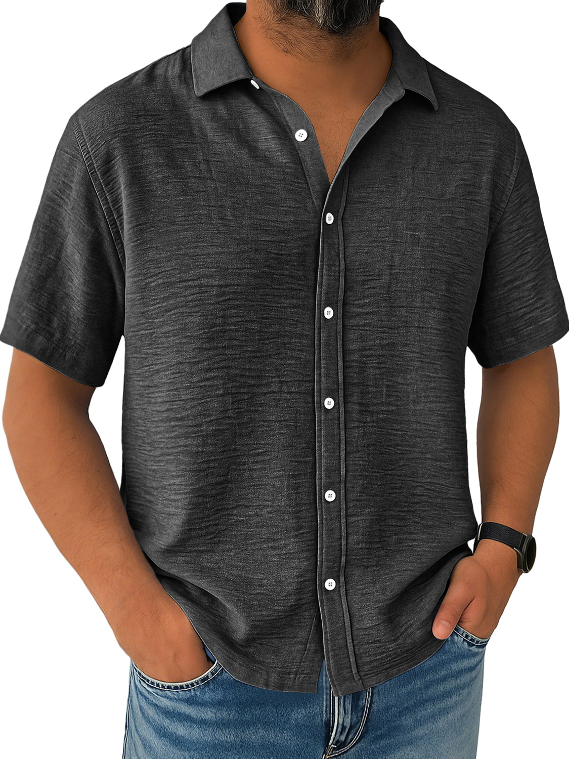 Men's Daily Loose Casual Breathable Solid Color Button Long Sleeve Shirt