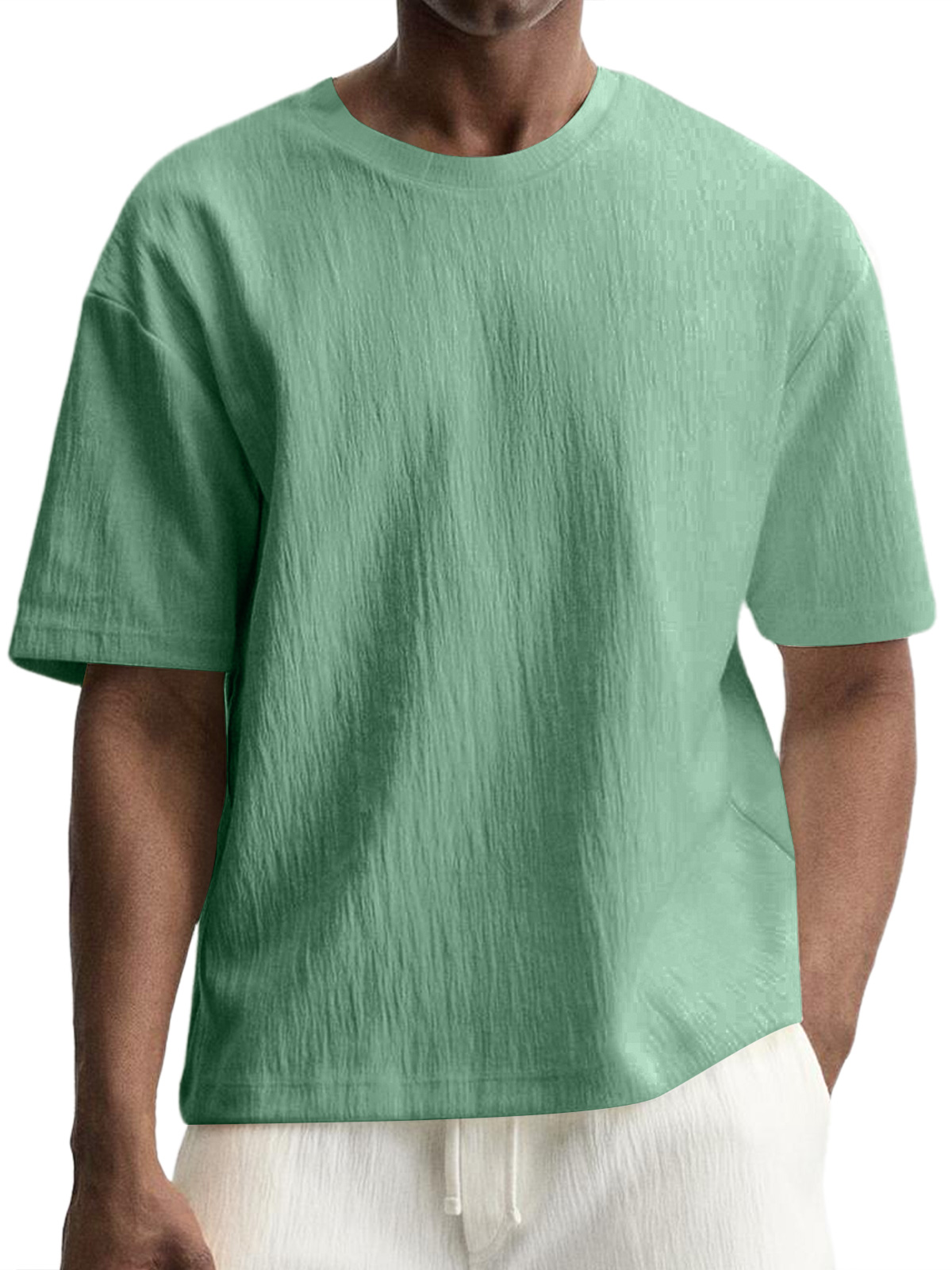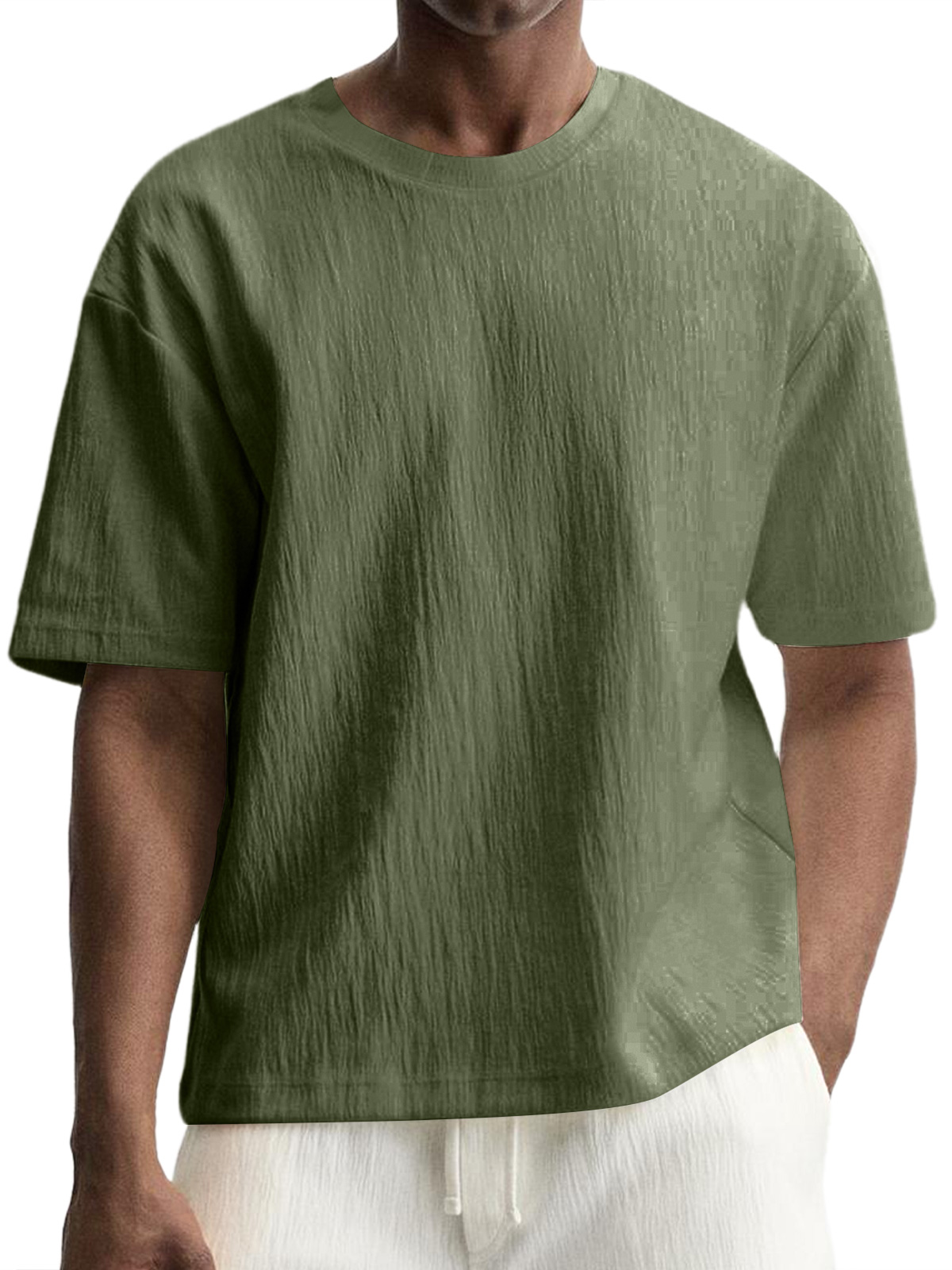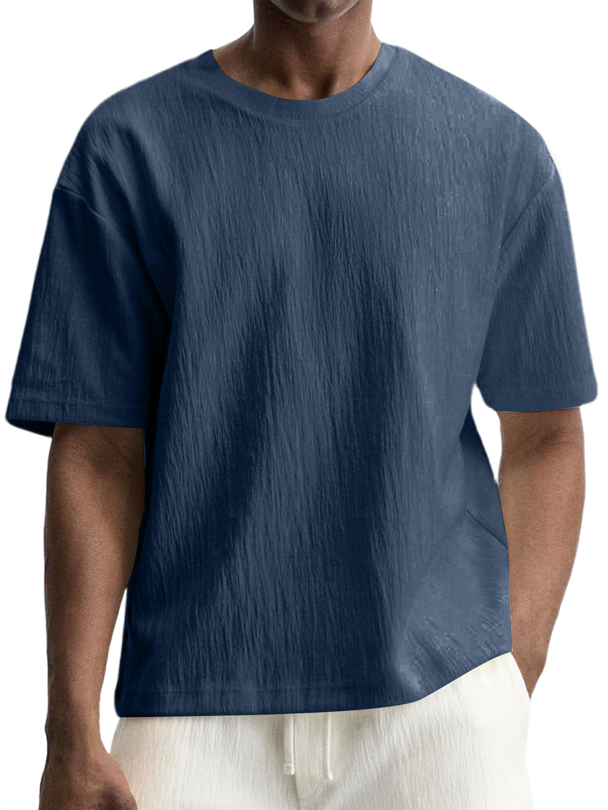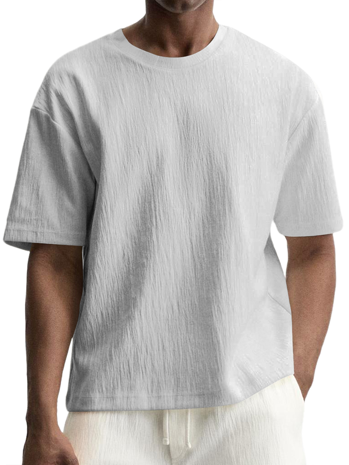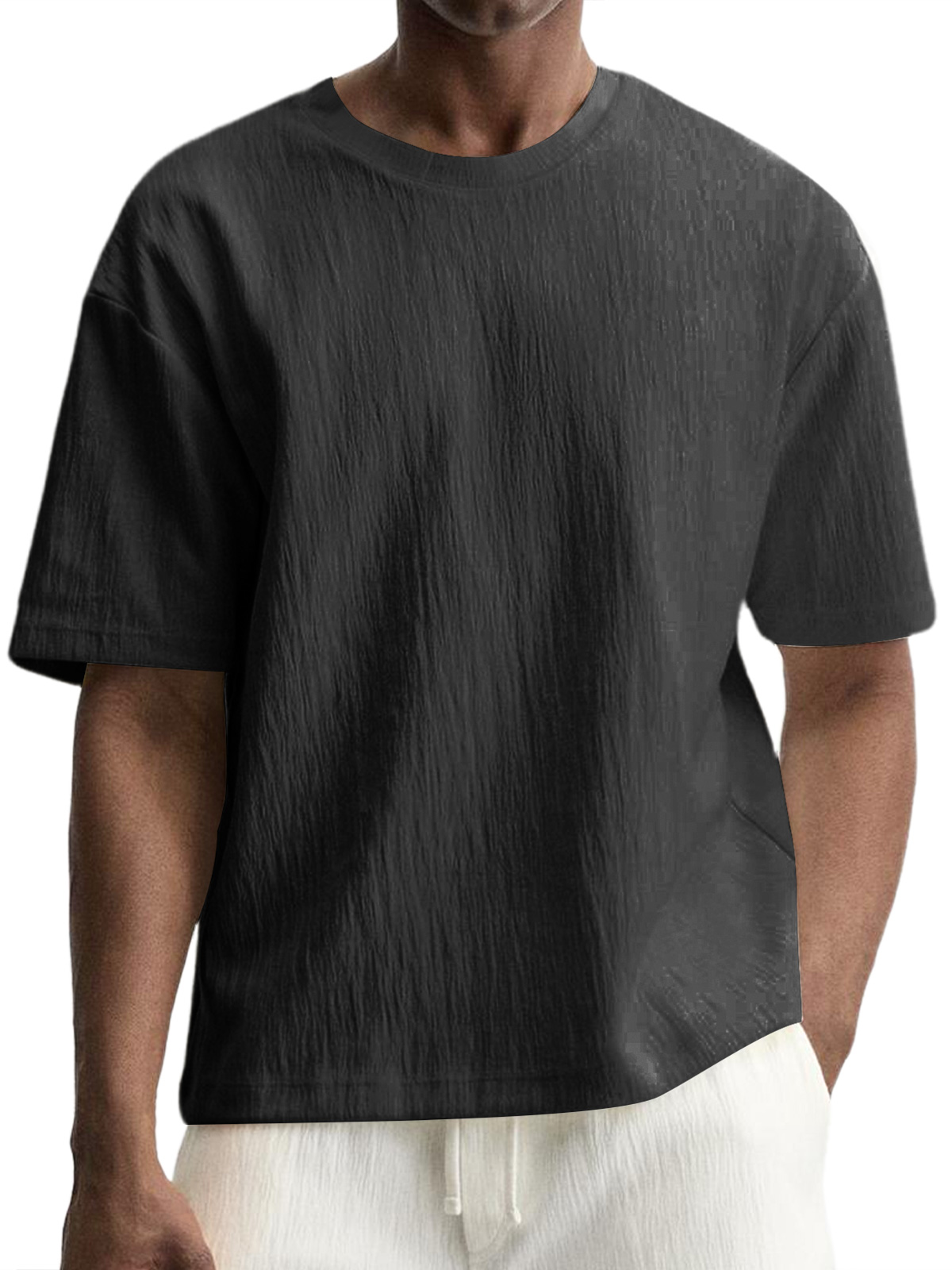 Men's Daily Round Neck Pleated Texture Casual Short-sleeved T-shirt