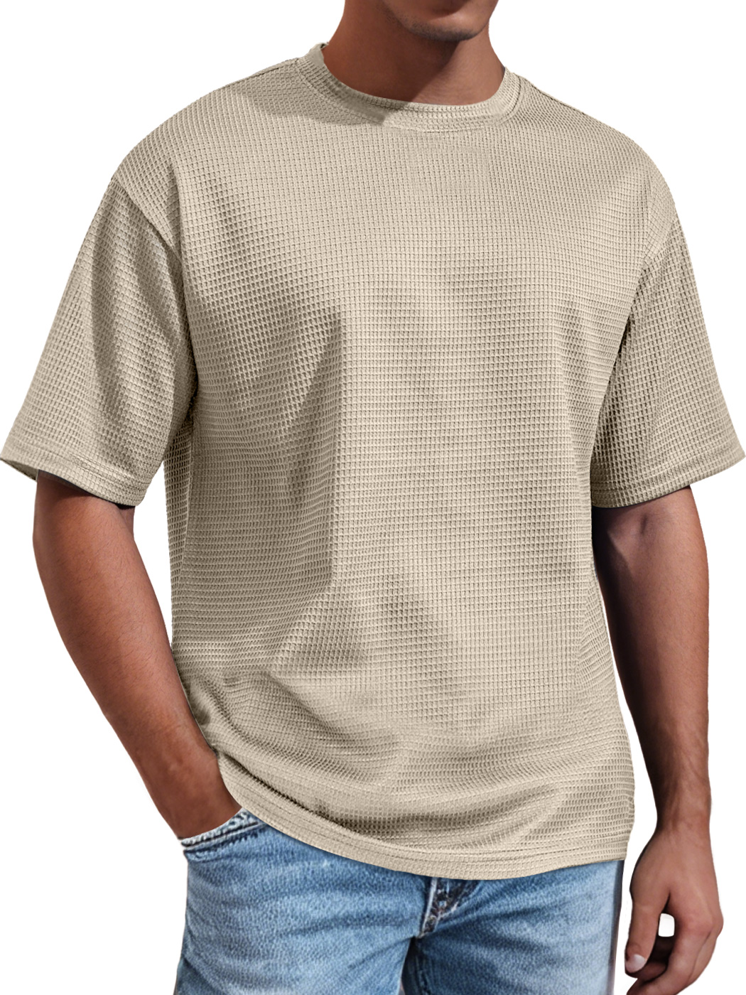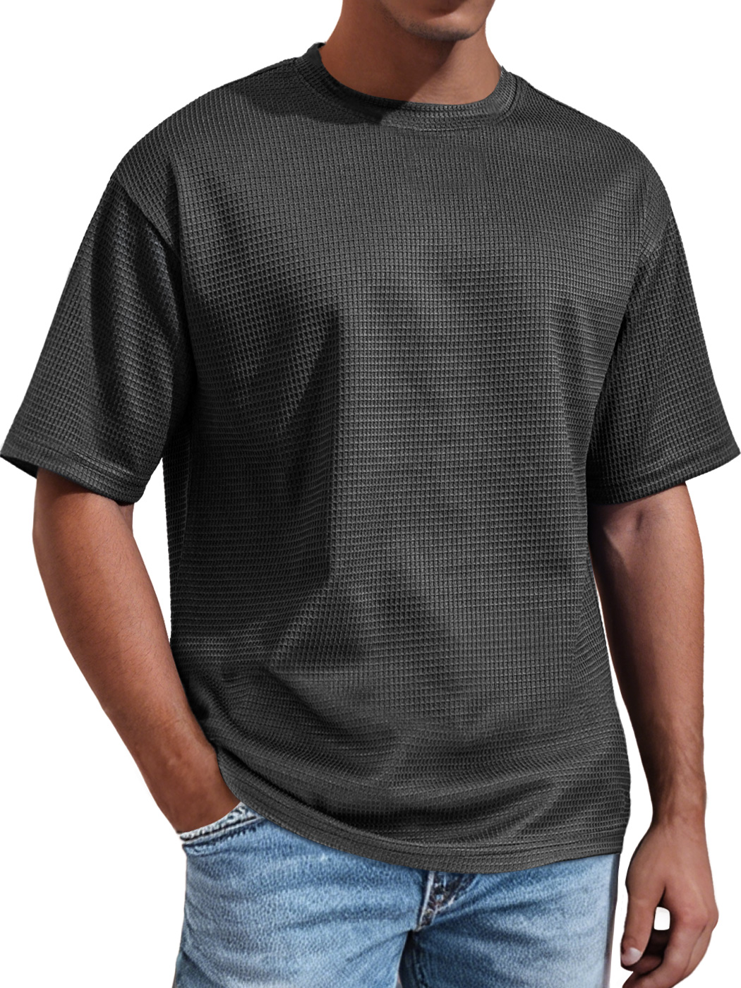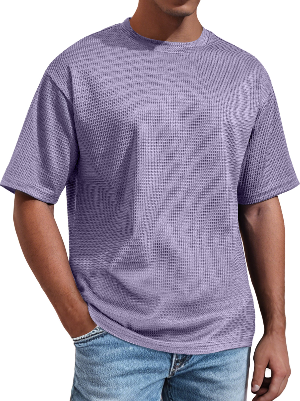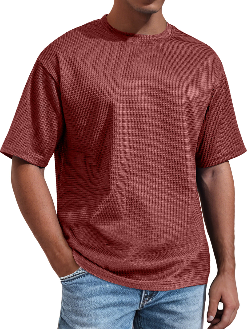 Men's Daily Round Neck Waffle Casual Solid Color Comfortable Short Sleeve T-shirt