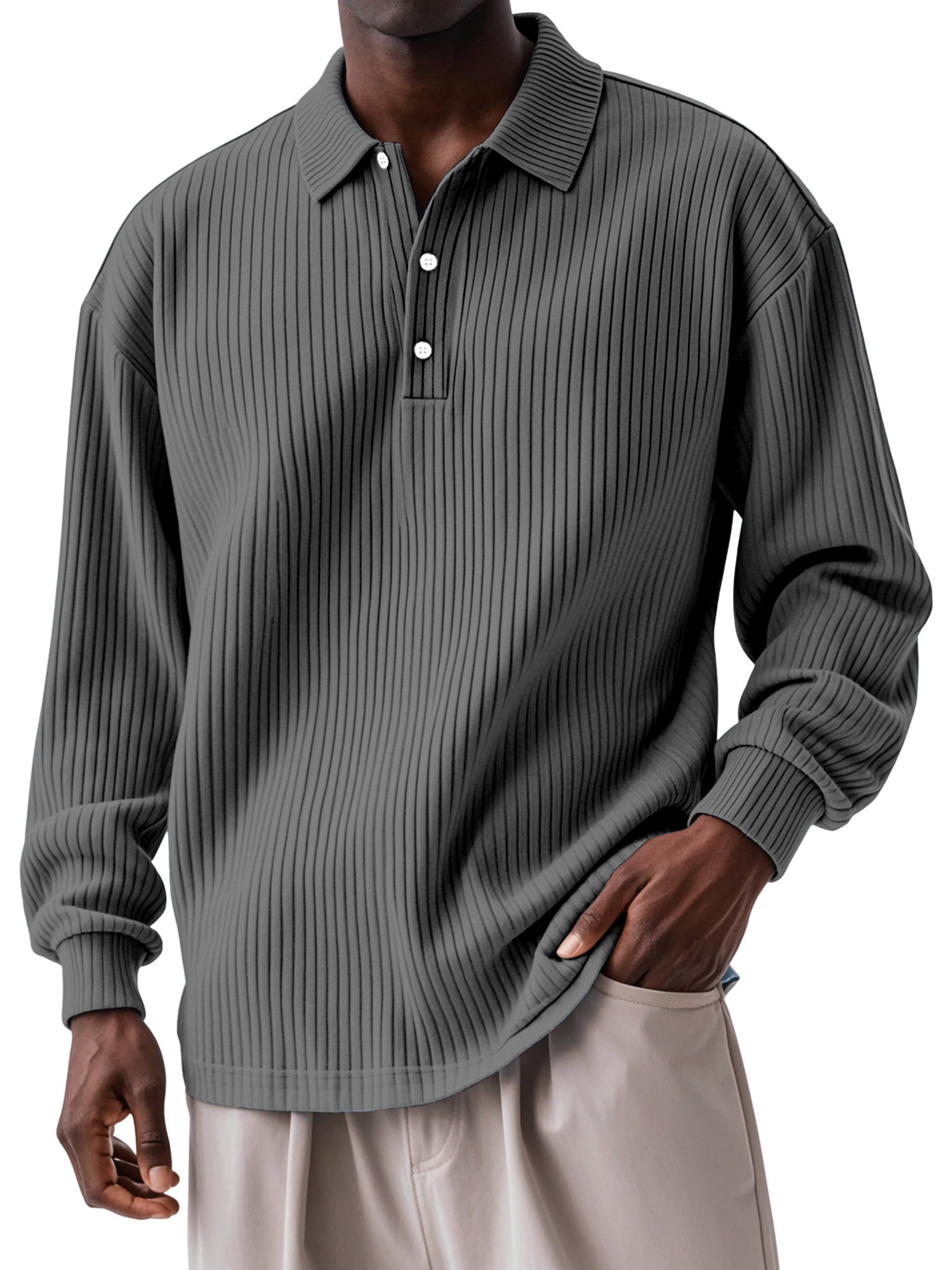 Men's Daily Solid Color Vertical Button Long Sleeve Polo Shirt