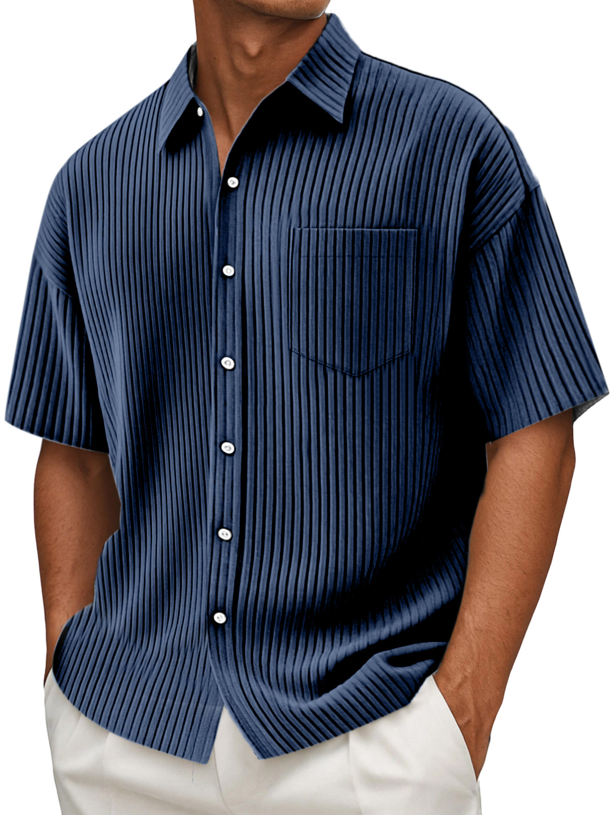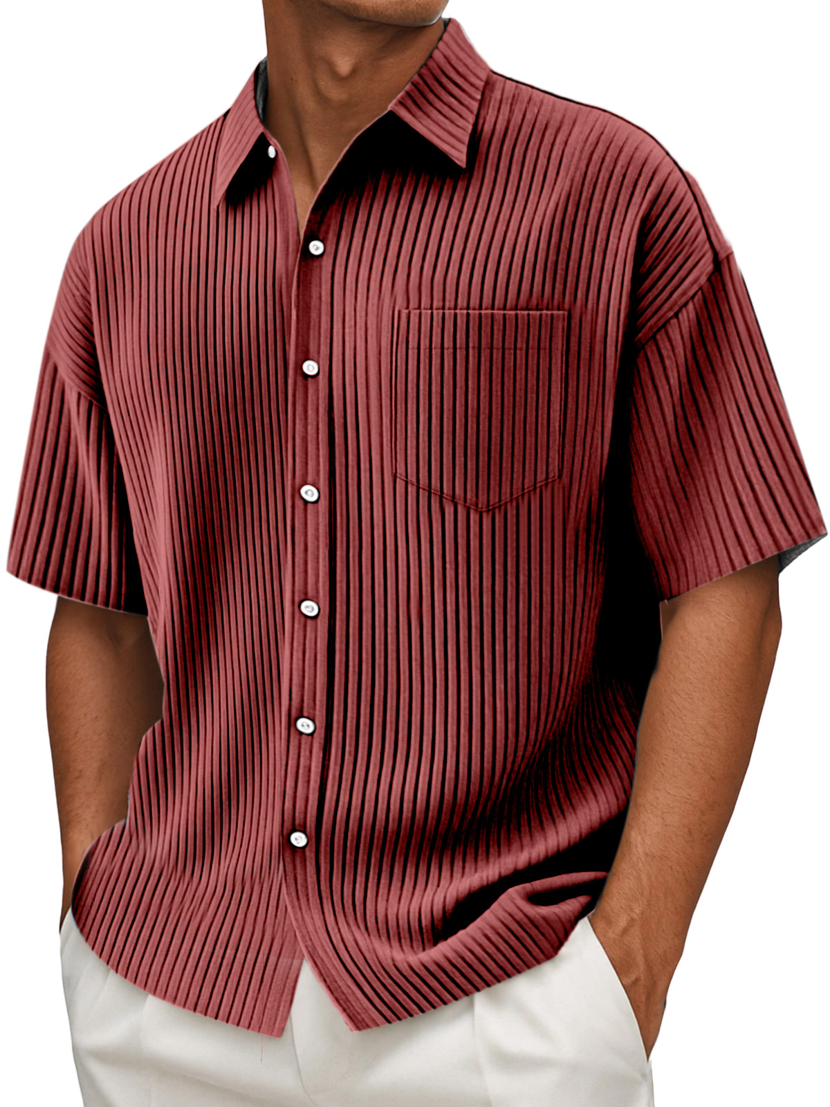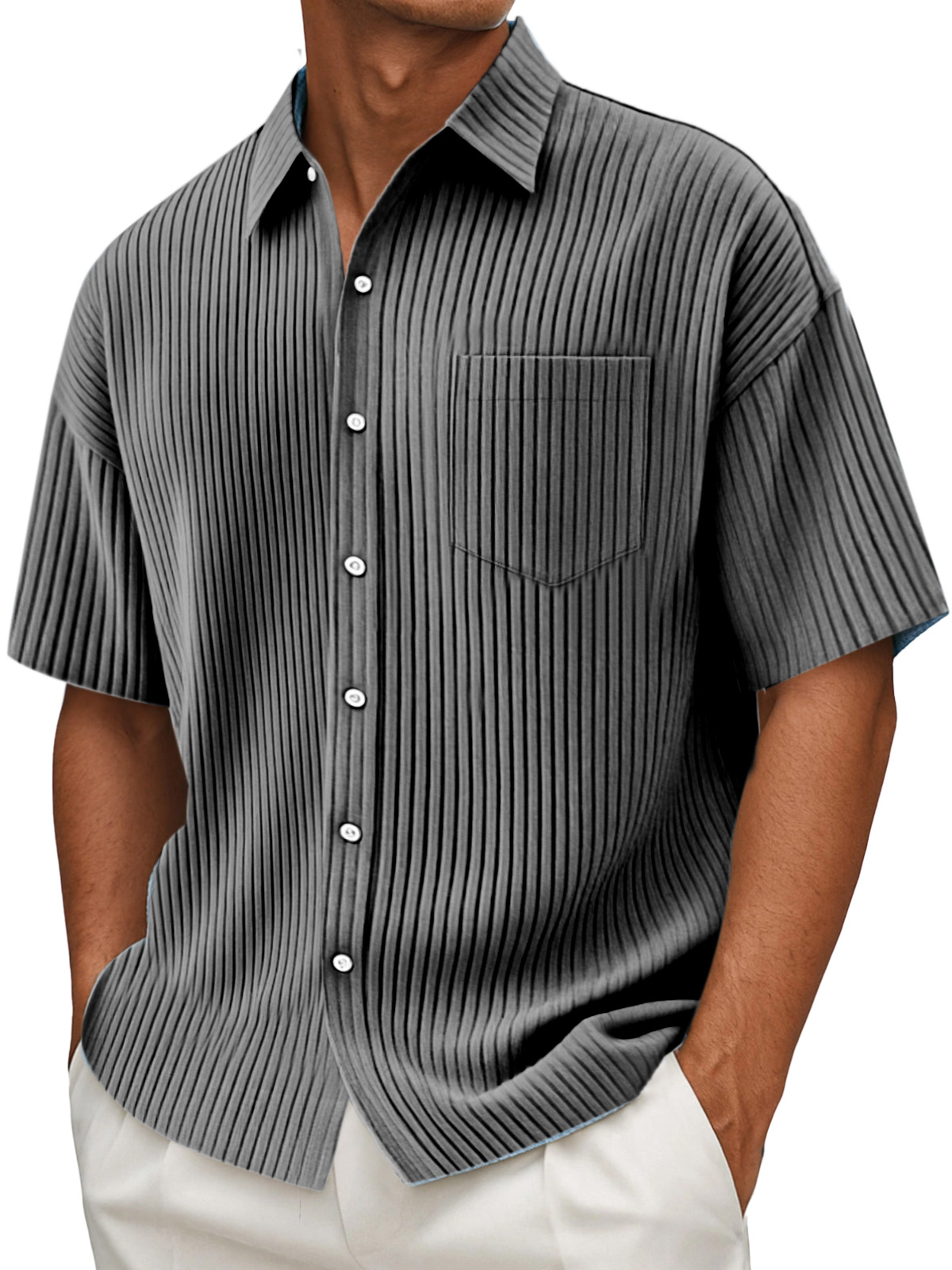 Men's Daily Solid Color Vertical Pit Design Short-sleeved Shirt