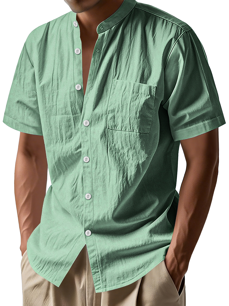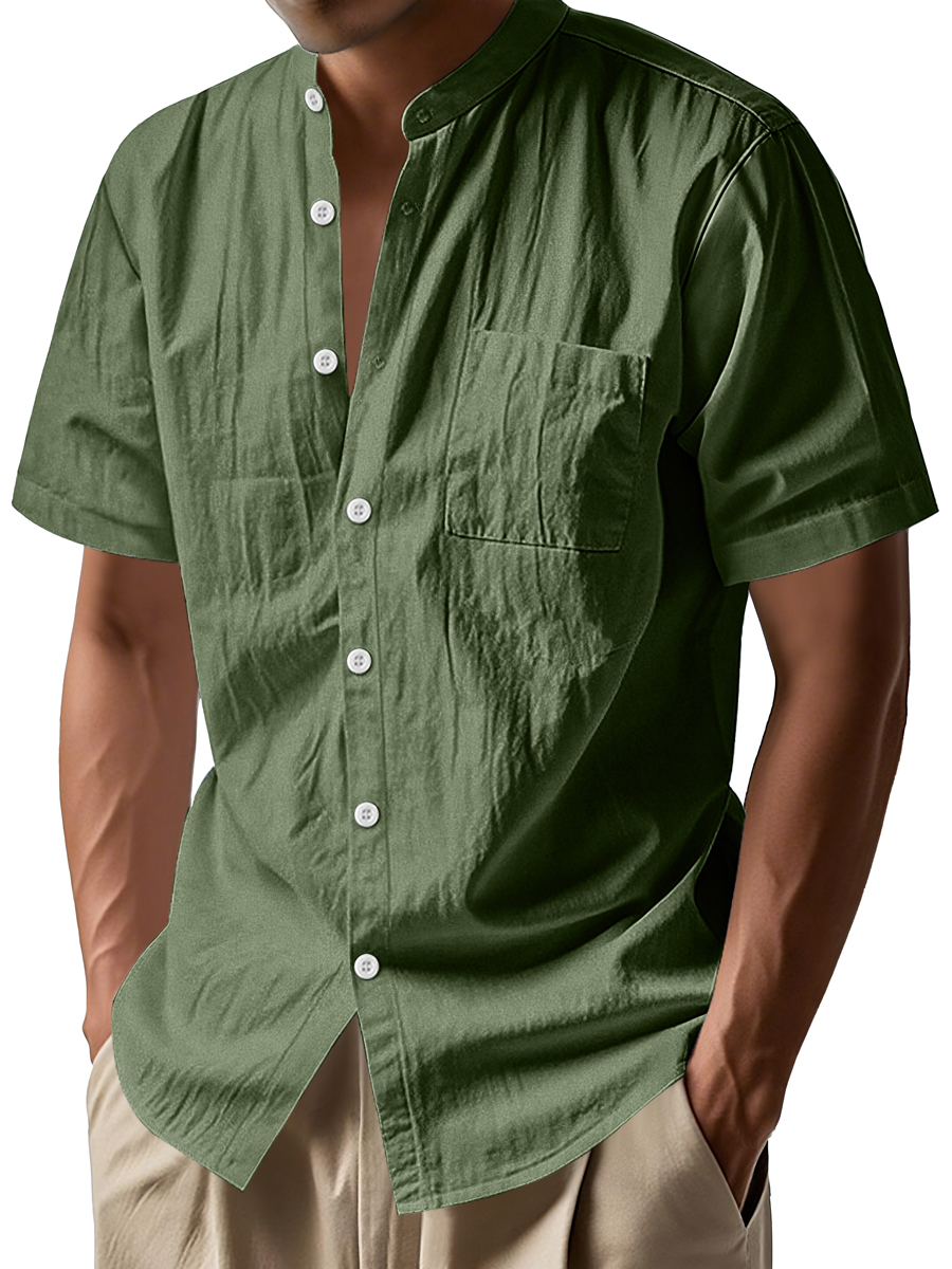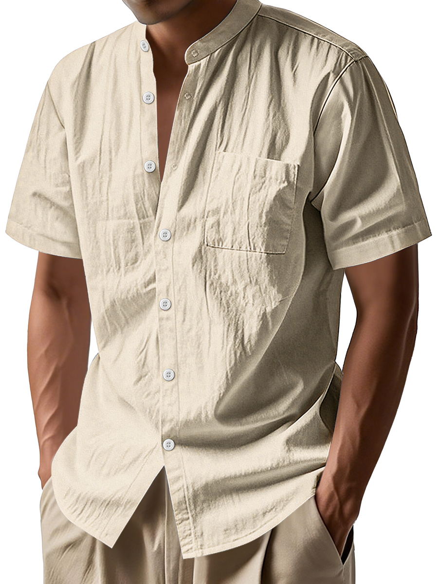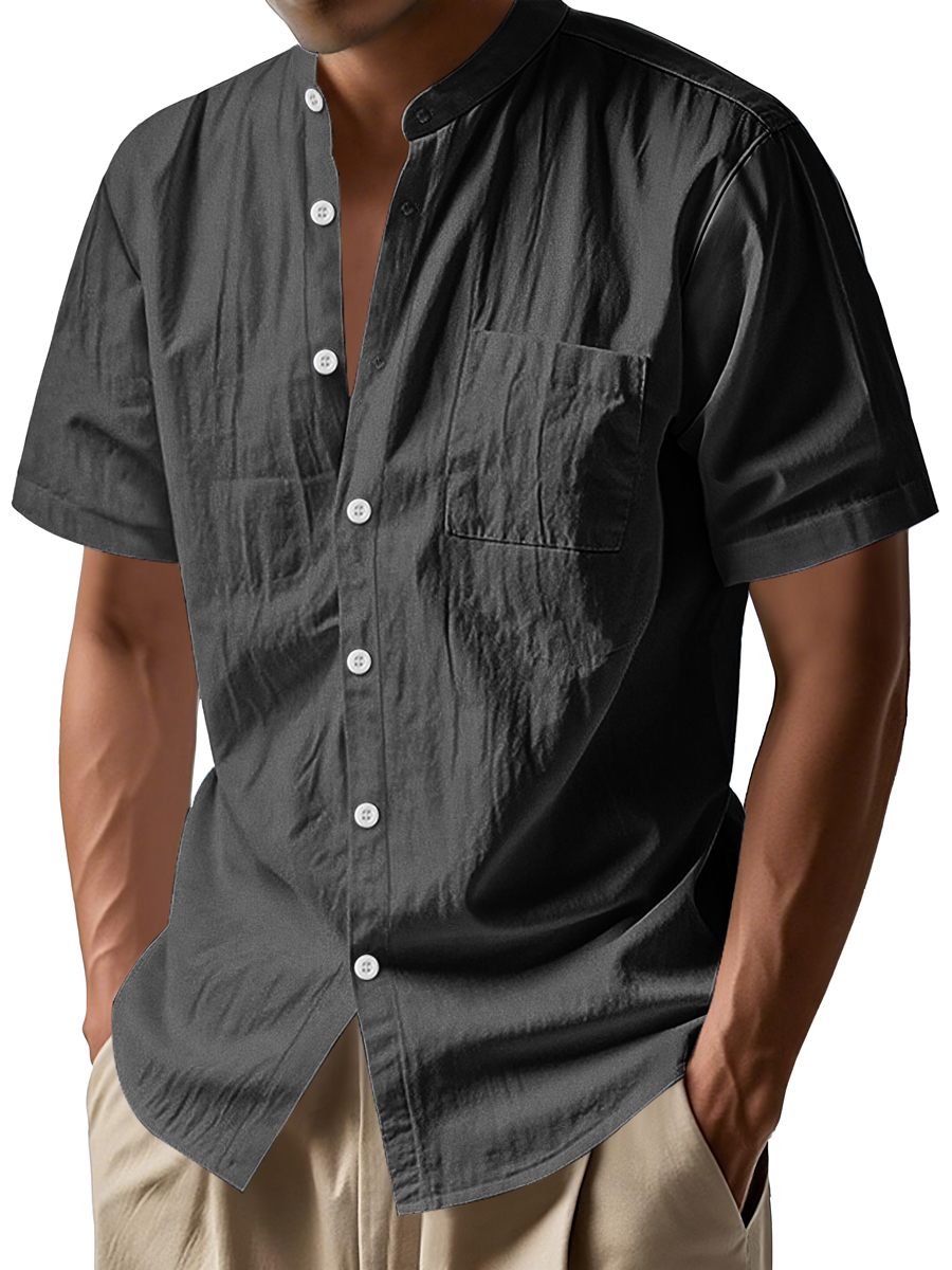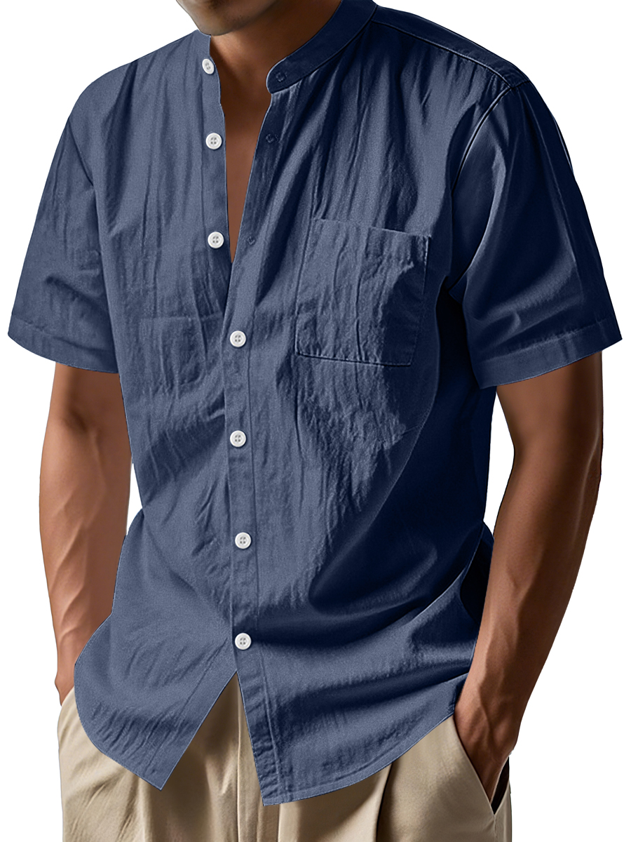 Men's Daily Stand-up Collar Casual Comfortable Short-sleeved Shirt