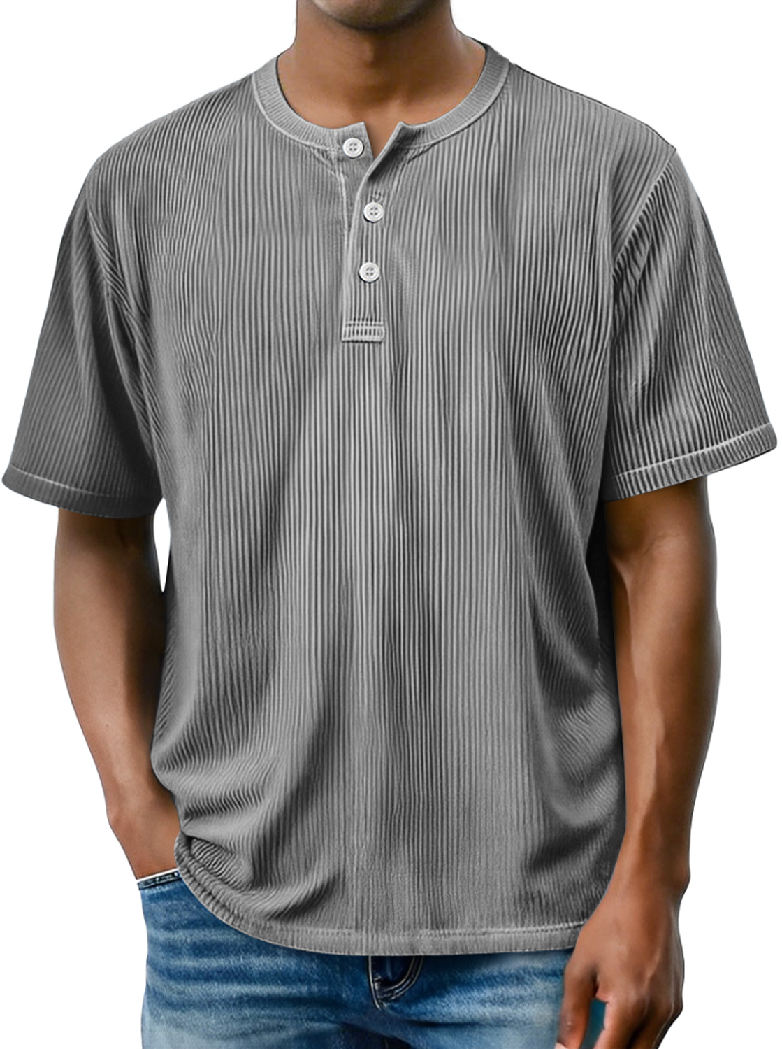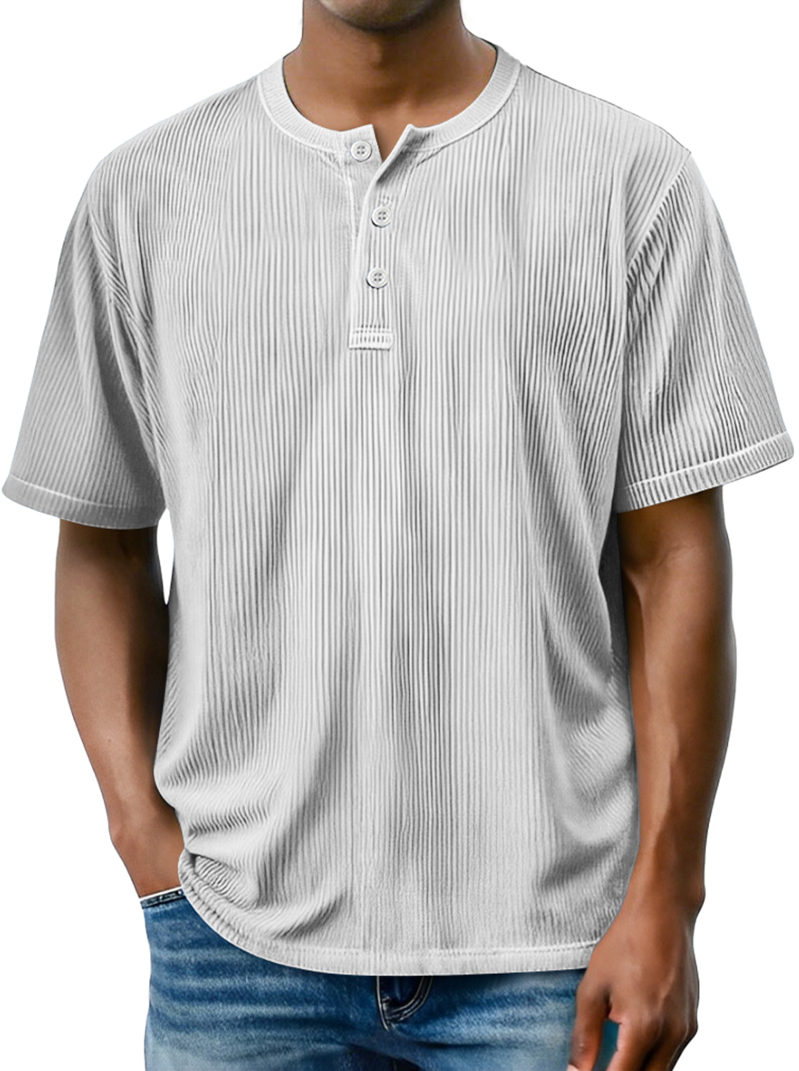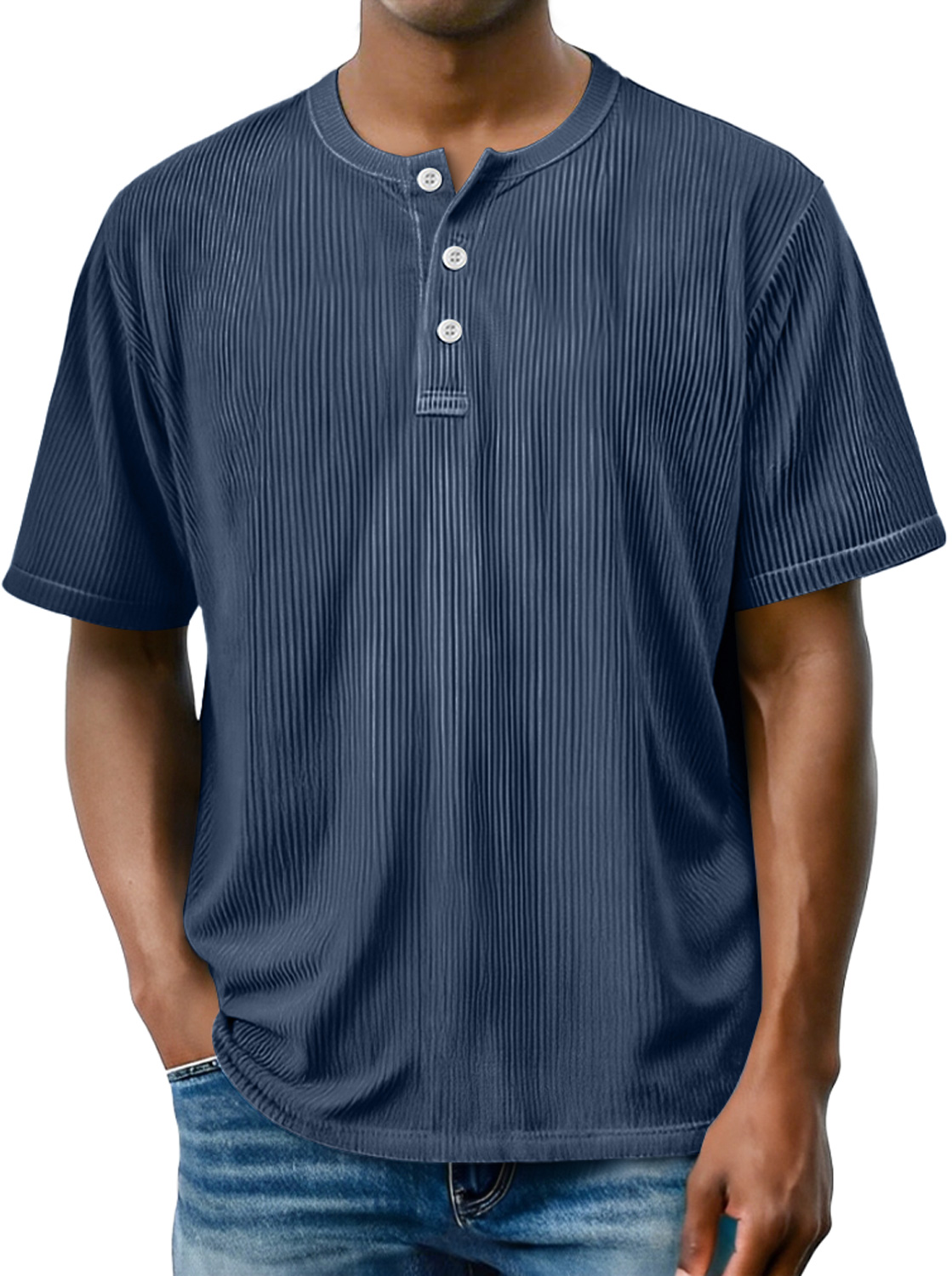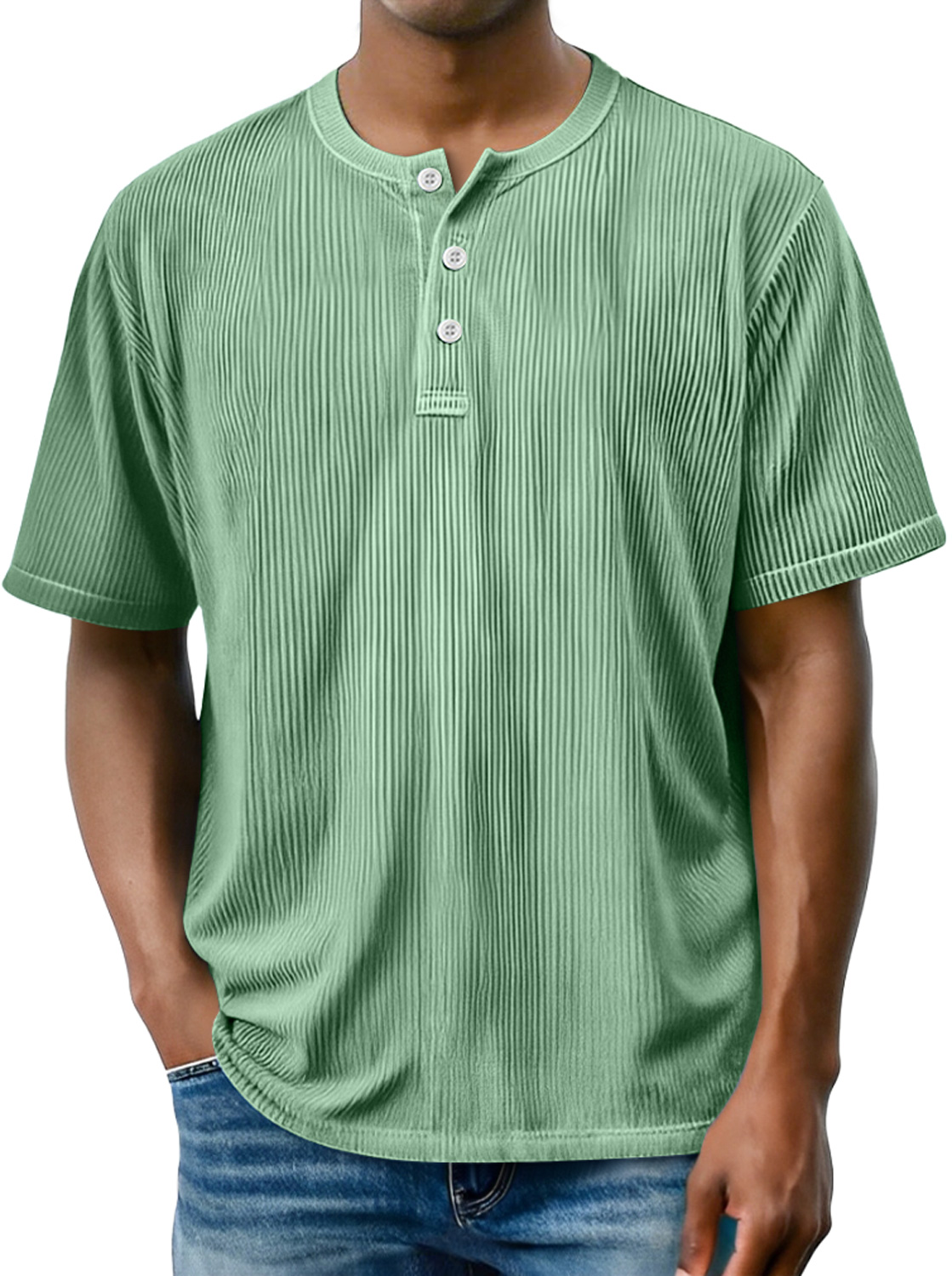 Men's Daily Striped Casual Comfort Short Sleeve Henley Shirt