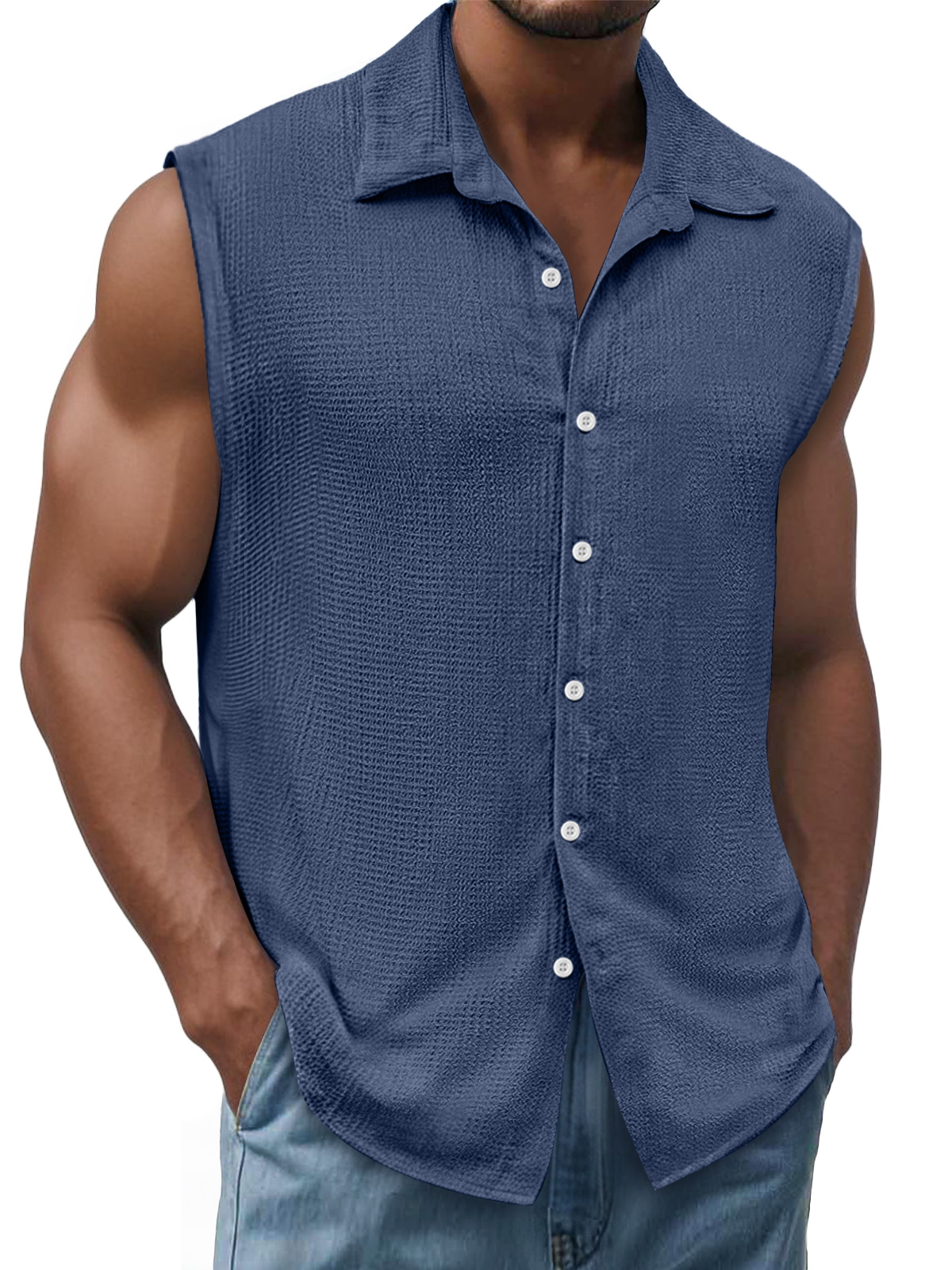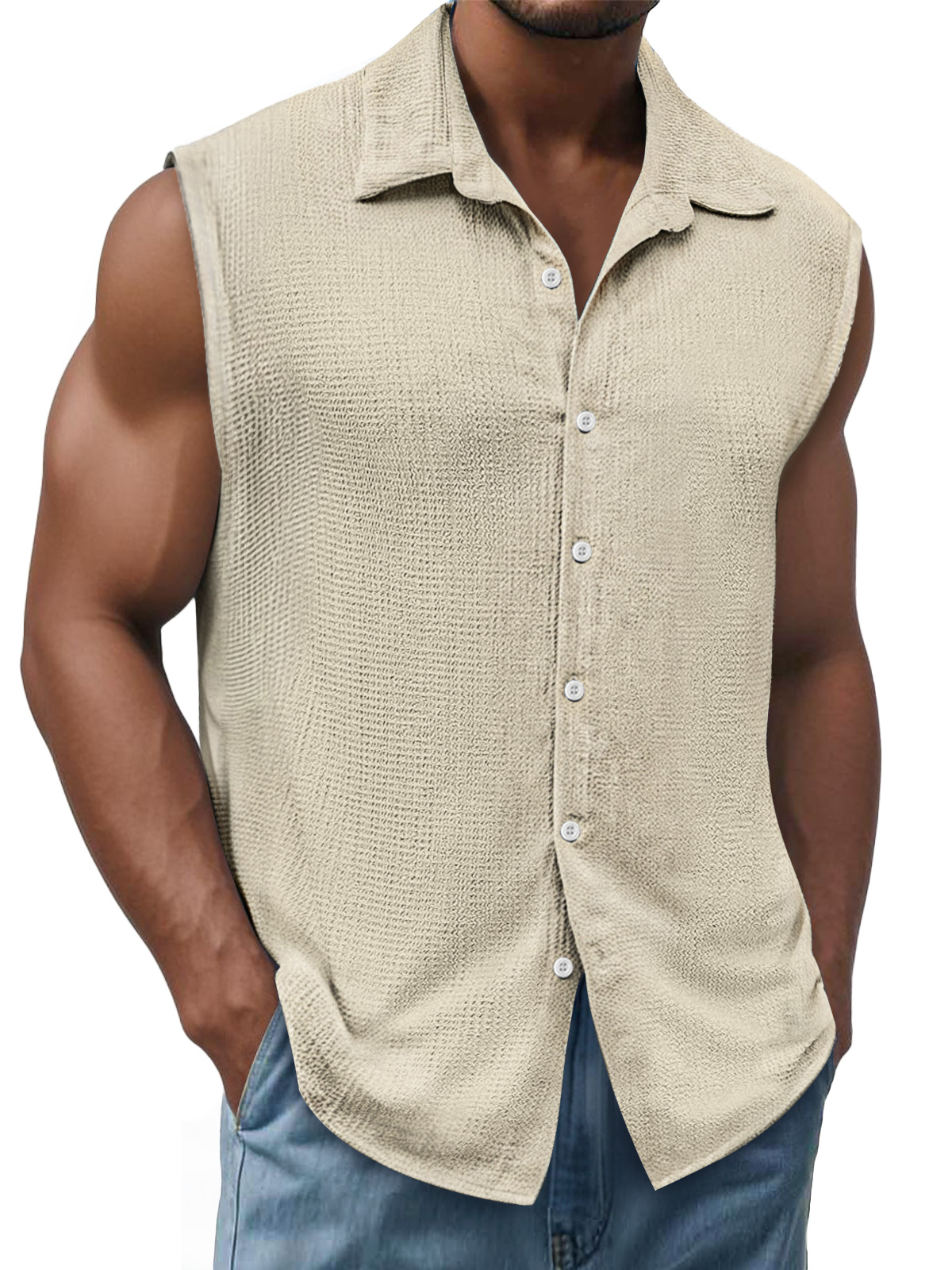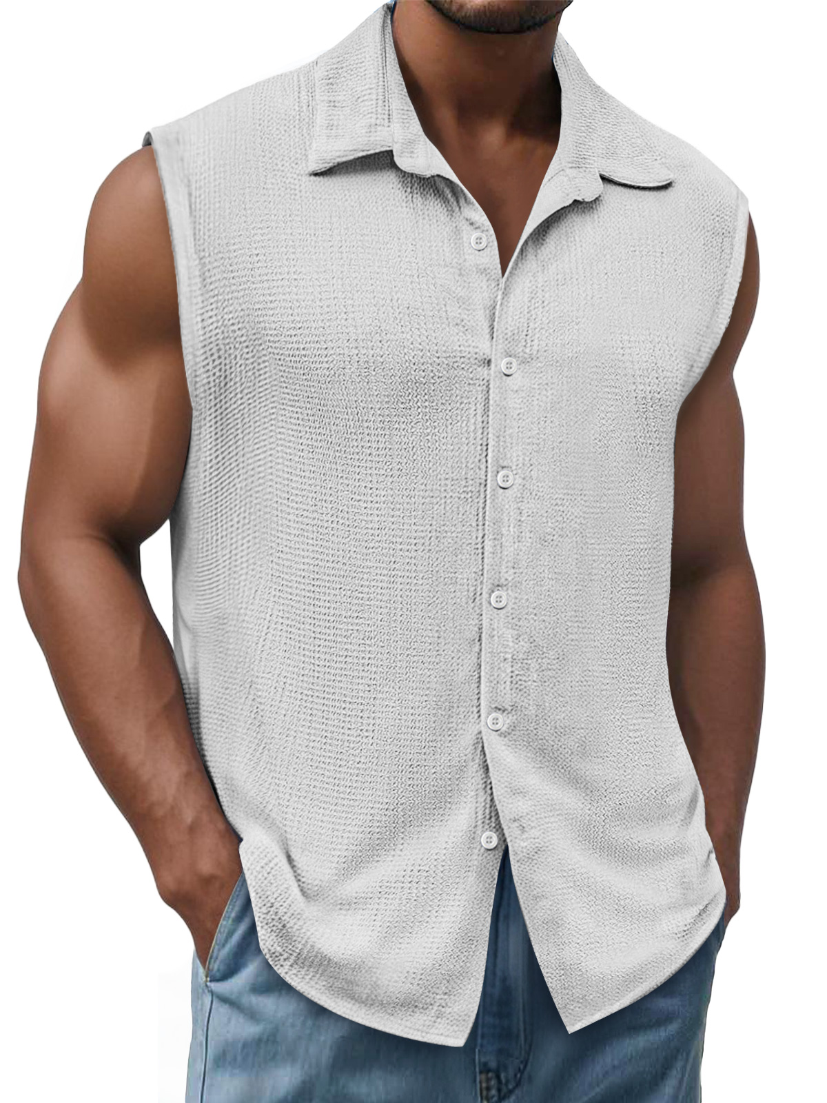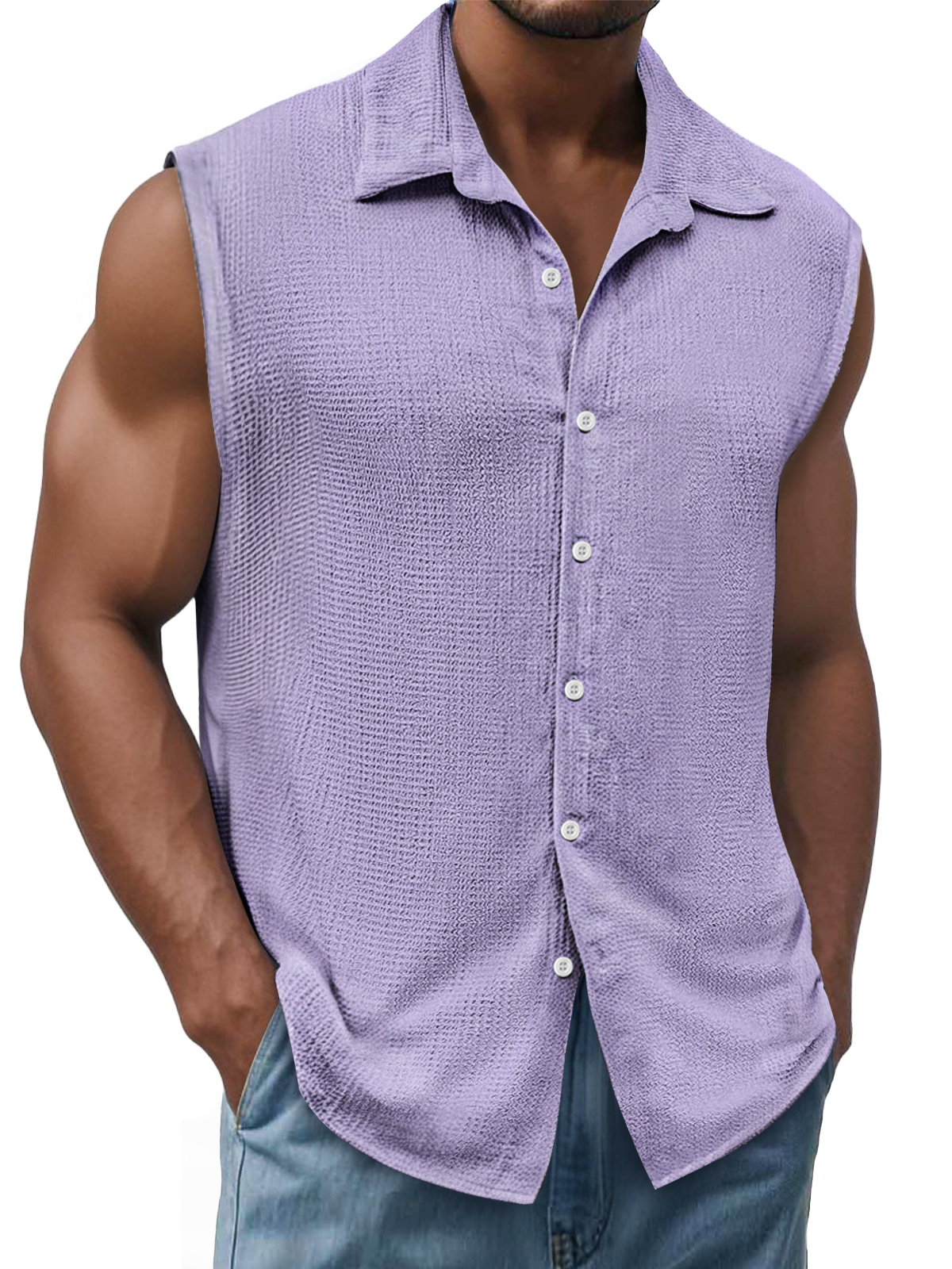 Men's Daily Texture Casual Lapel Solid Color Sleeveless Shirt