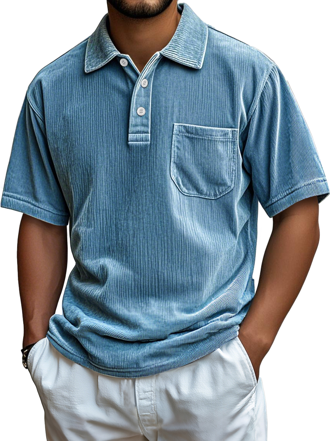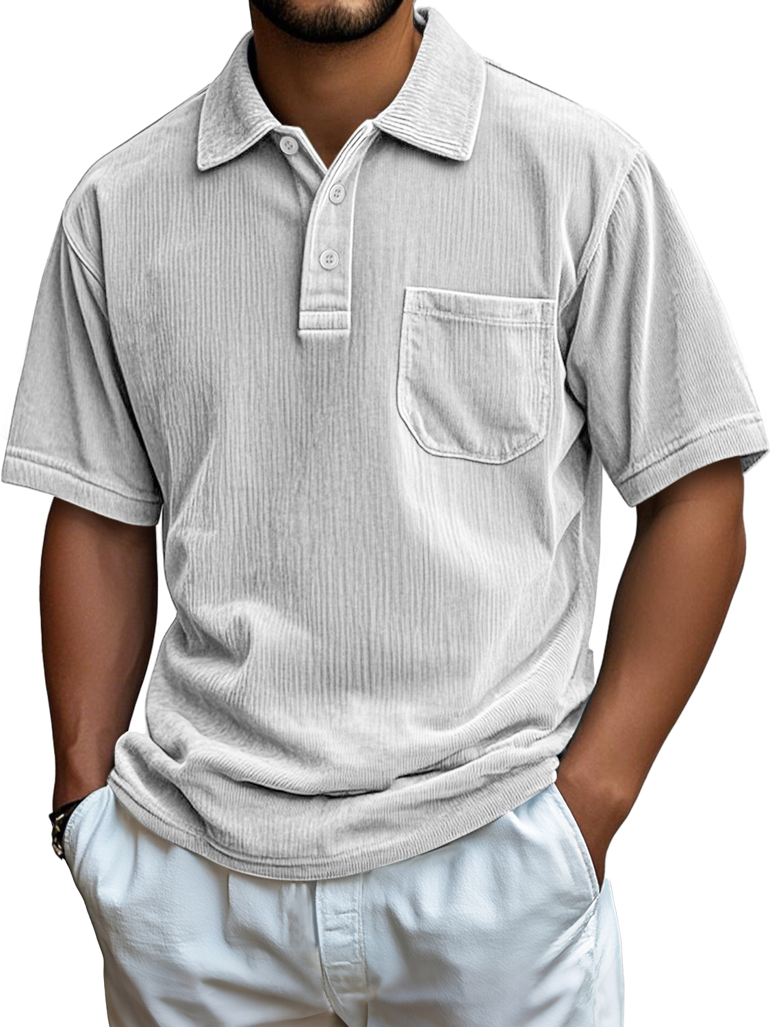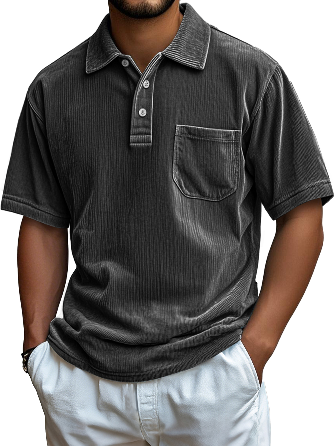 Men's Everyday Corduroy Pocket Casual Comfortable Short-sleeved Polo Shirt