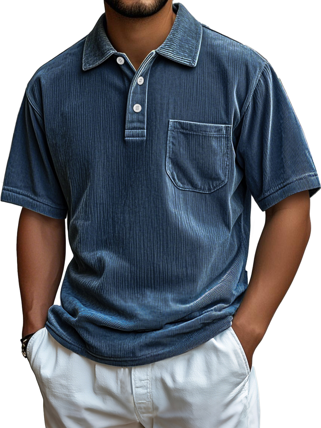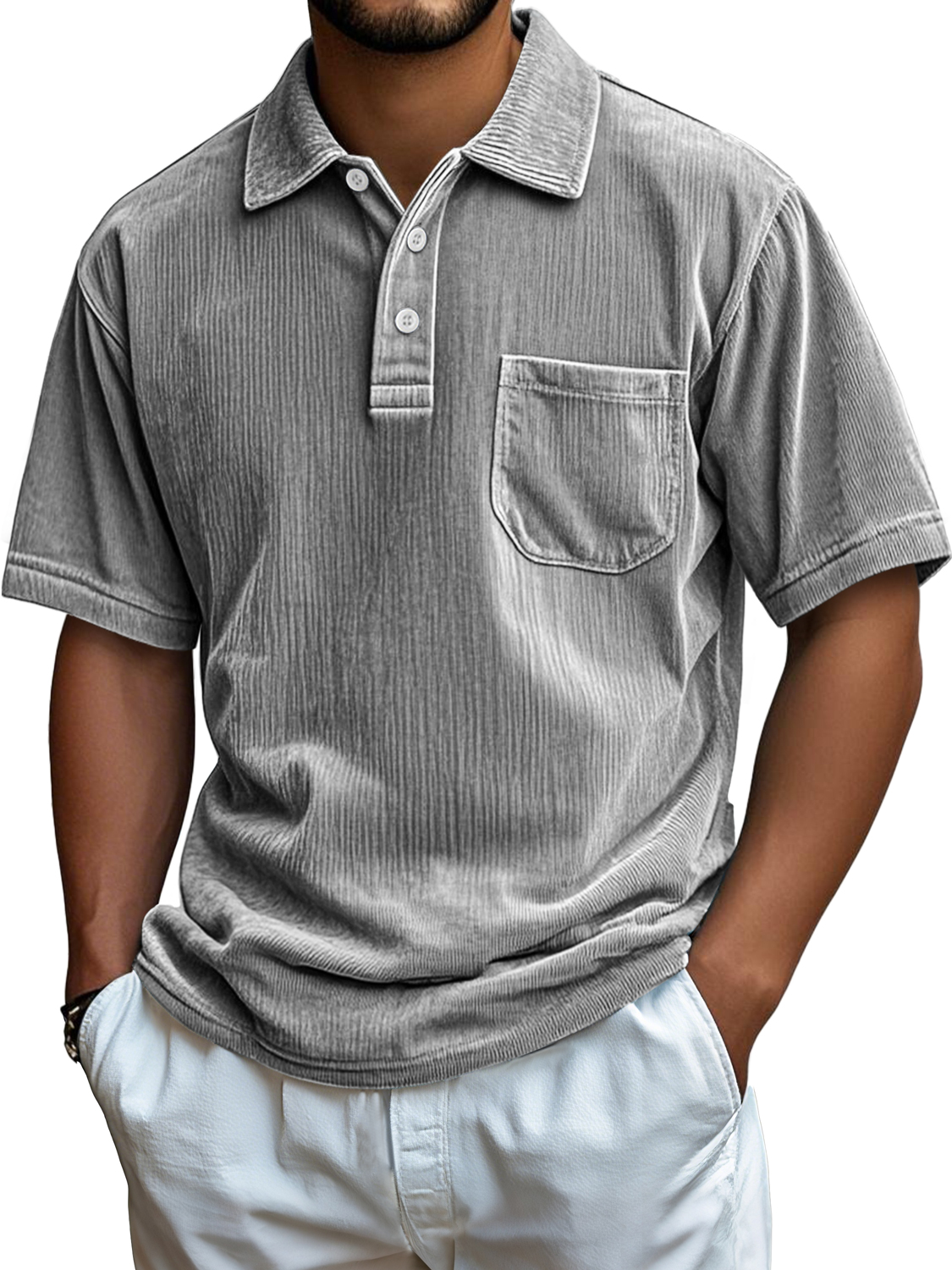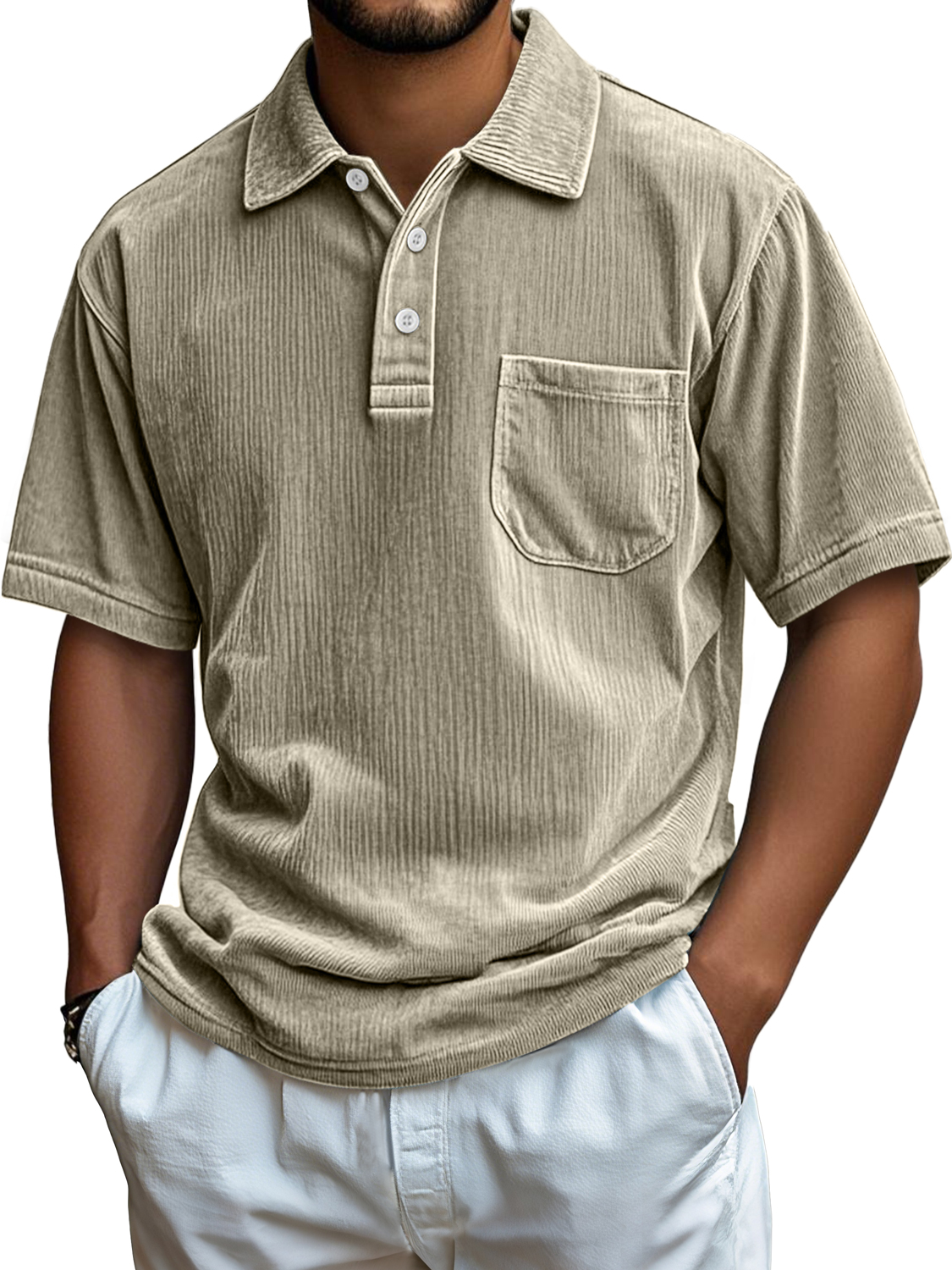 Men's Everyday Corduroy Pocket Casual Comfortable Short-sleeved Polo Shirt