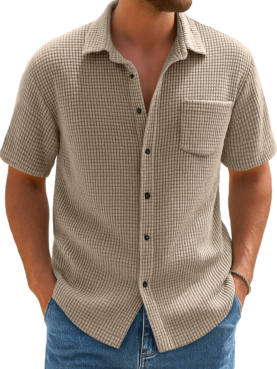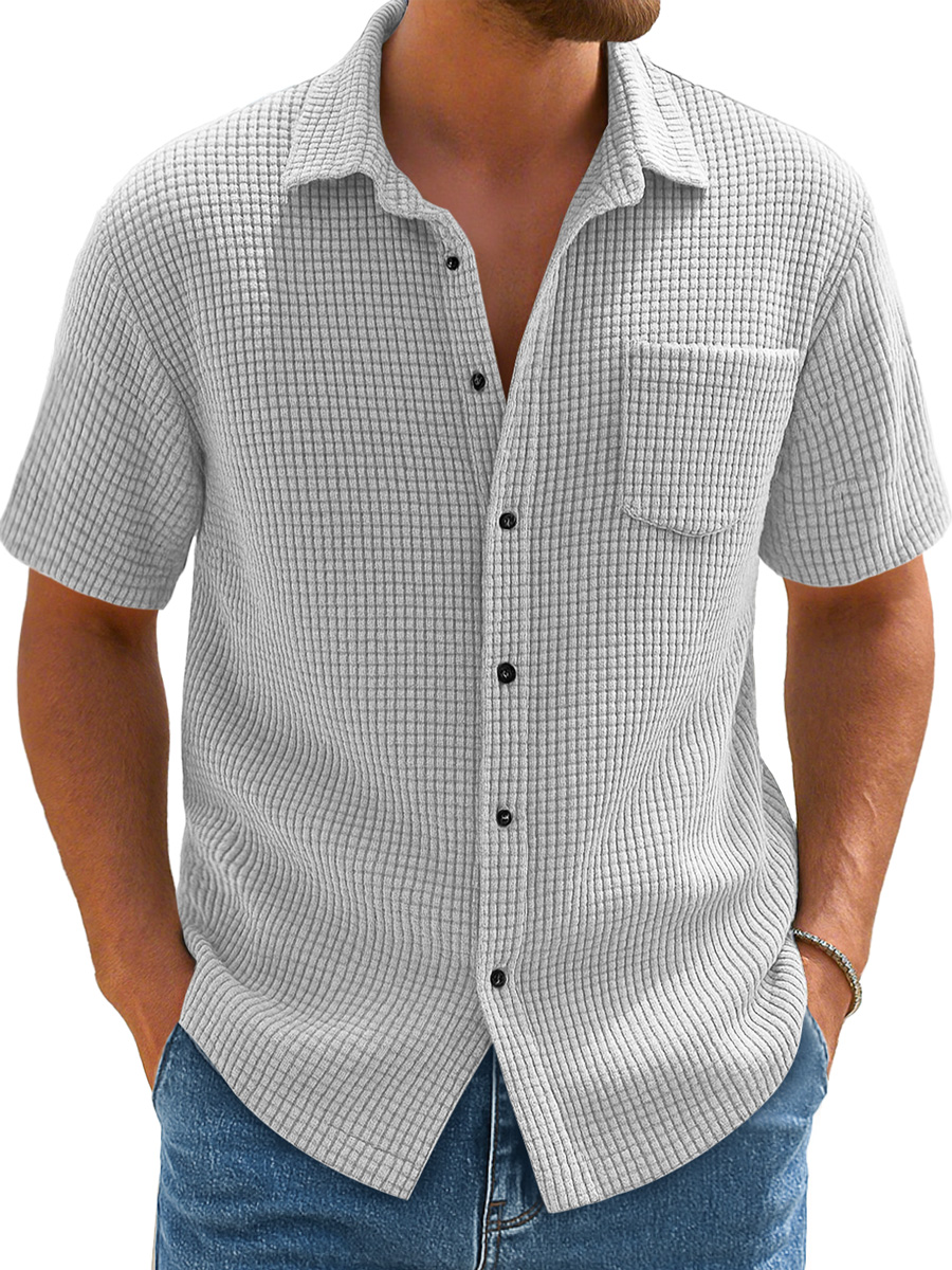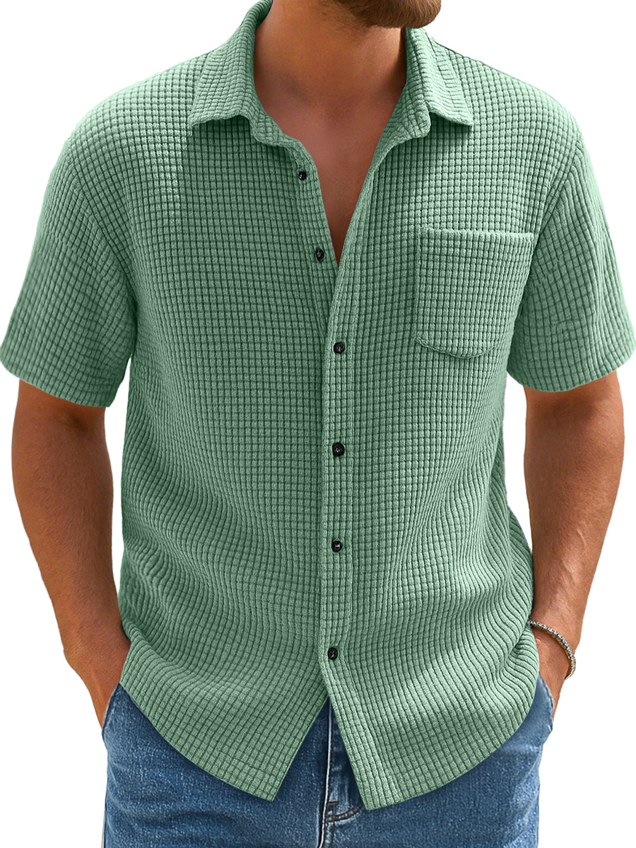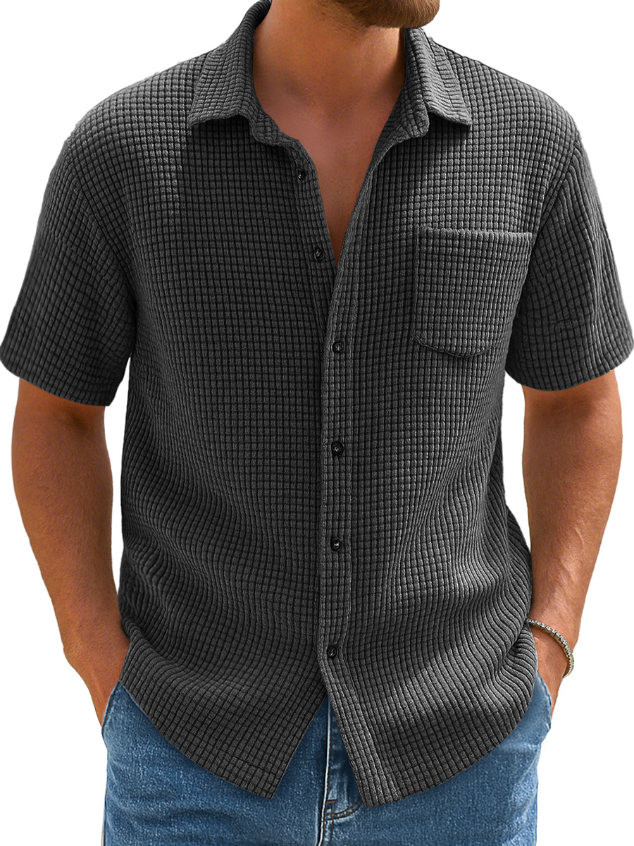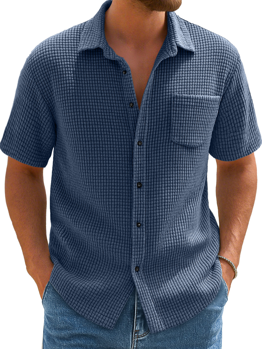 Men's Everyday Corduroy Waffle Casual Pocket Comfort Short Sleeve Shirt