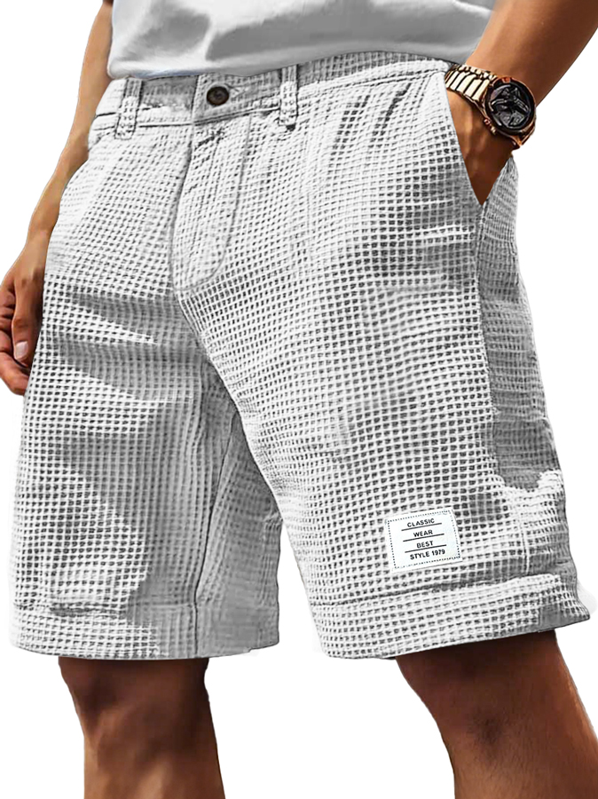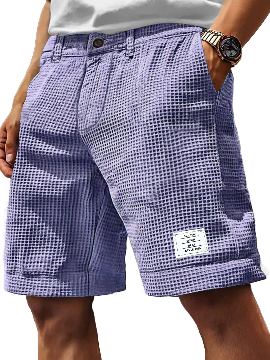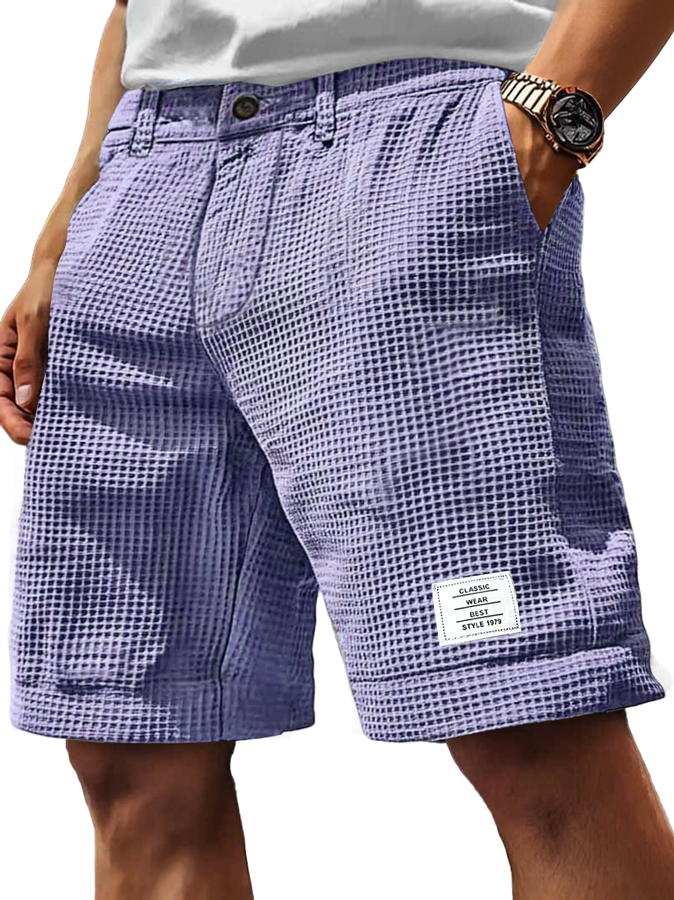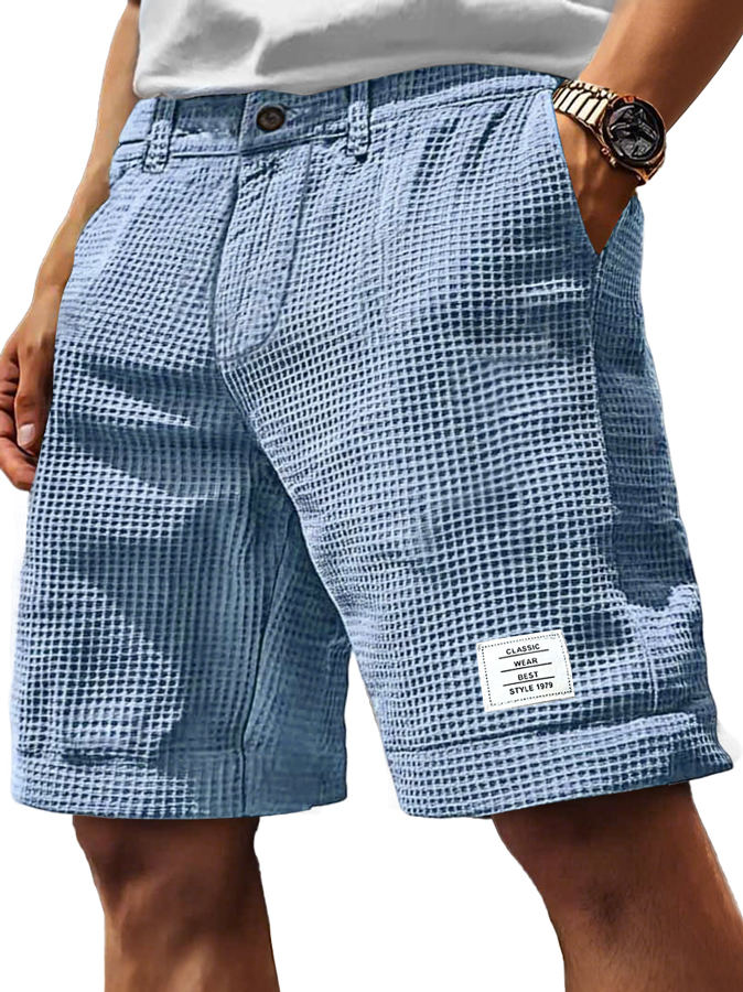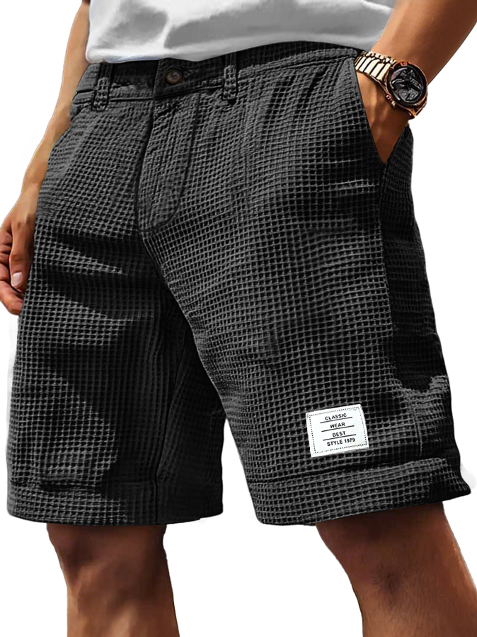 Men's Everyday Waffle Embroidered Logo Solid Comfort Shorts