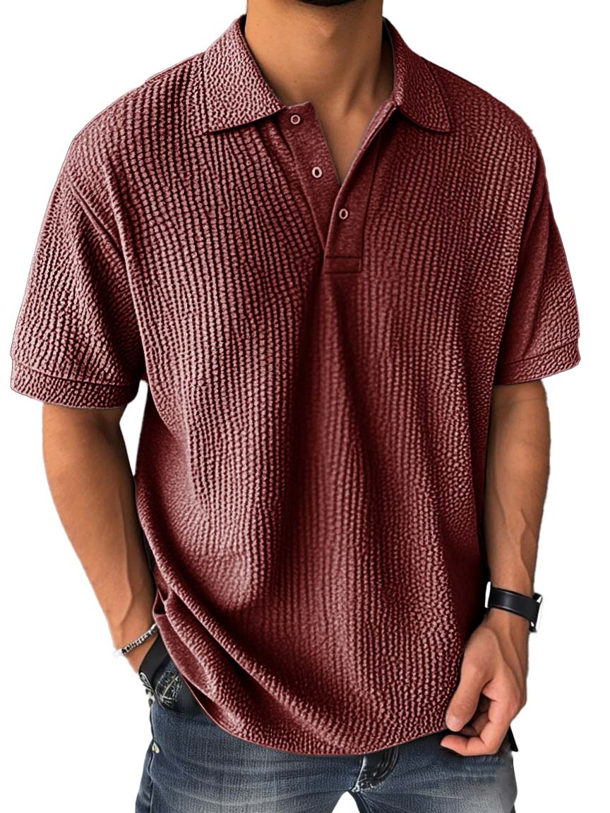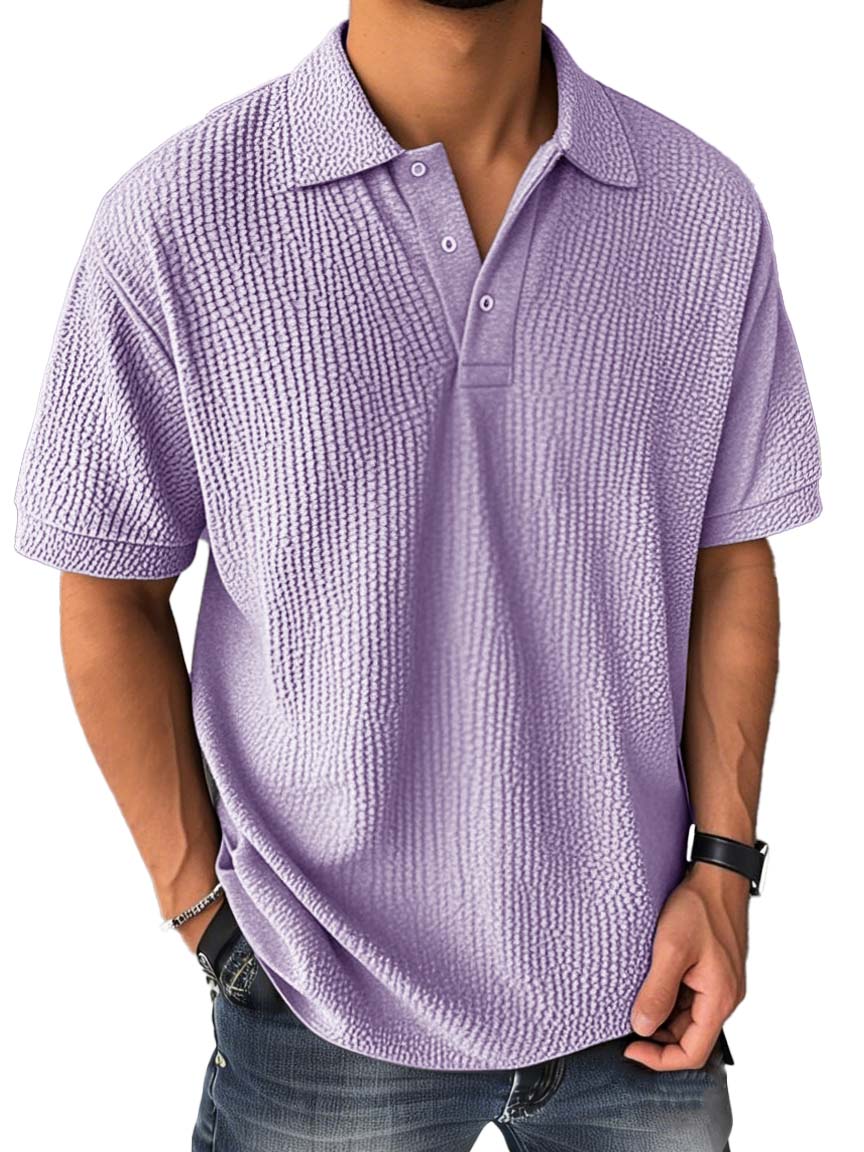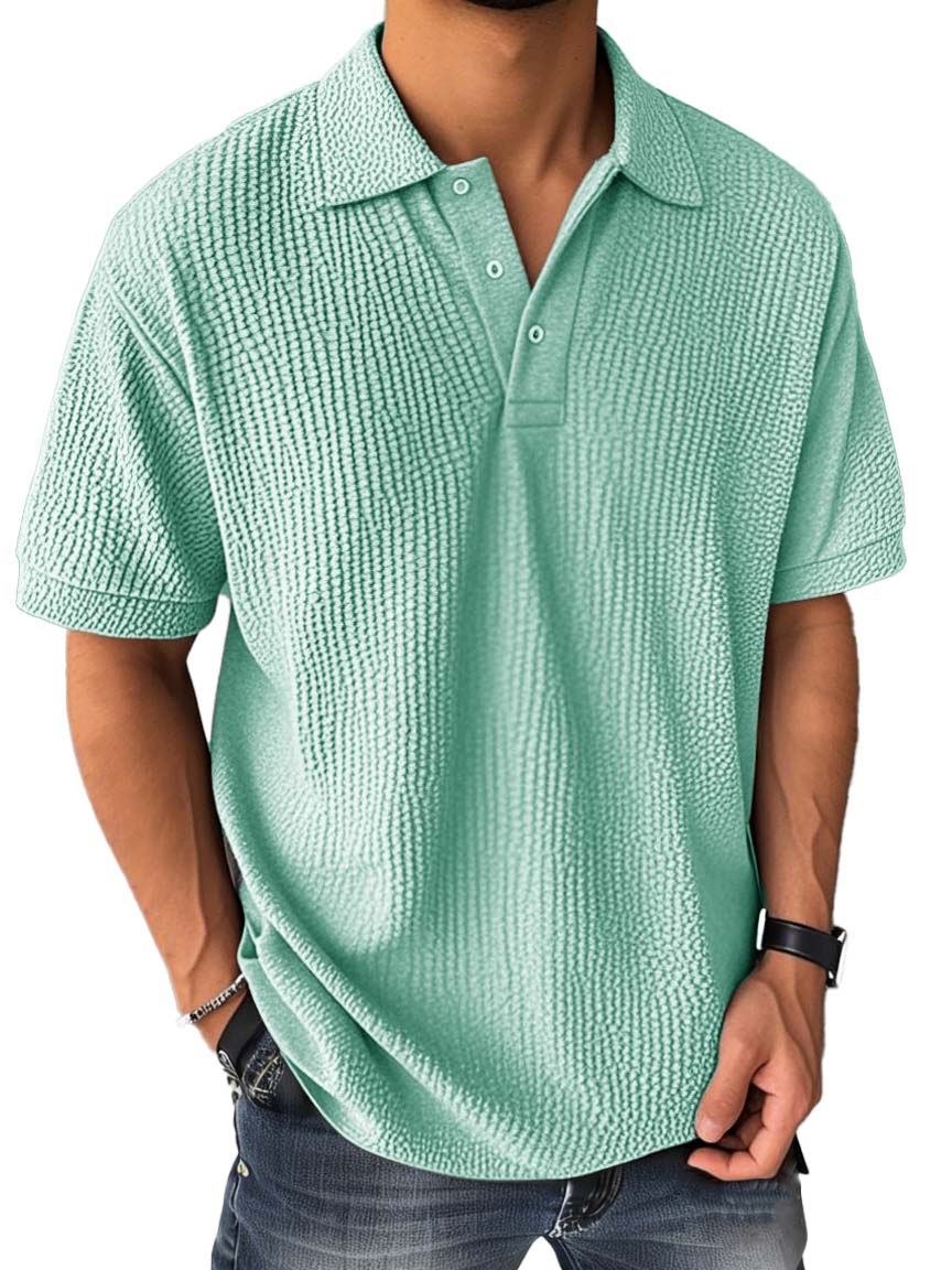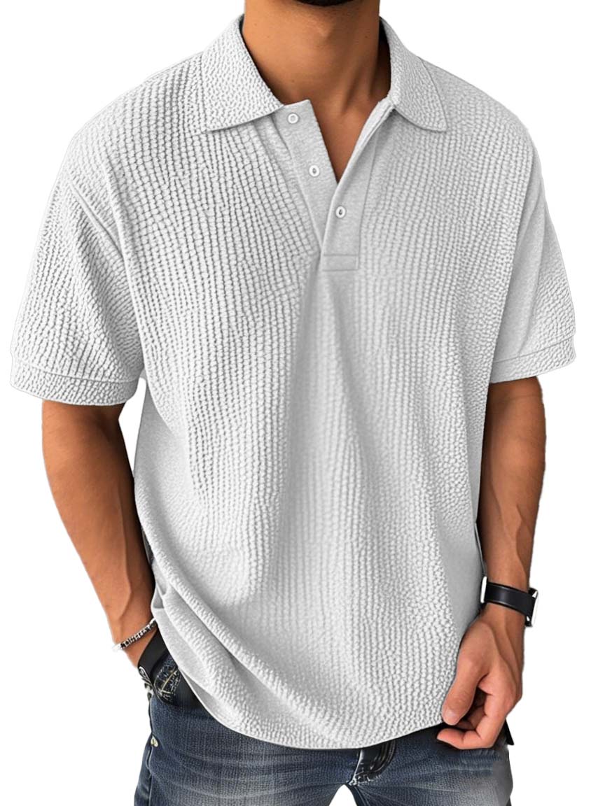 Men's Fashion Casual Bubble Wrinkled Fabric Short-sleeved Polo Shirt