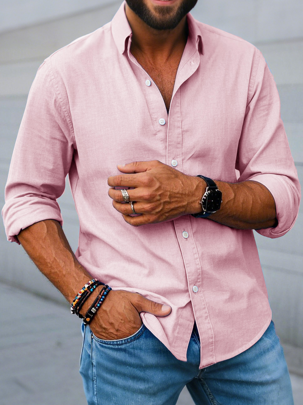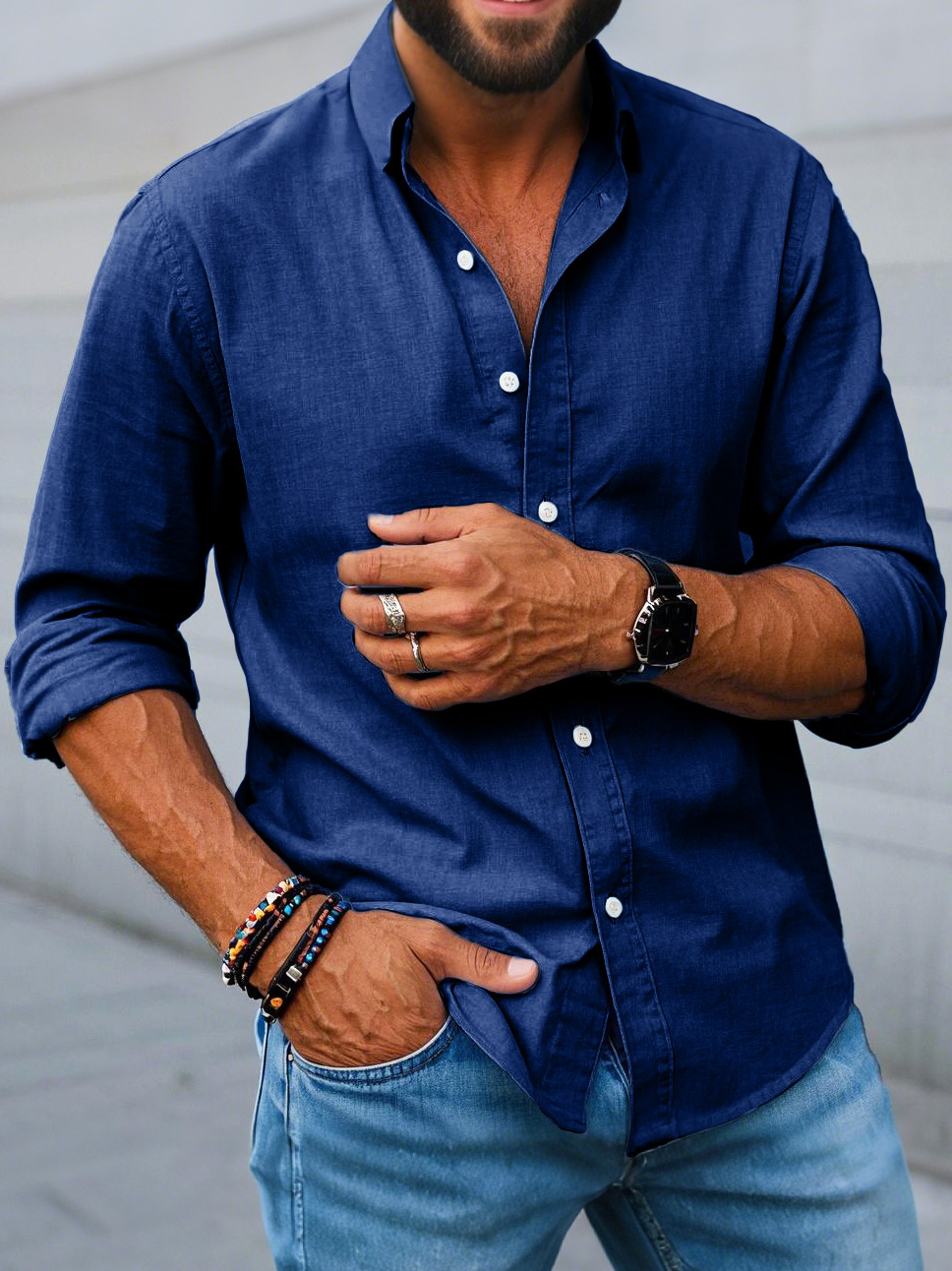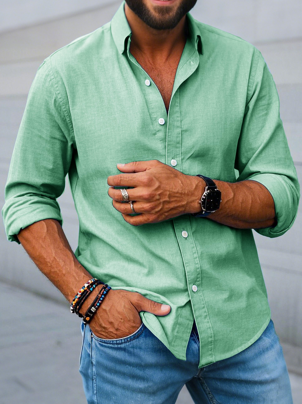 Men's Fashion Casual Lapel Long Sleeve Shirt