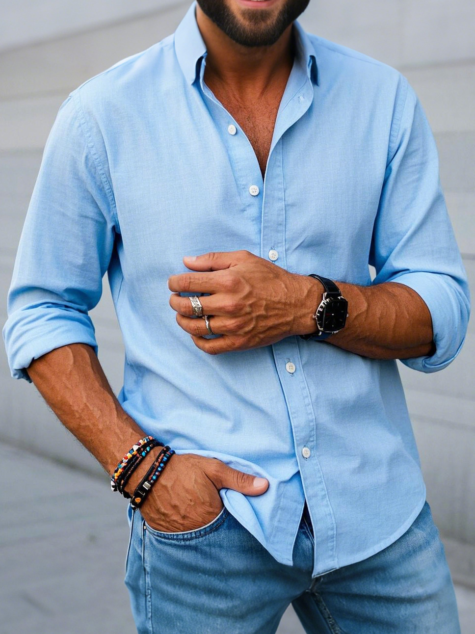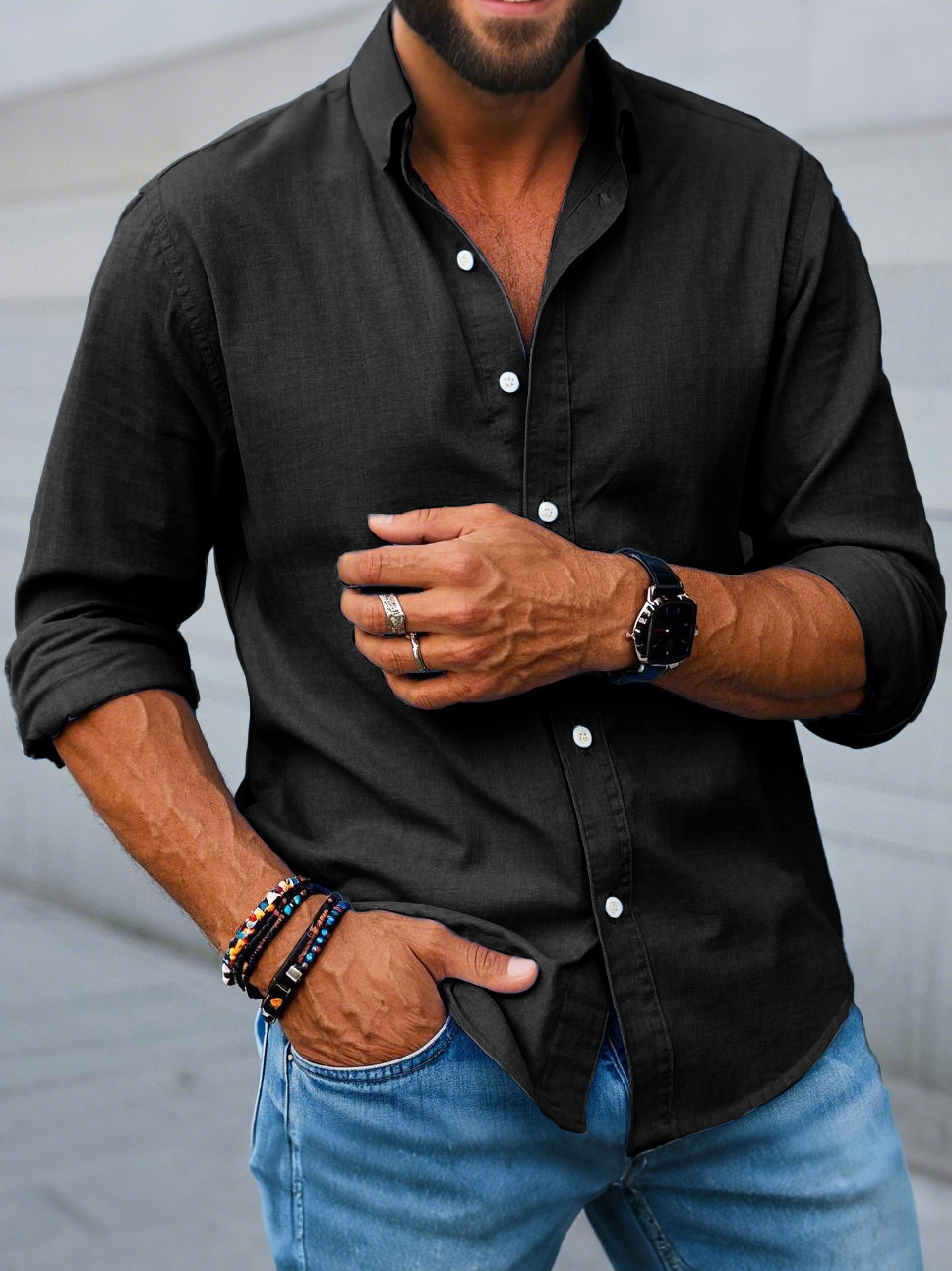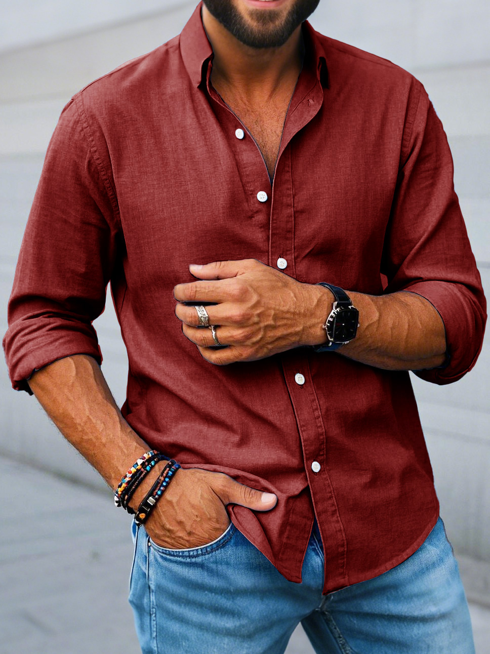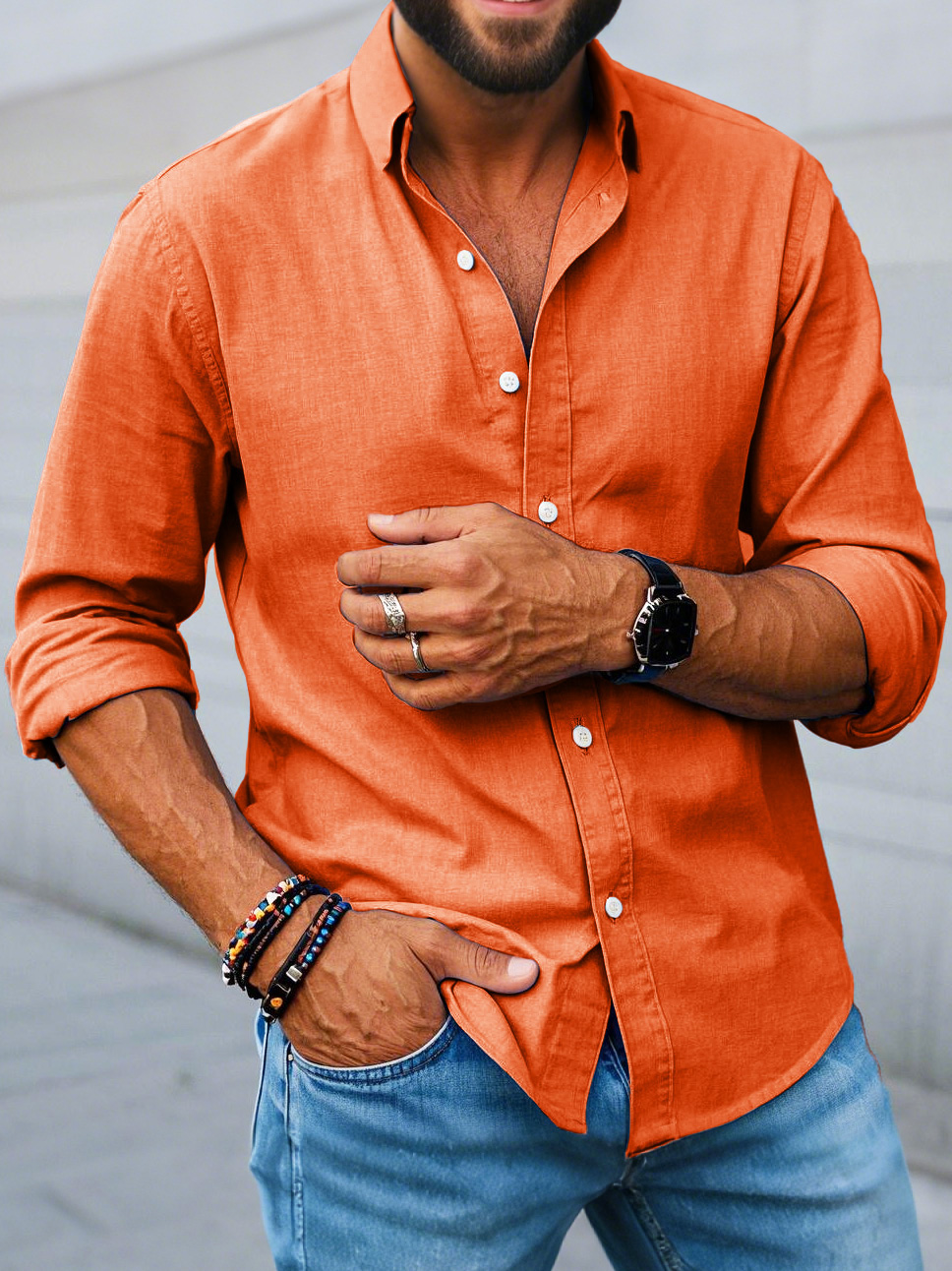 Men's Fashion Casual Lapel Long Sleeve Shirt