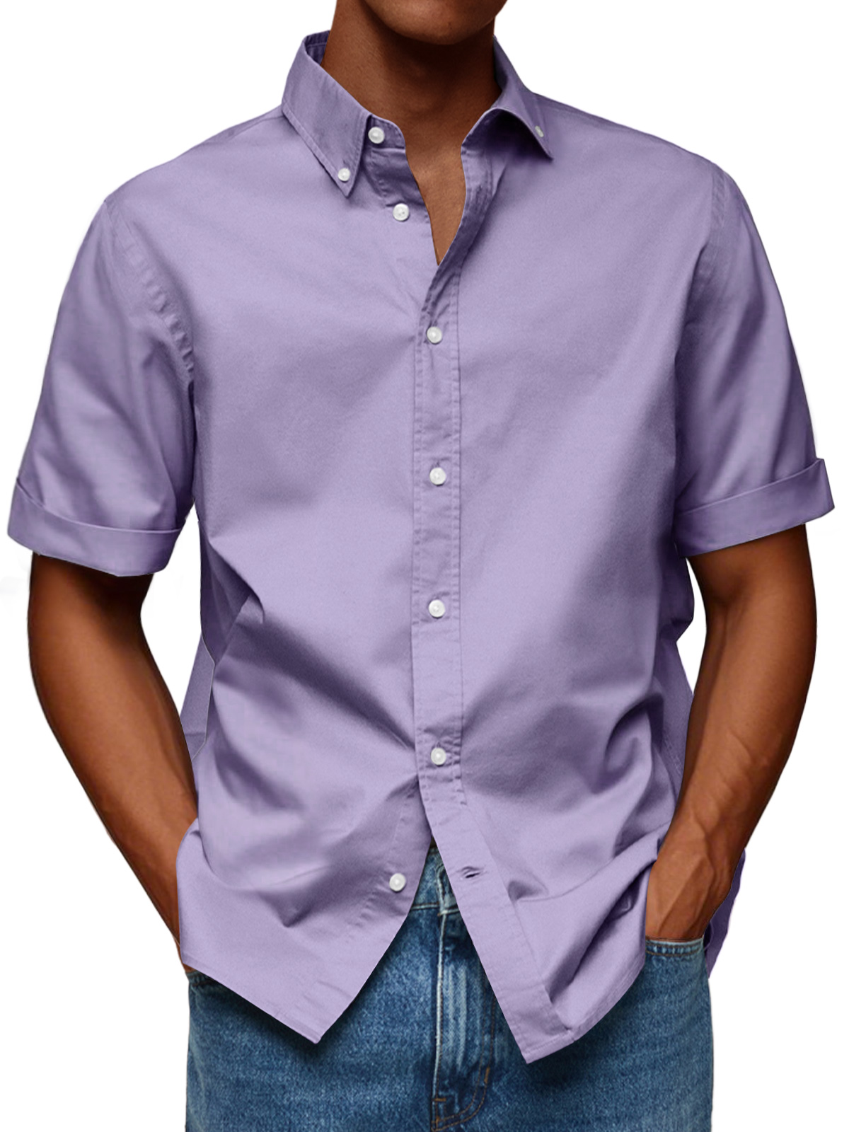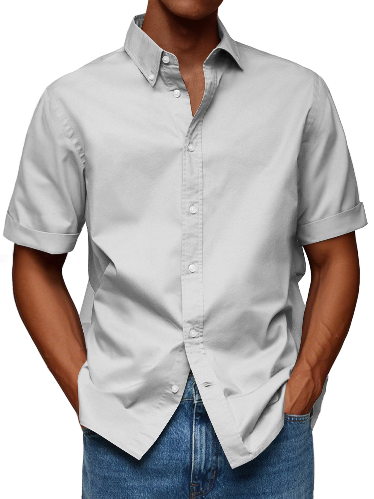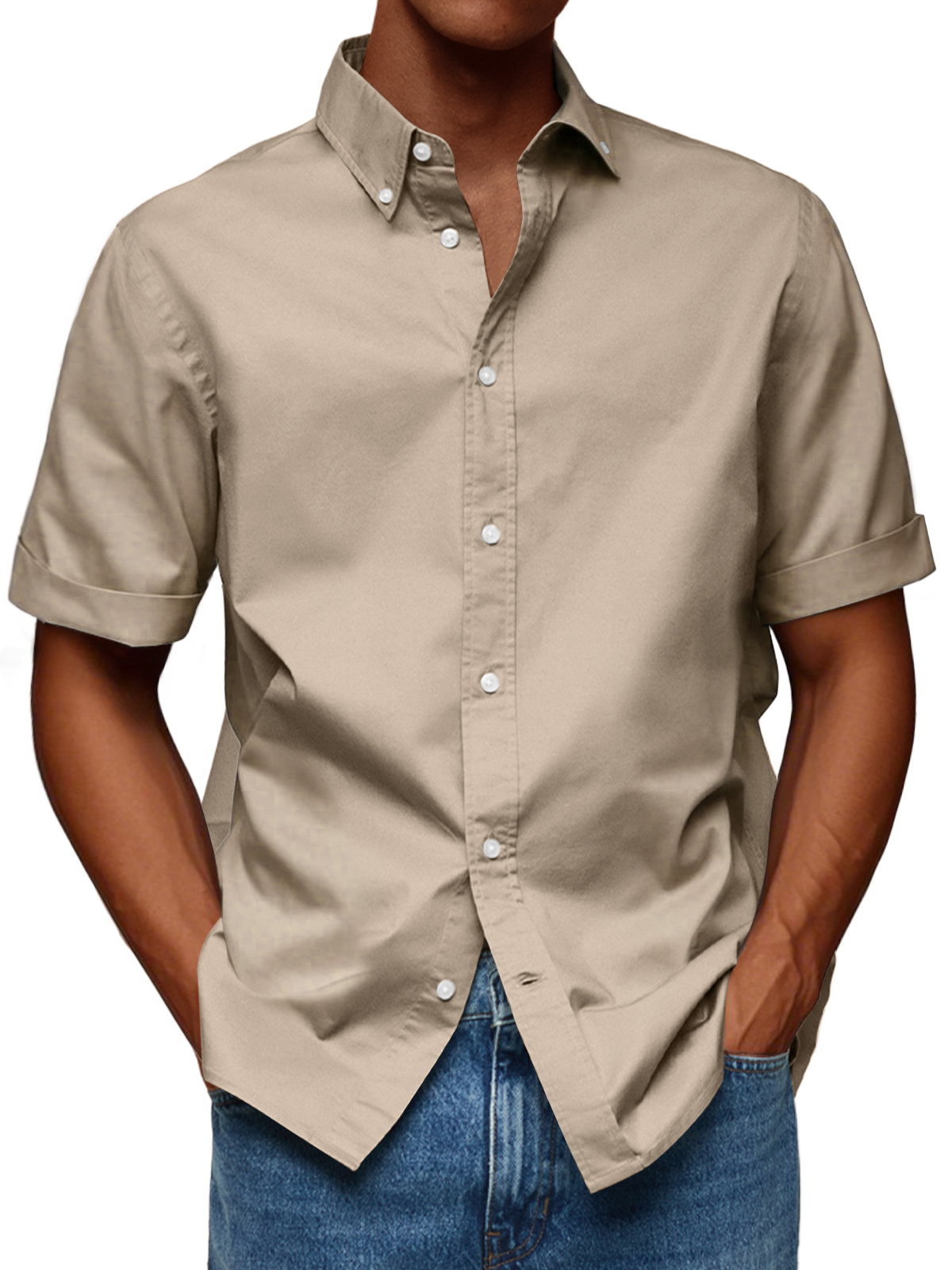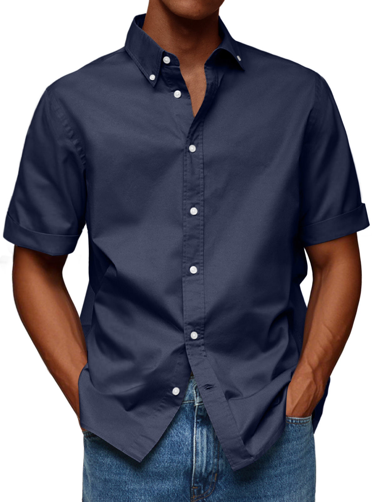 Men's Fashion Casual Lapel Solid Color Comfortable Short Sleeve Shirt