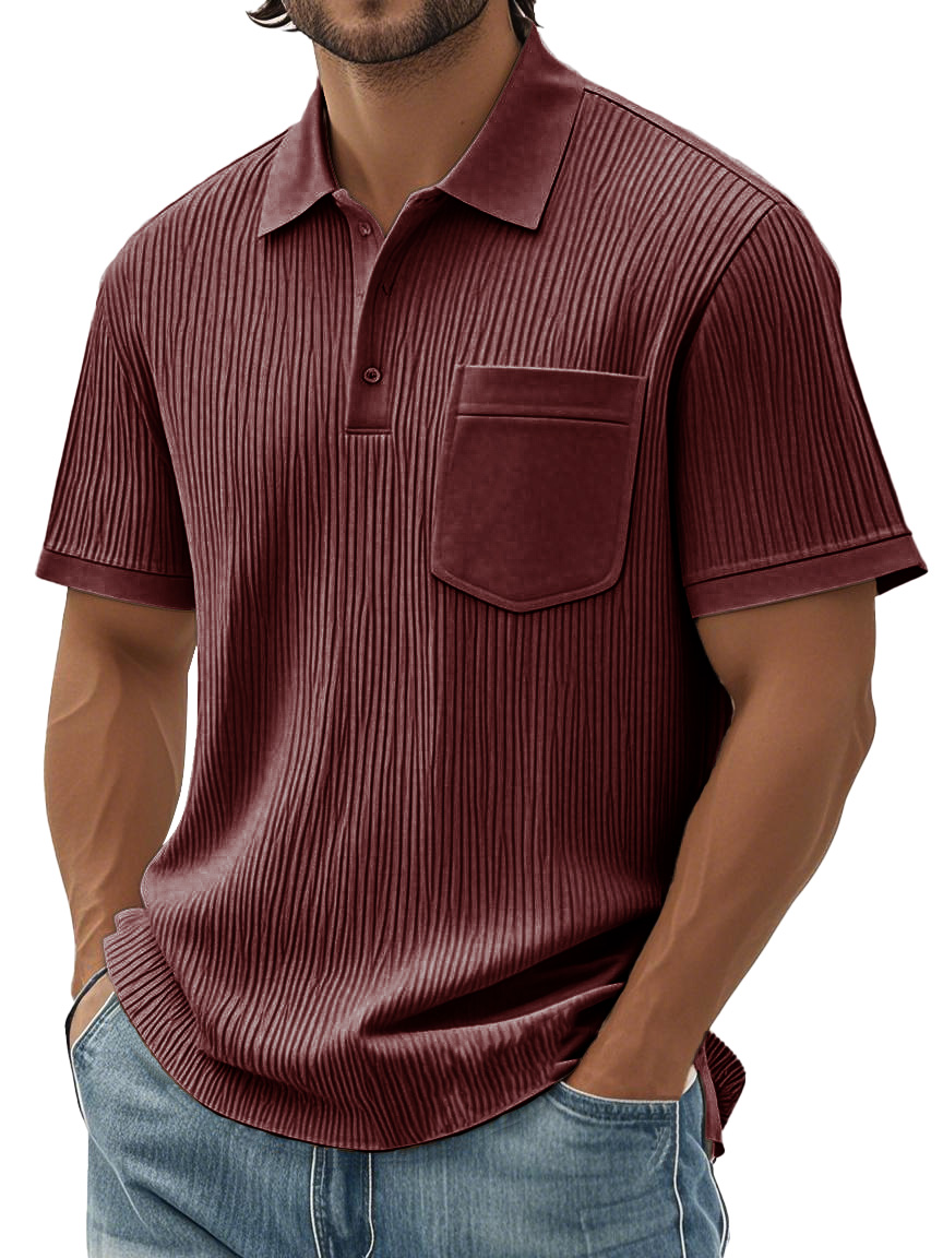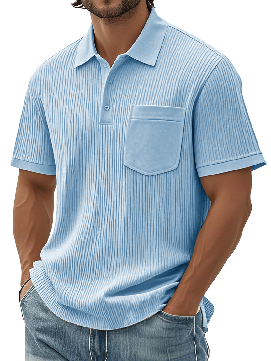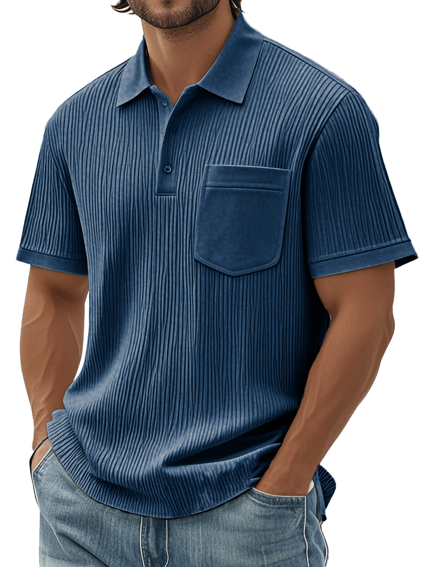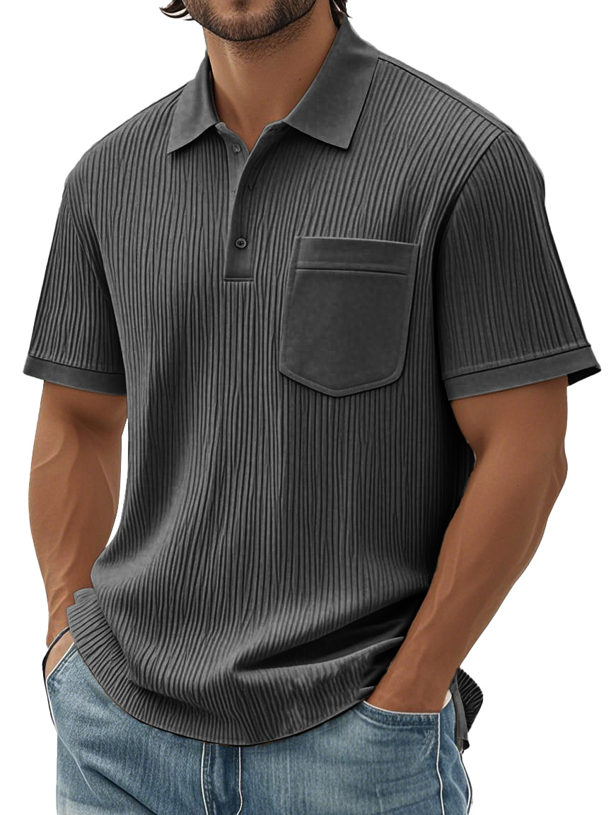 Men's Fashion Casual Textured Fabric Short-sleeved Pocket Polo Shirt