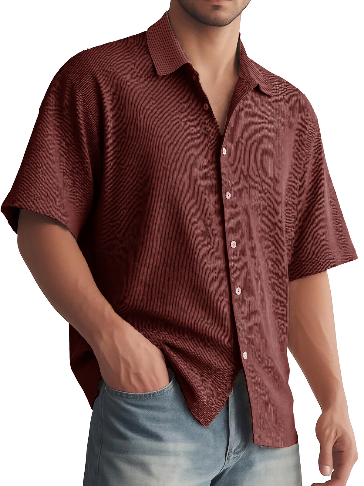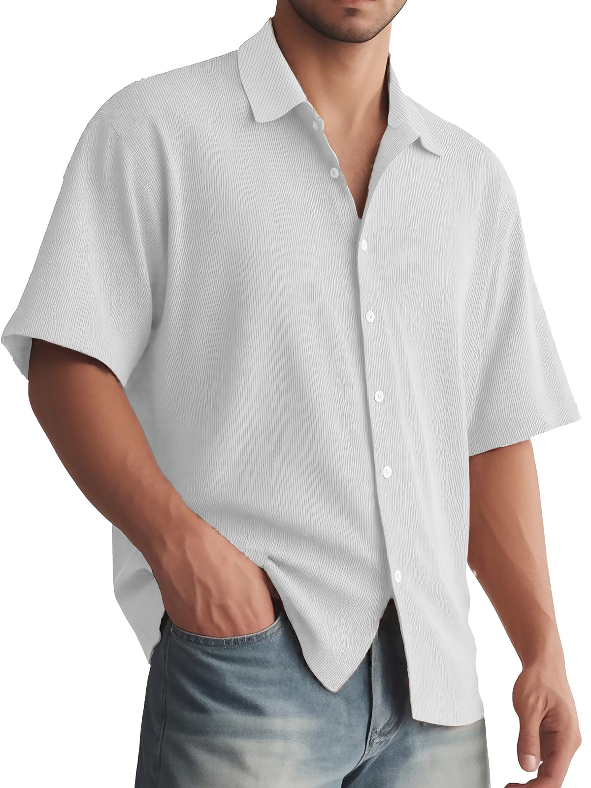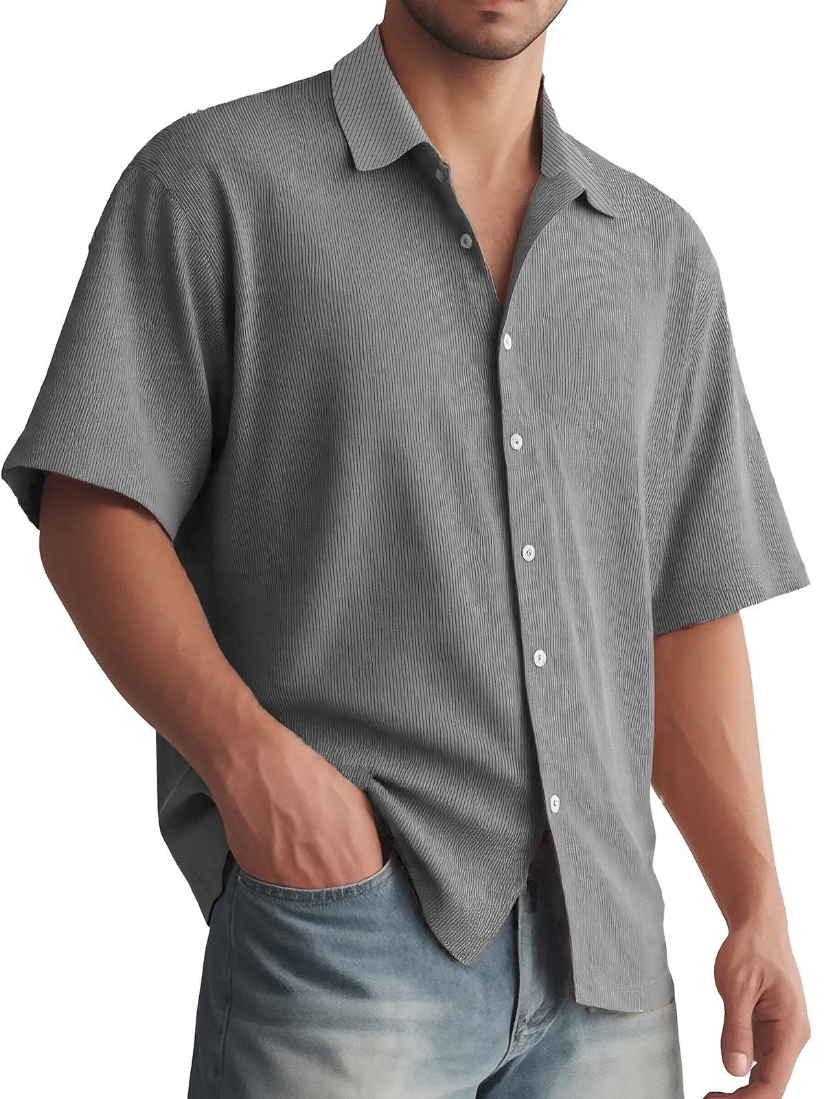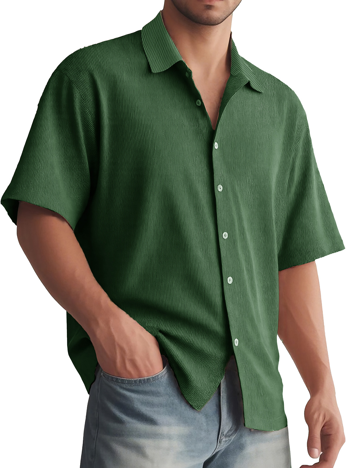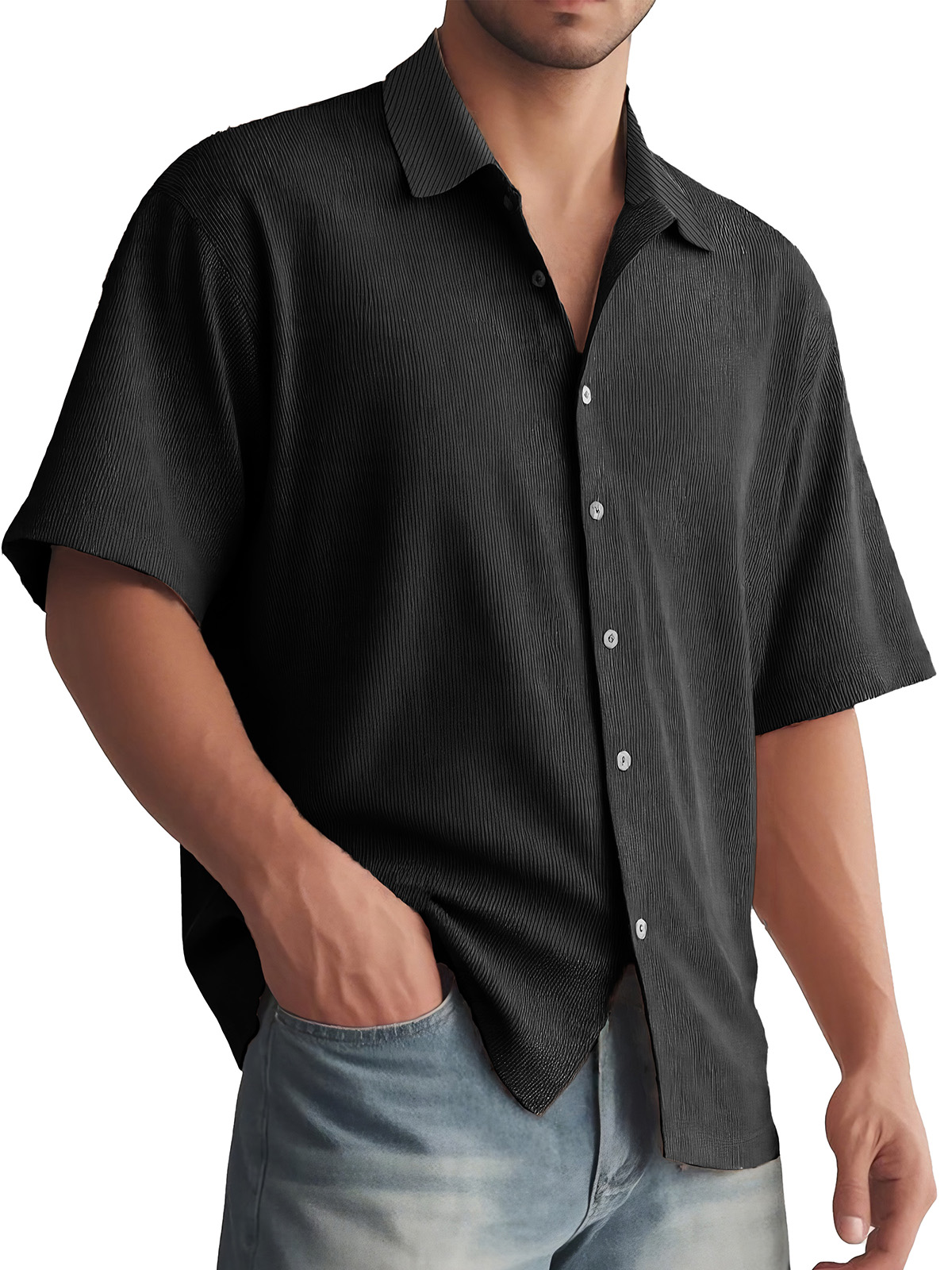 Men's Fashion Hawaiian Pleated Fabric Lapel Short-sleeved Shirt