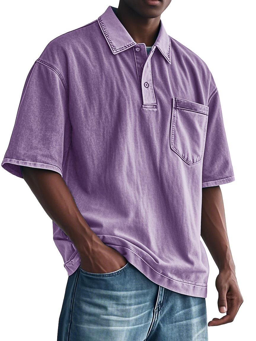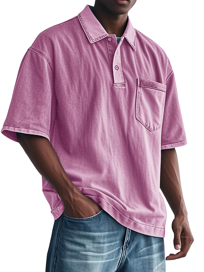 Men's Fashion Retro Distressed Lapel Pocket Polo Shirt