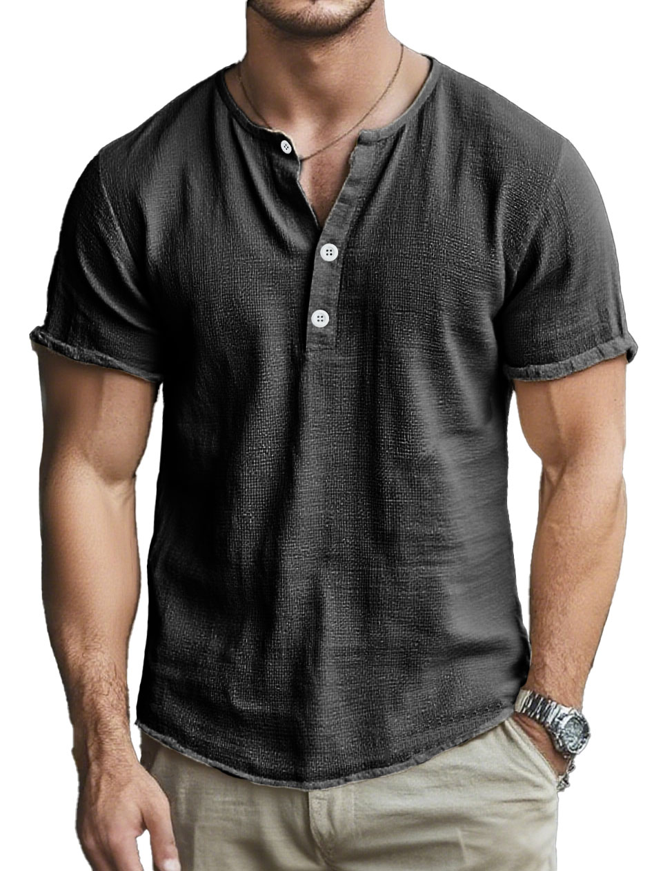 Men's Fashion Retro Linen Fabric Short-Sleeved Henley Shirt