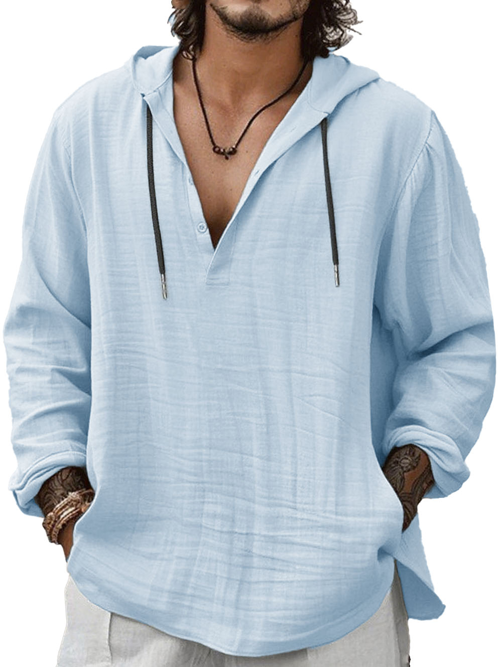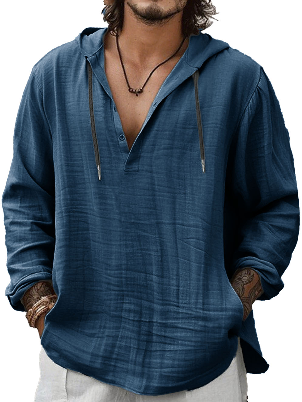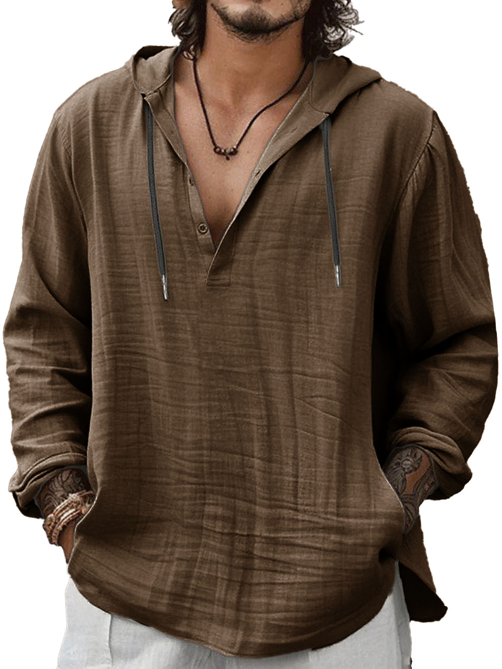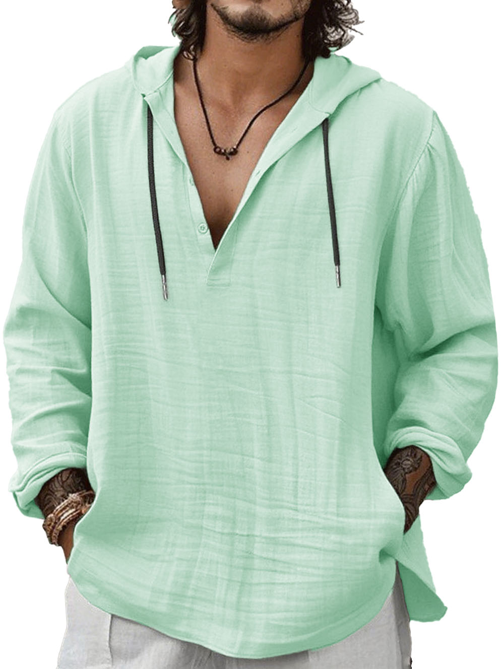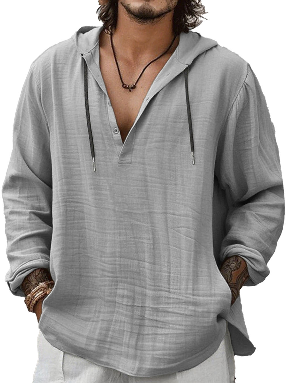 Men's Fashion Retro Long Sleeve Loose Casual Henley Shirt