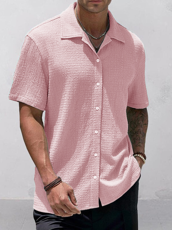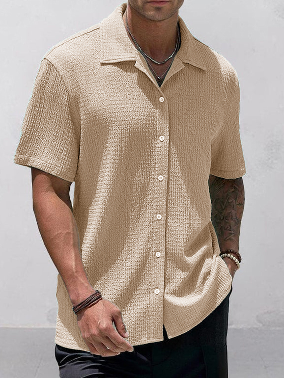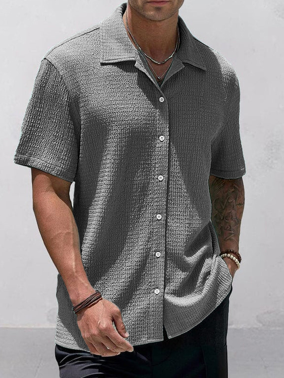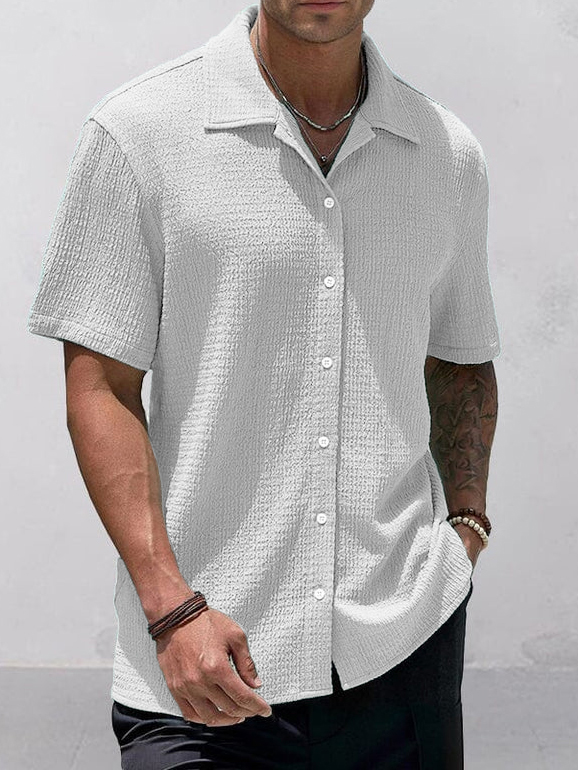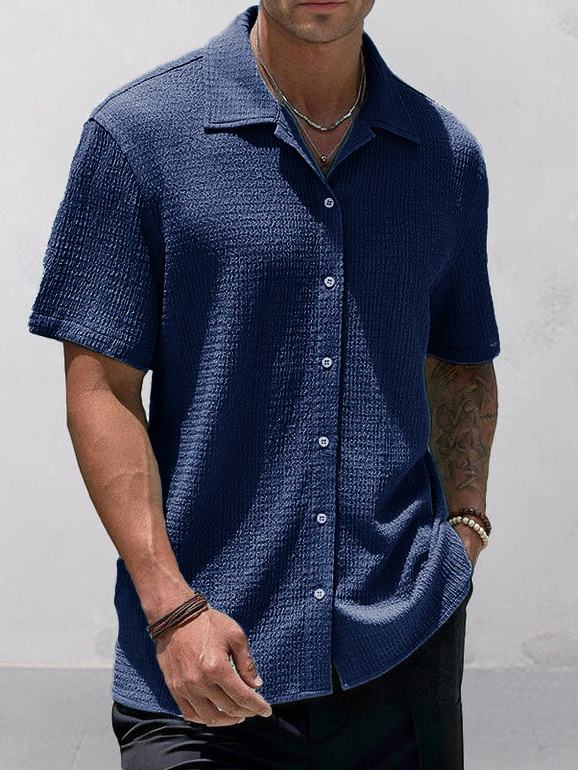 Men's Fashion Retro Pleated Fabric Short-sleeved Shirt